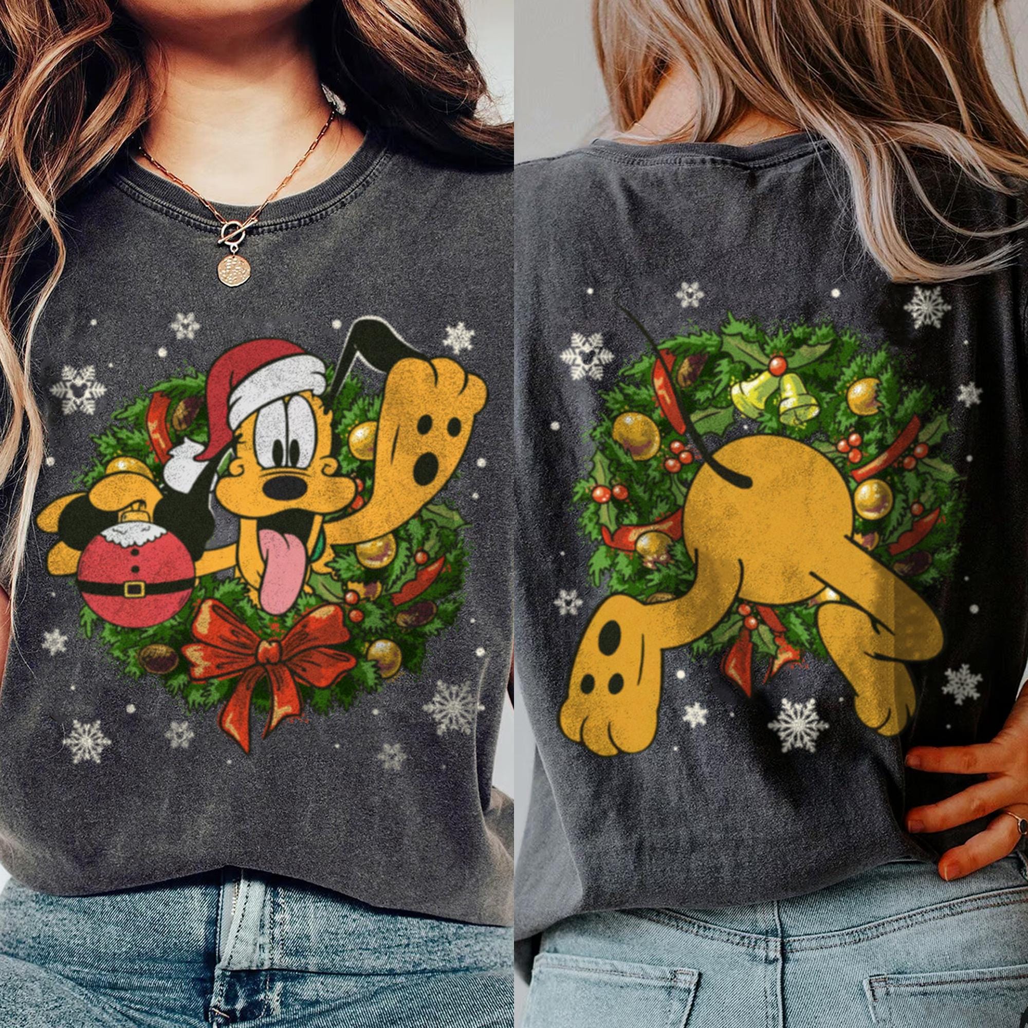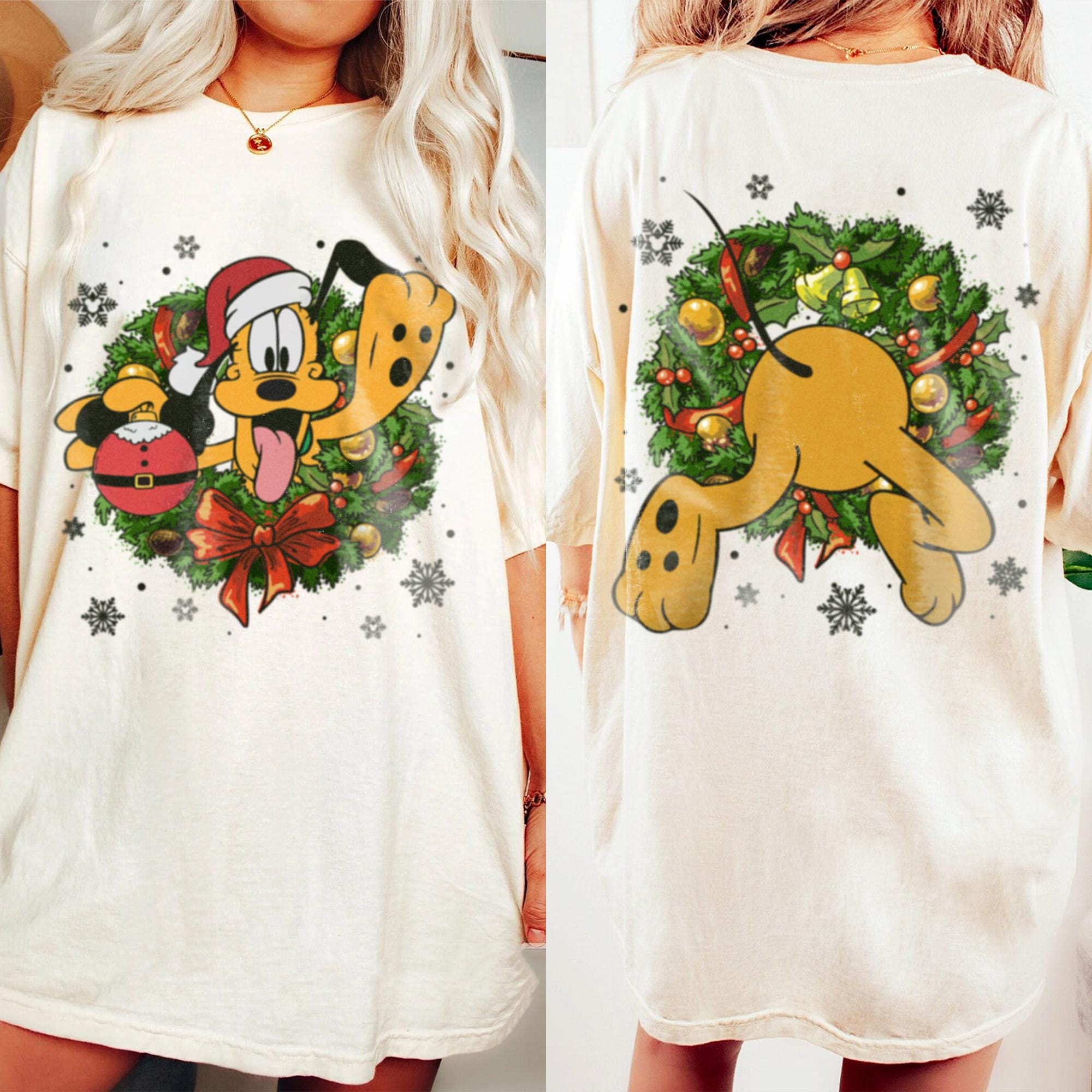 Pluto Crawl Over Xmas Wreath, Very Merry Christmas Party Shirt, X-mas Retro T-Shirt, Disneyland Vacation Trip Family Gift 2024