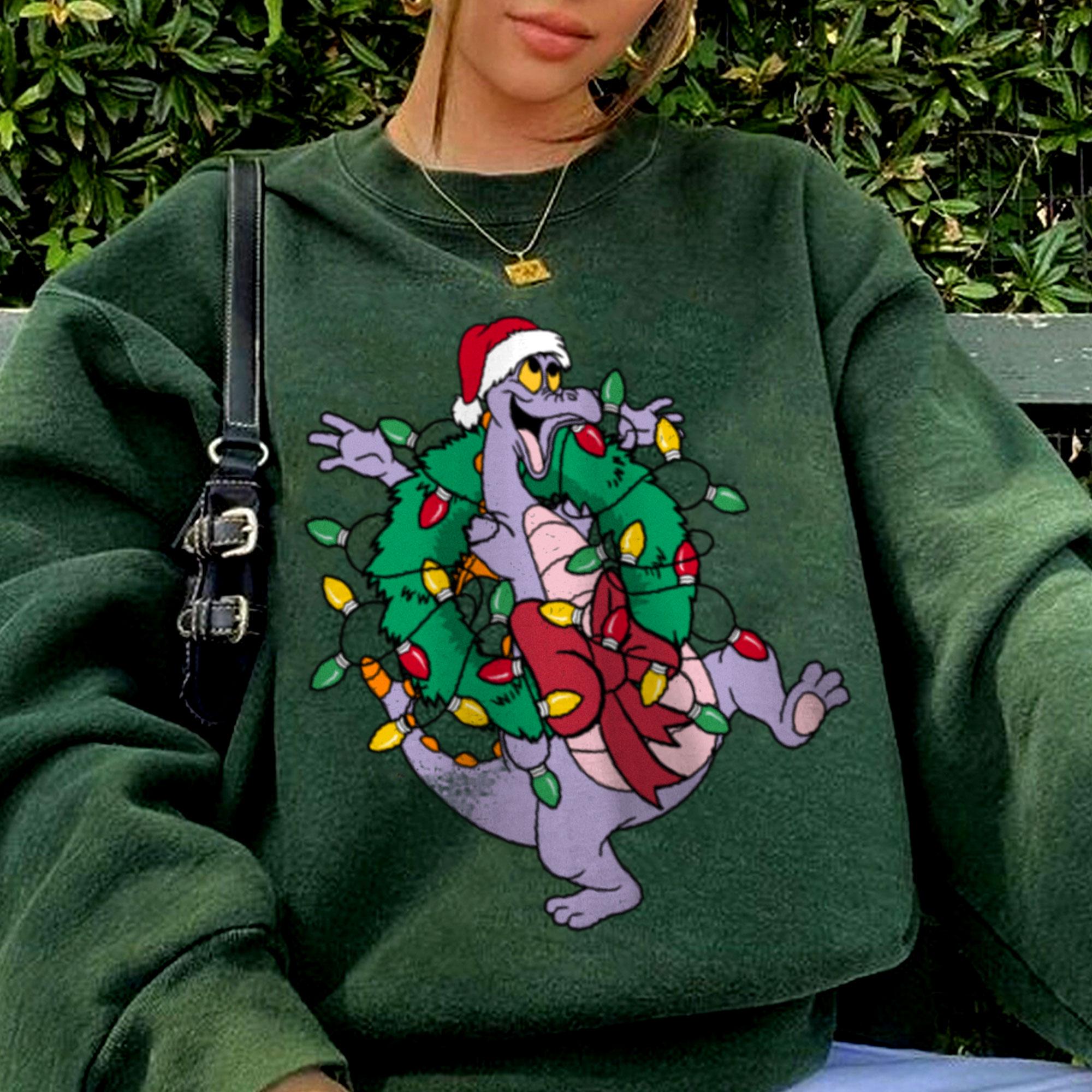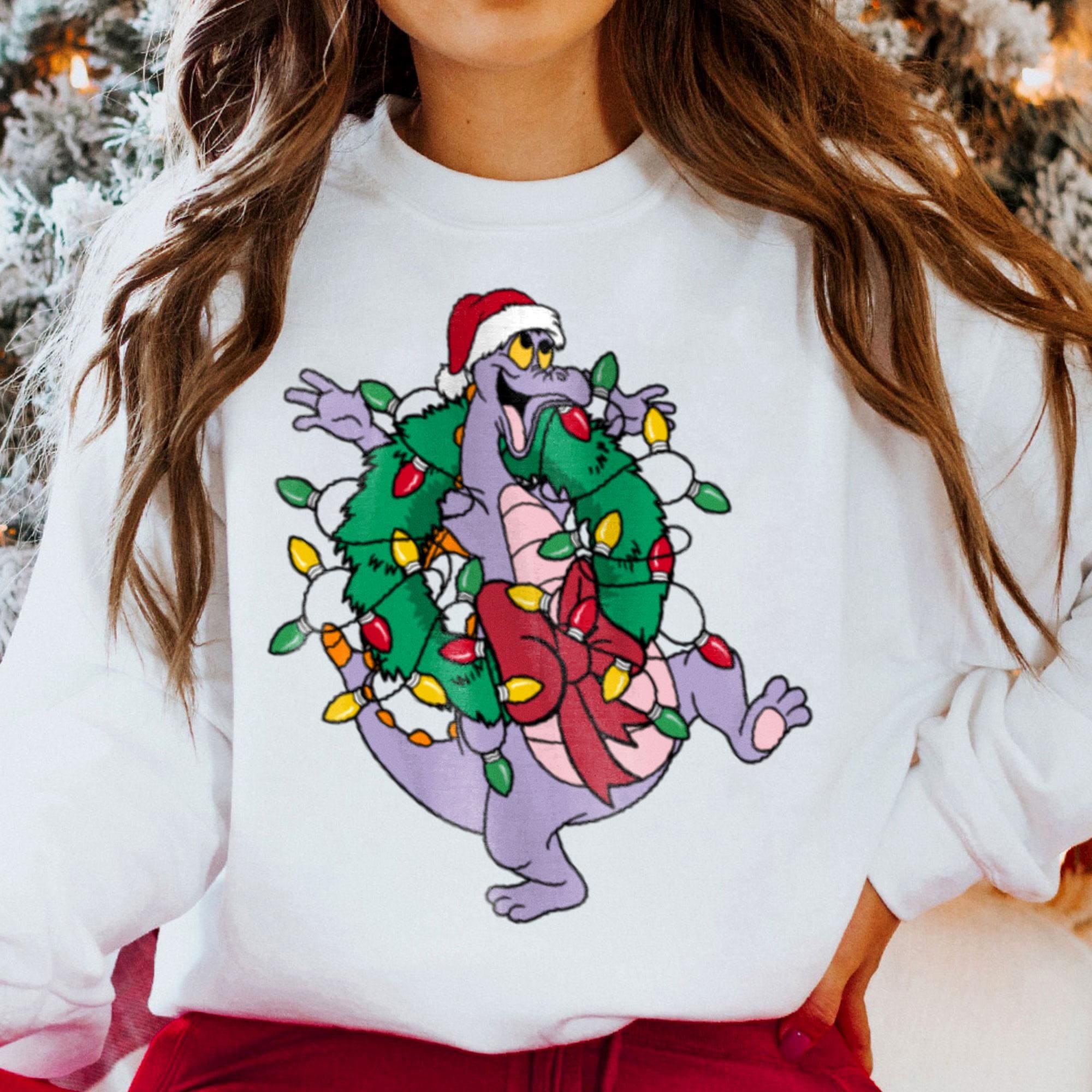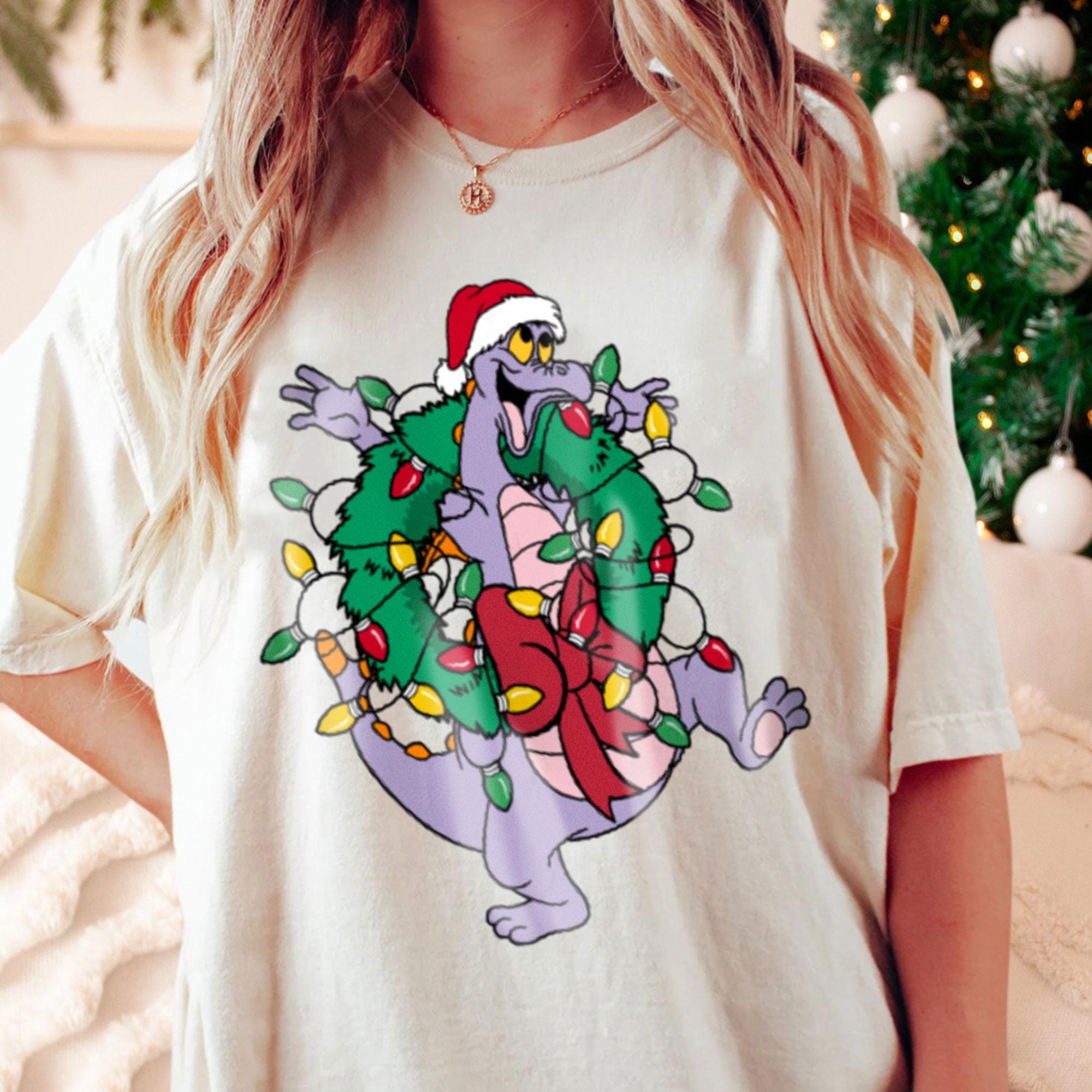 Figment Hug Xmas Wreath Very Merry Christmas Party Shirt, X-mas Retro Comfort Color T-Shirt, Disneyland Trip Family Gift 2024