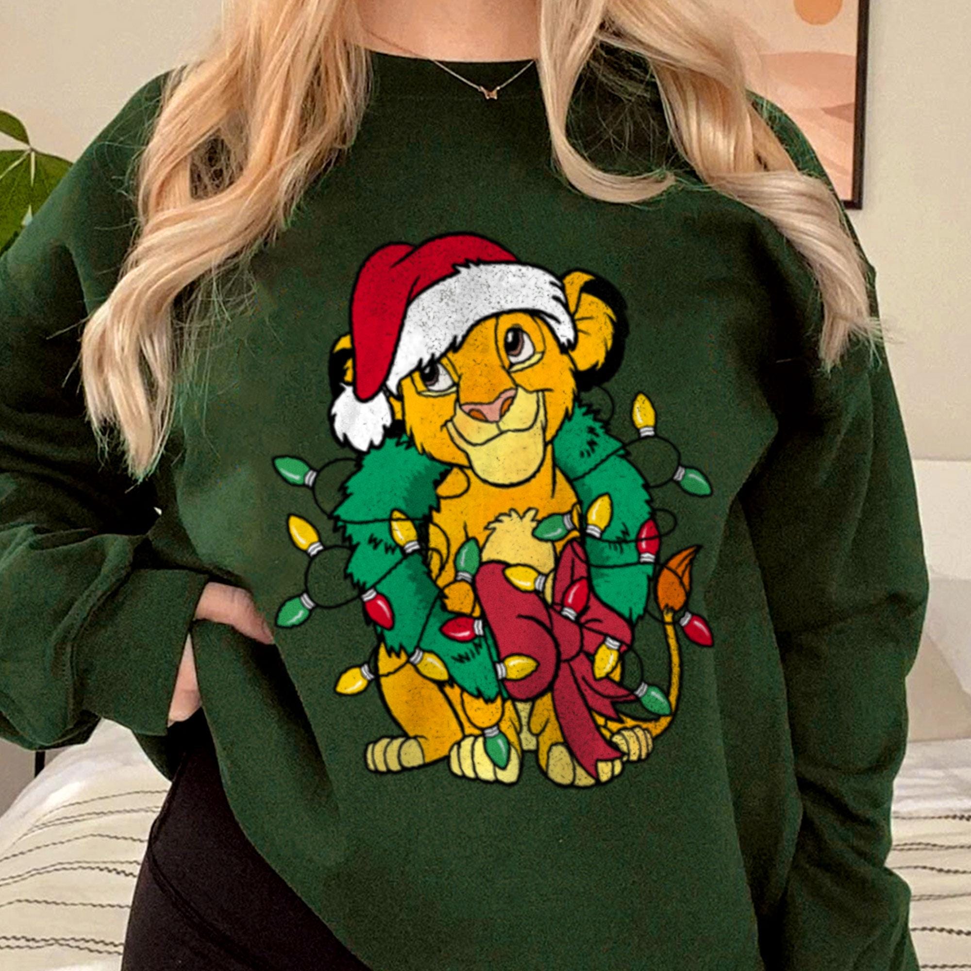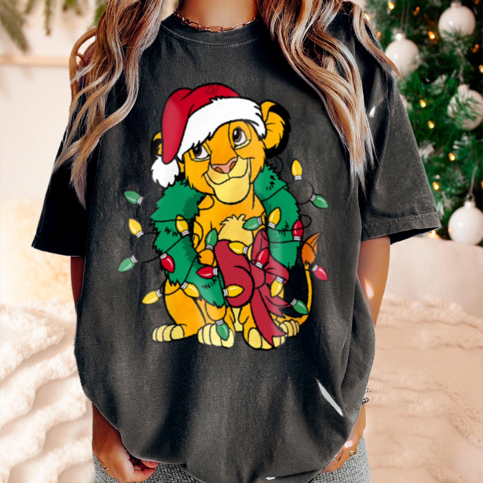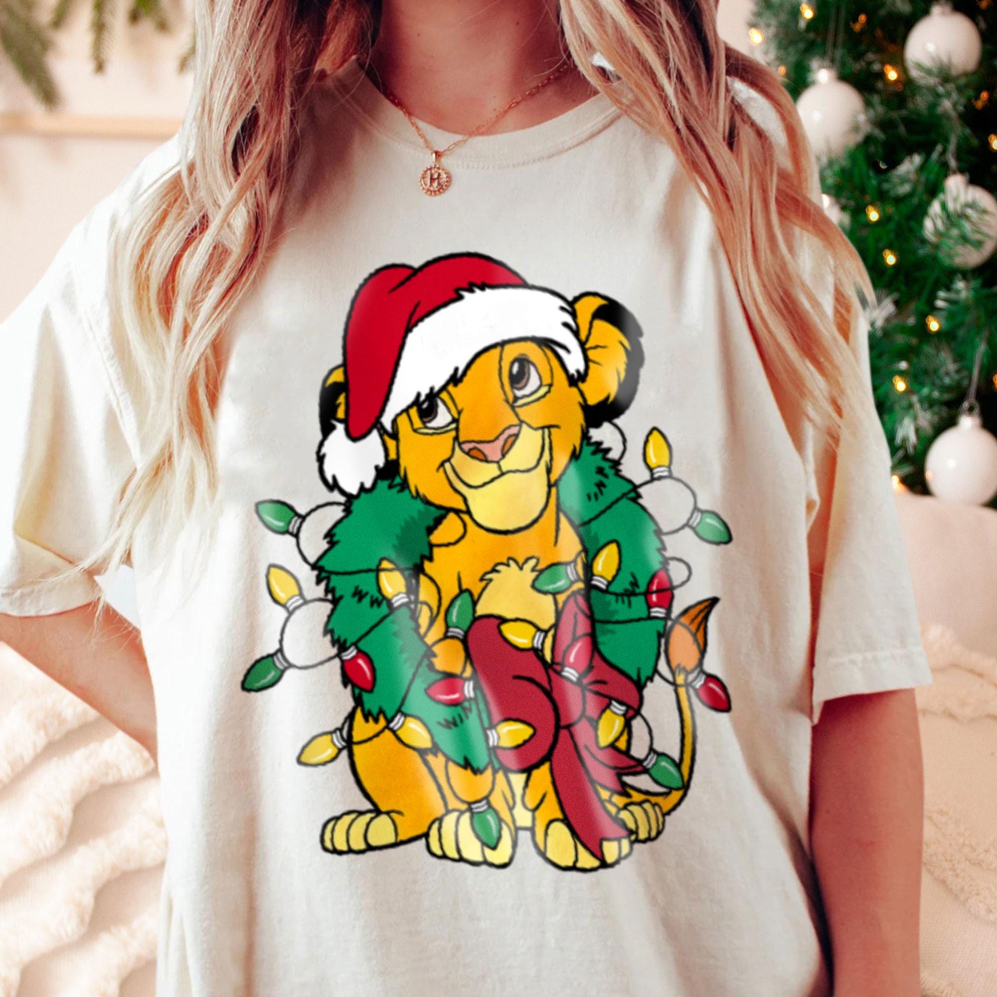 Simba Lion Santa Hug Wreath Very Merry Christmas Party Comfort Color Shirt, X-mas Retro T-Shirt, Disneyland Vacation Trip Family Gift 2024