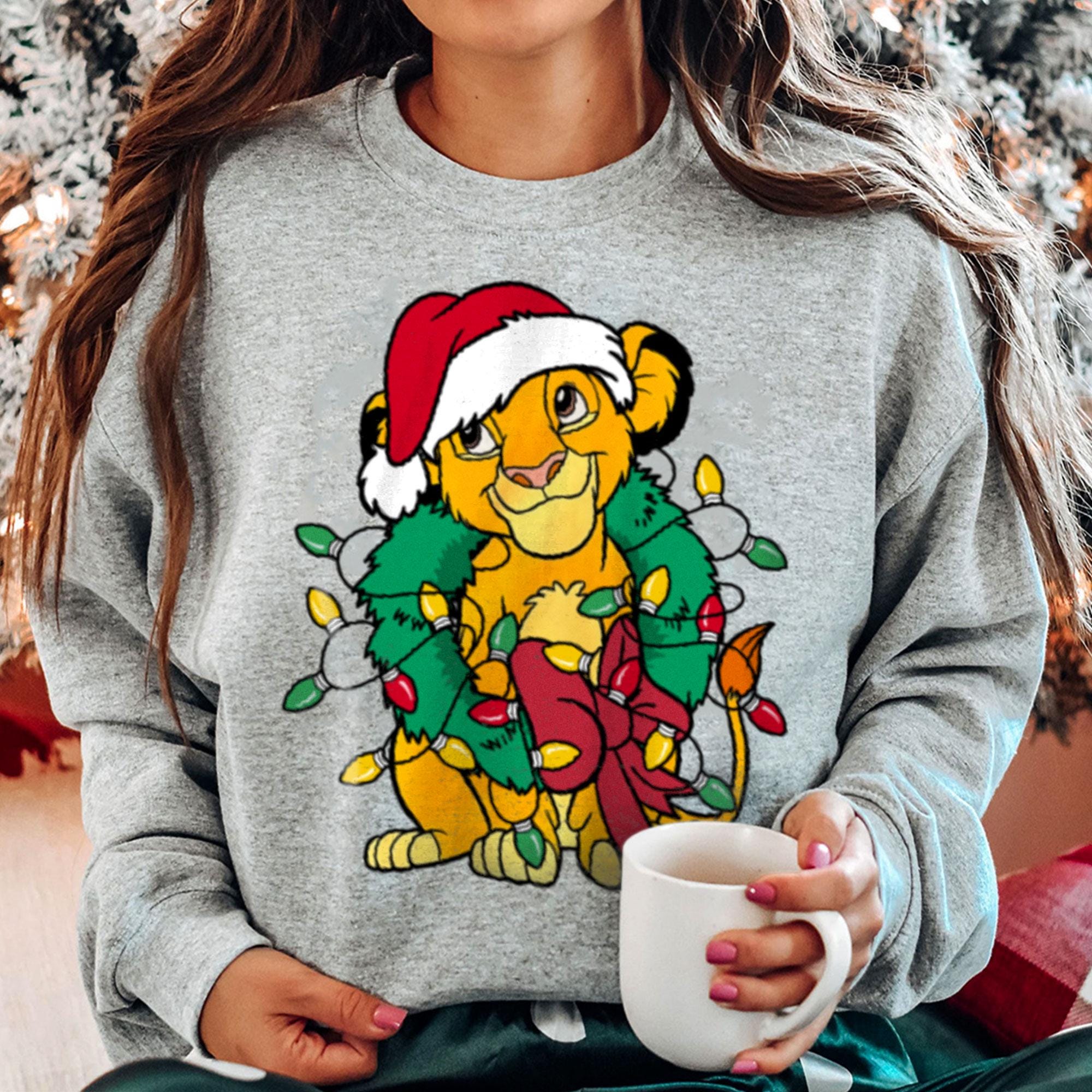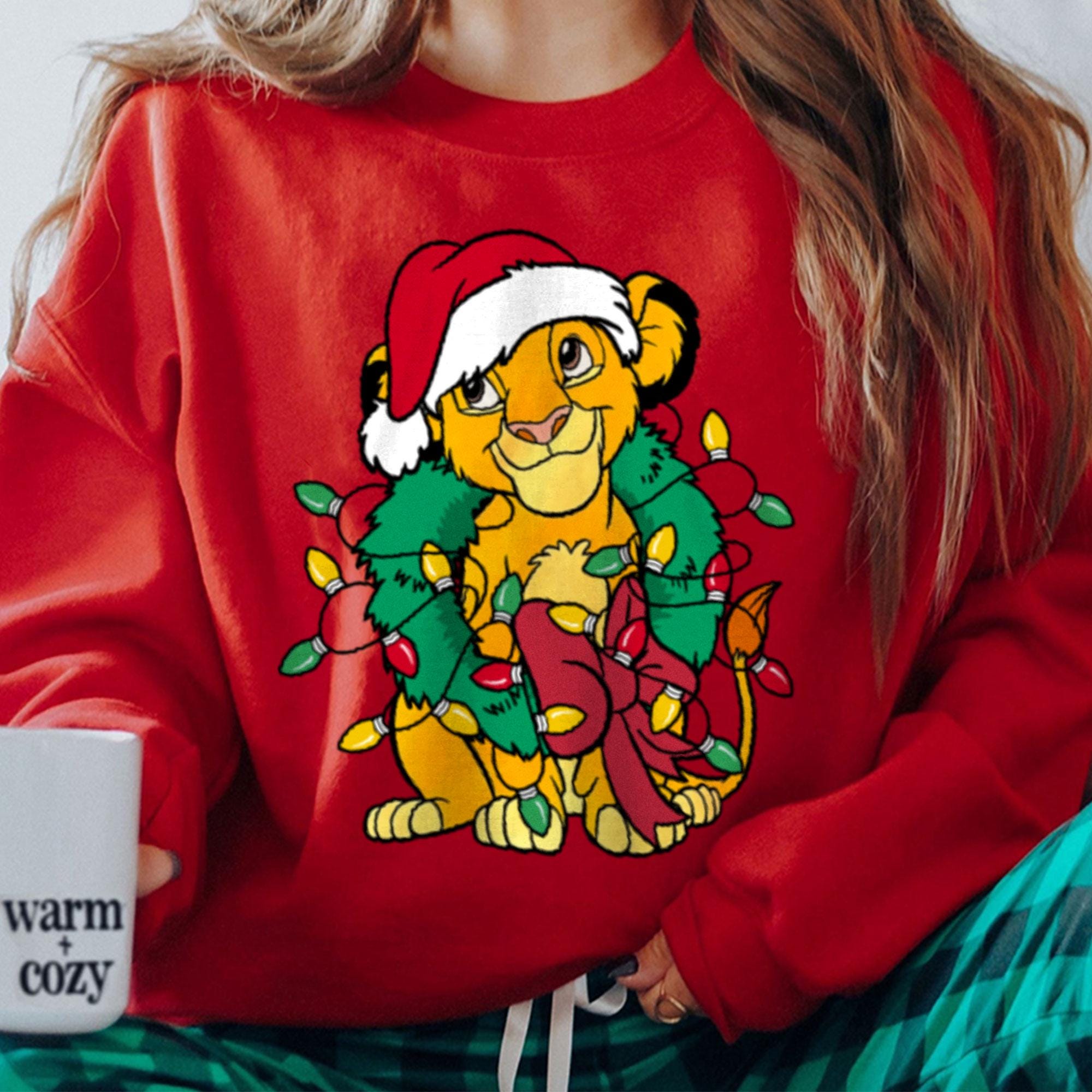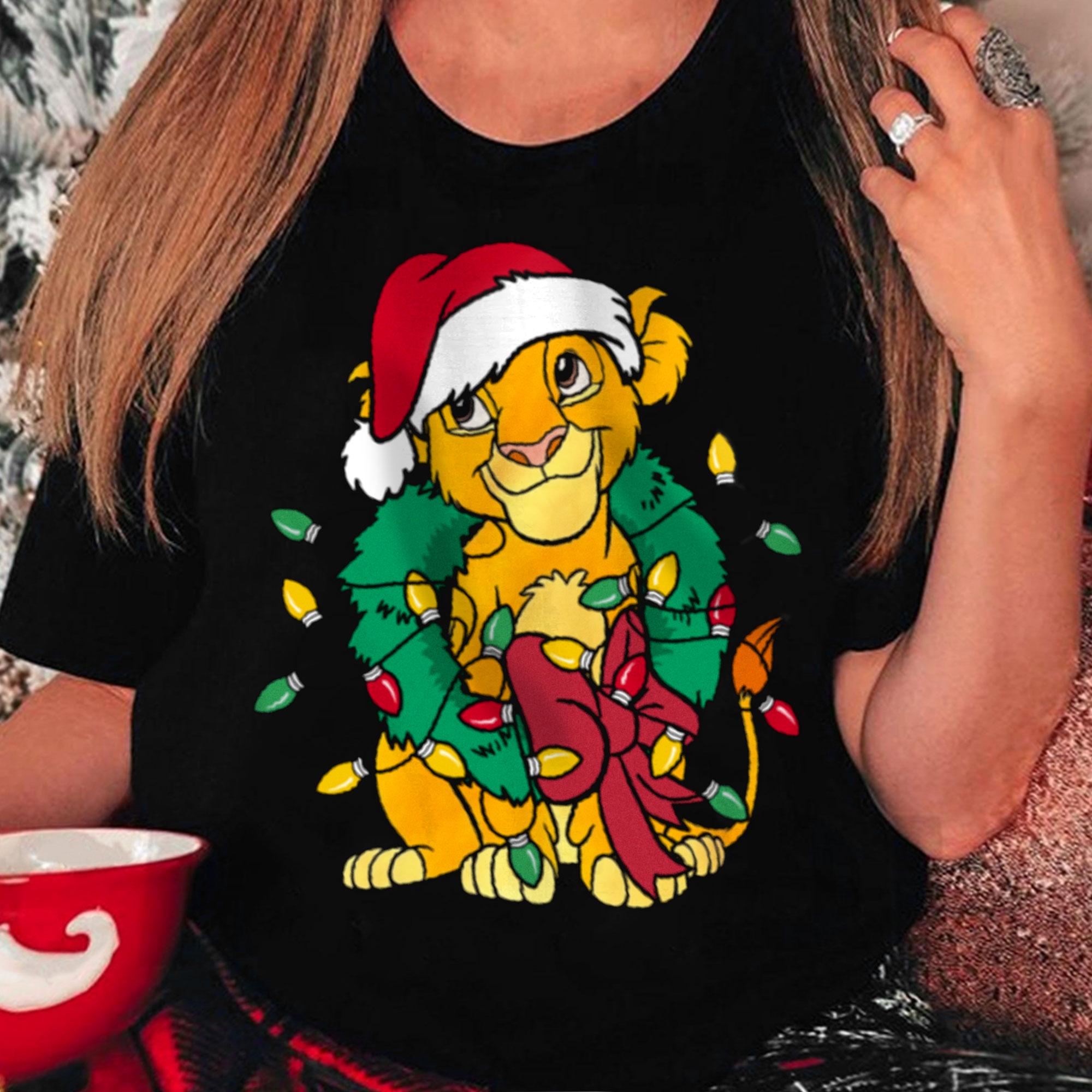 Simba Lion Santa Hug Wreath Very Merry Christmas Party Comfort Color Shirt, X-mas Retro T-Shirt, Disneyland Vacation Trip Family Gift 2024