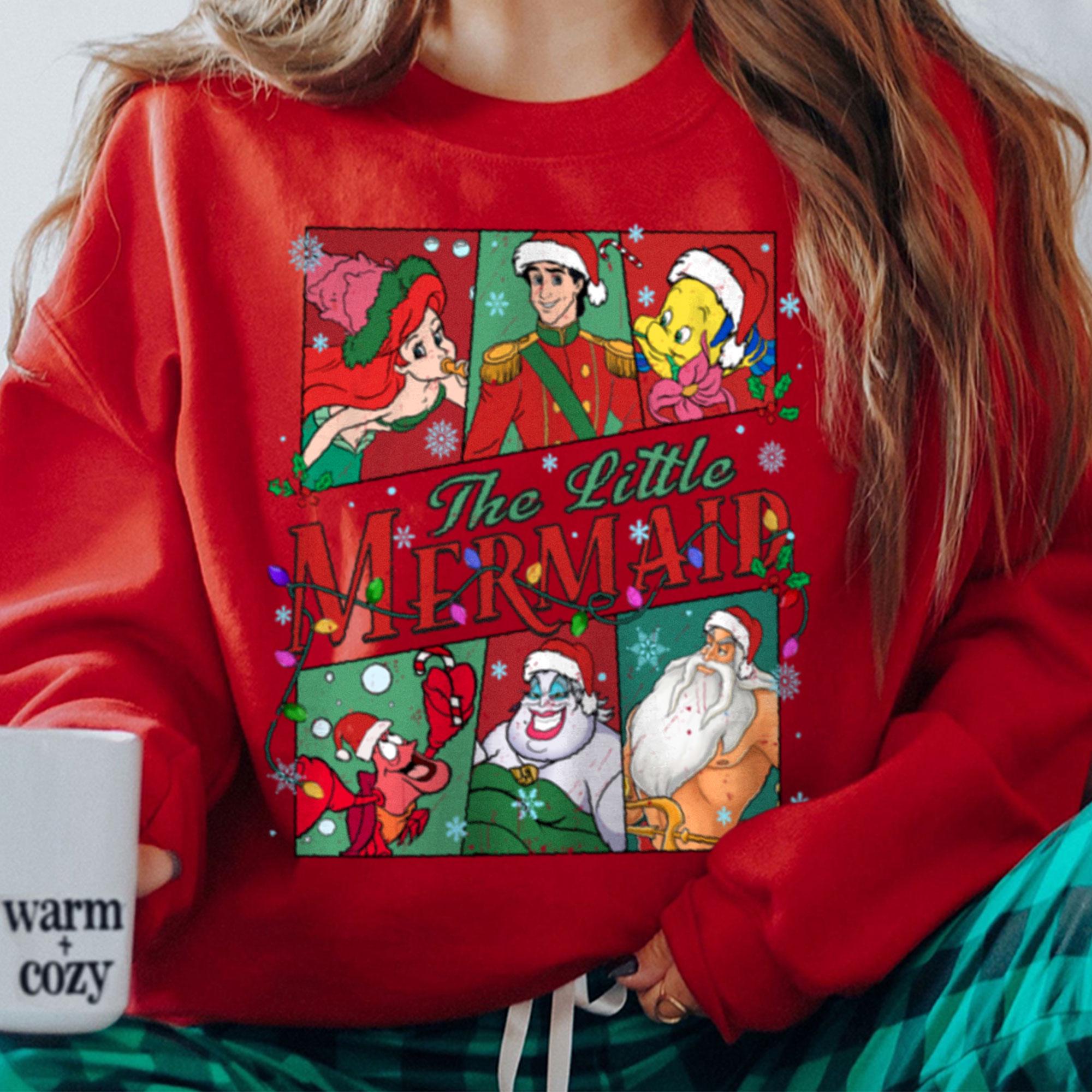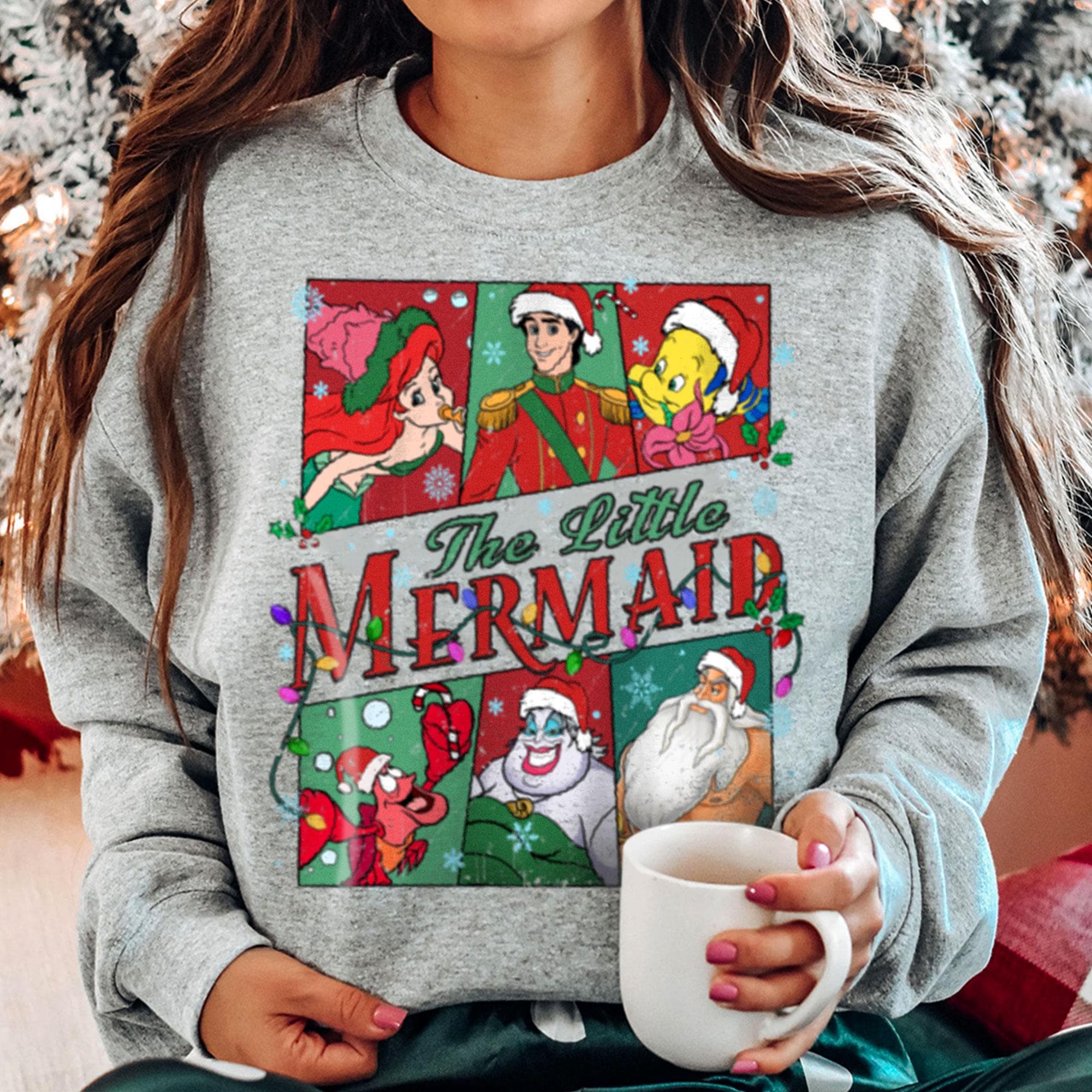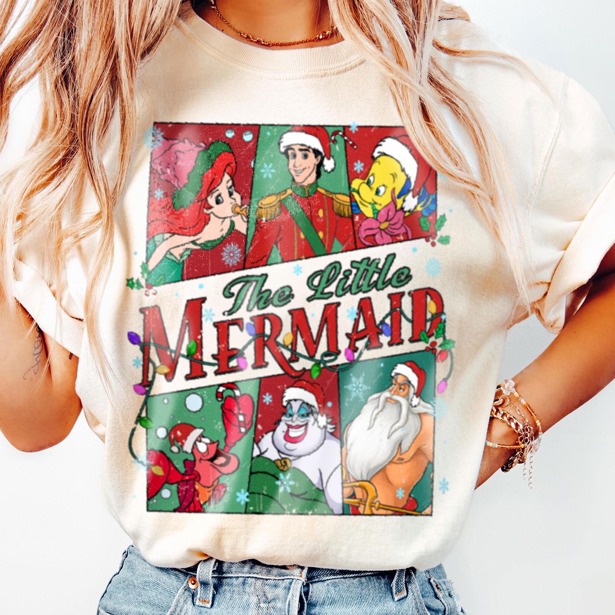 The Little Mermaid Nutcracker Very Merry Christmas Party Shirt, X-mas Retro T-Shirt, Disneyland Vacation Trip Family Gift 2024