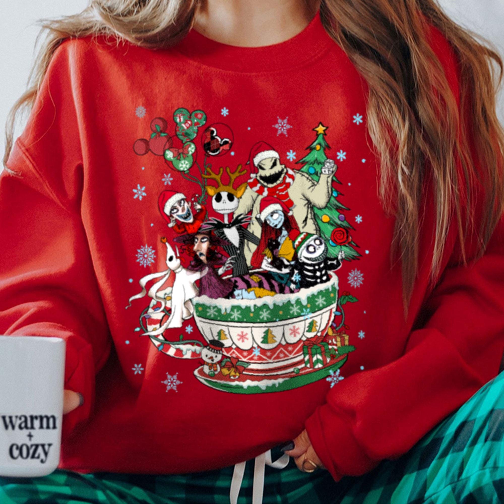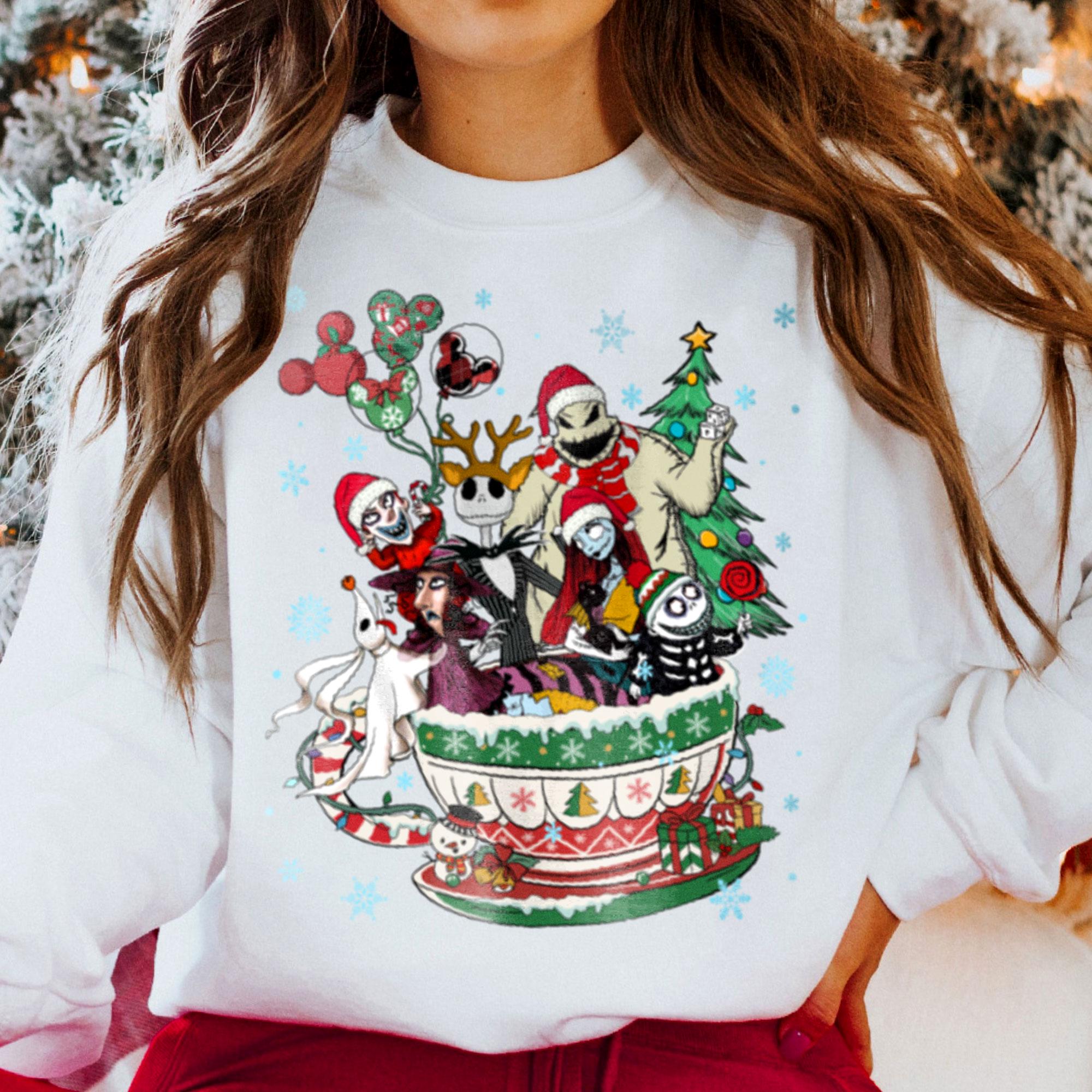 Nightmare Before Xmas Teacup Christmas Very Merry Christmas Party Comfort Color Shirt, X-mas Retro T-Shirt, Disneyland Trip Family Gift 2024