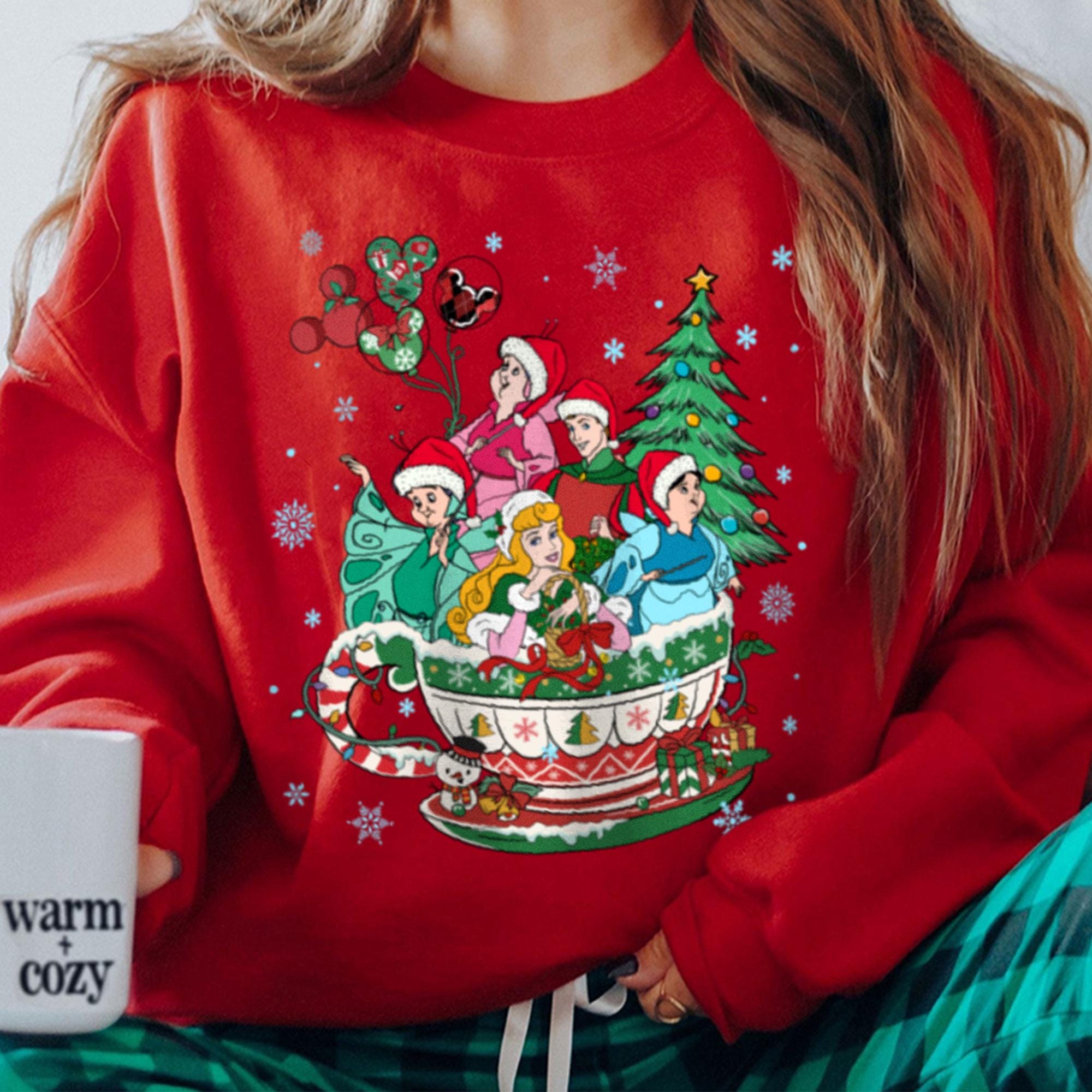 Sleeping Beauty Teacup Christmas Very Merry Christmas Party Shirt, X-mas Retro Comfort Color T-Shirt, Disneyland Trip Family Gift 2025