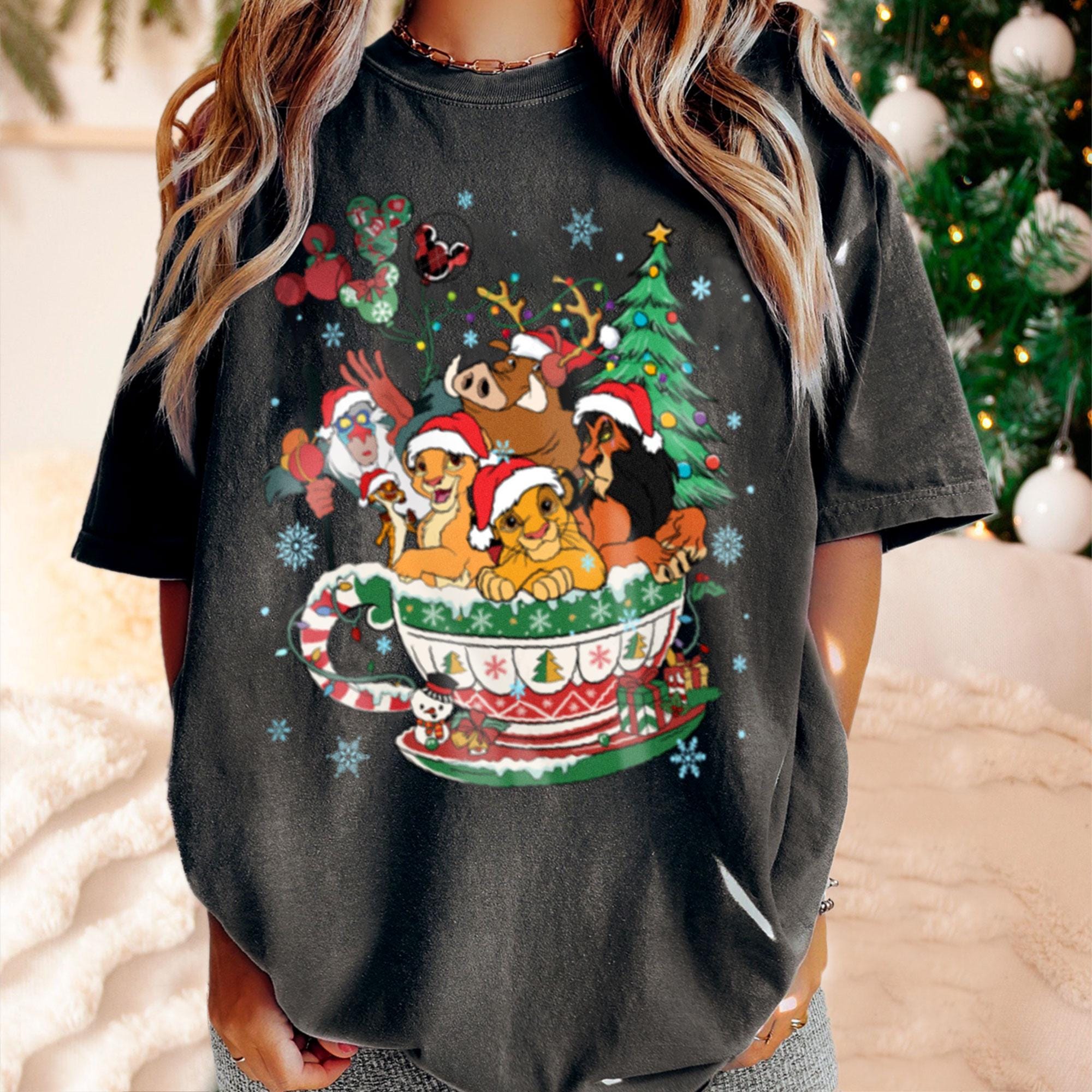 Lion King Team Simba Pumba Scar Timon Teacup Christmas A Very Merry Party X-mas Retro Comfort Color T-Shirt, Disneyland Family 2025