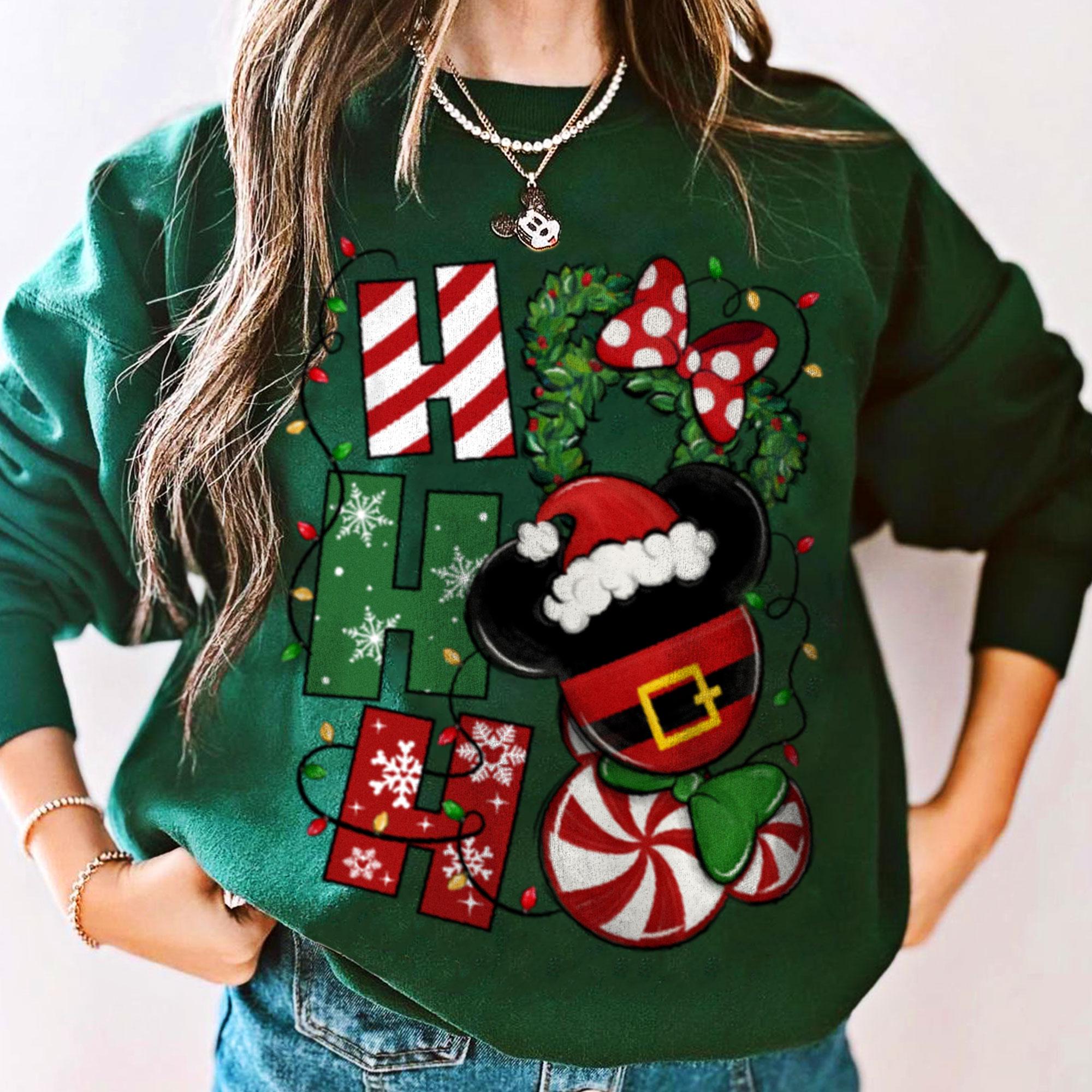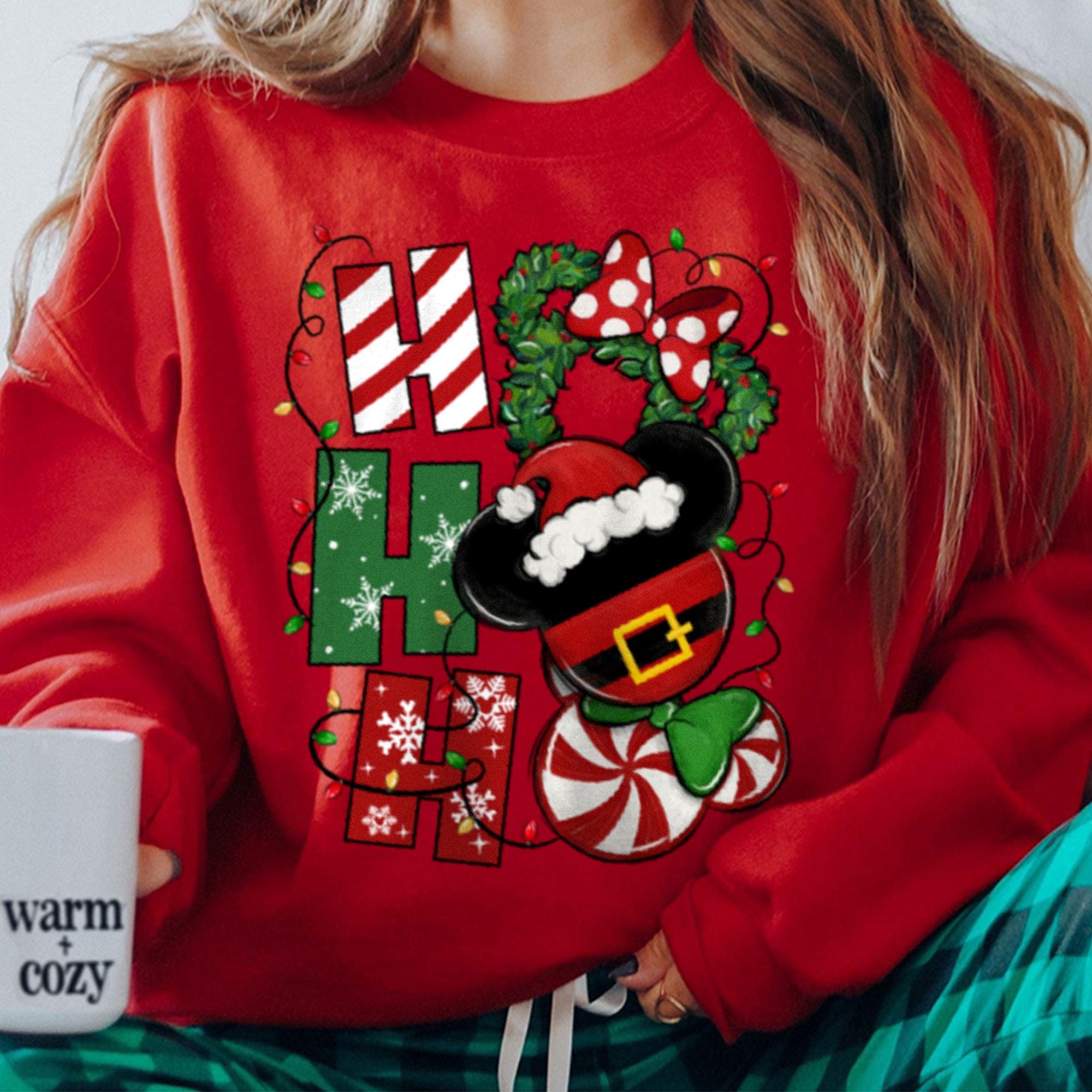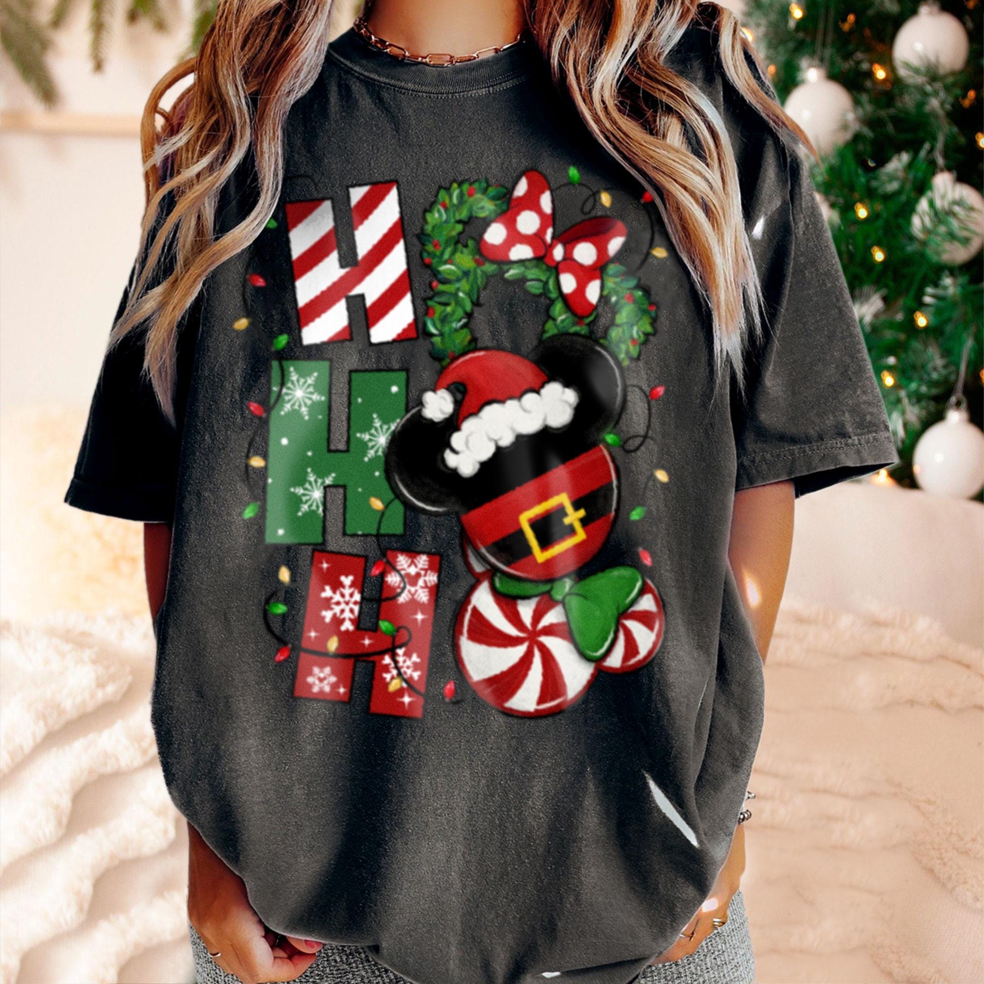 Ho Ho Ho Mickey Mouse Candy Cane A Very Merry Party X-mas Retro Comfort Color T-Shirt, Disneyland Vacation Trip Family Gift 2024
