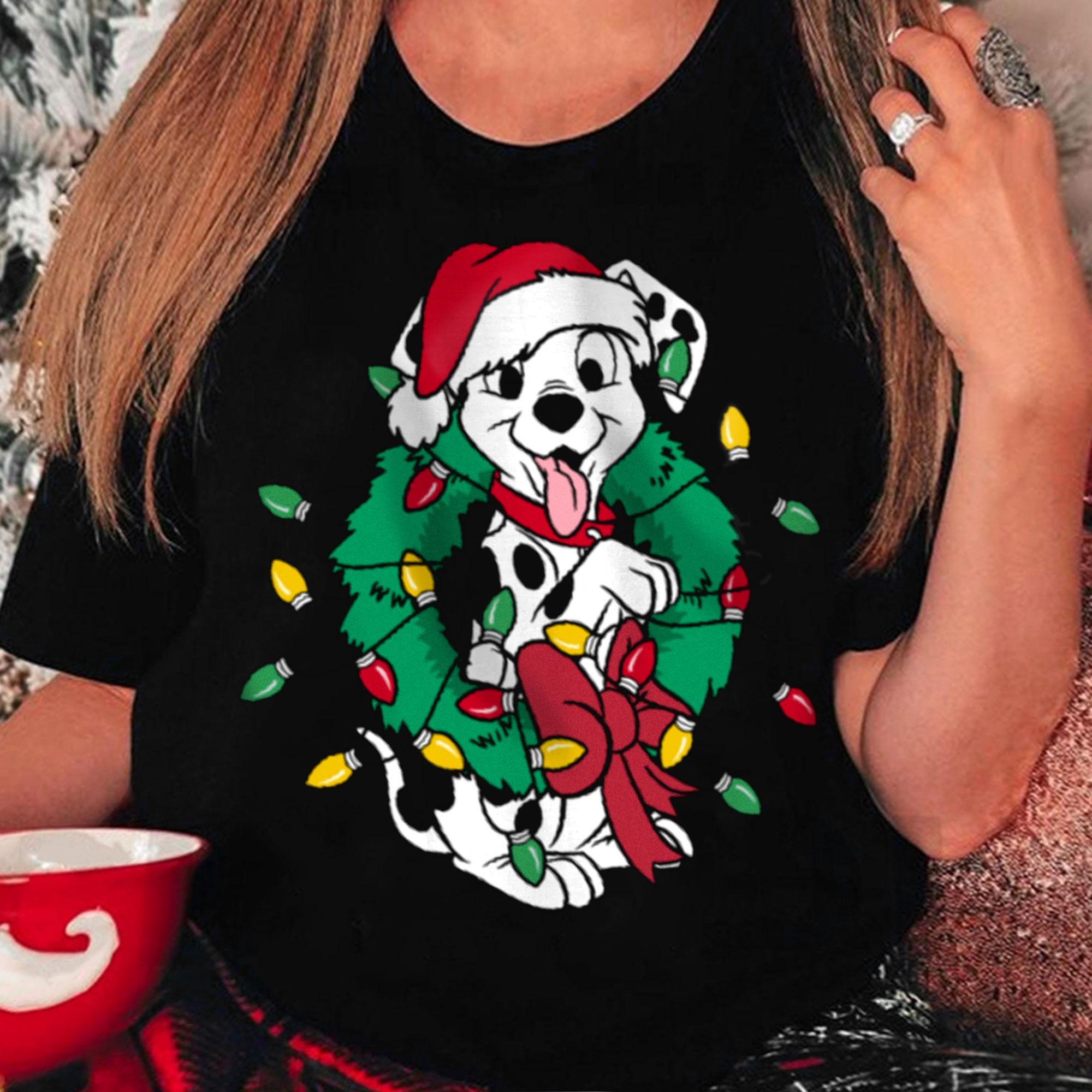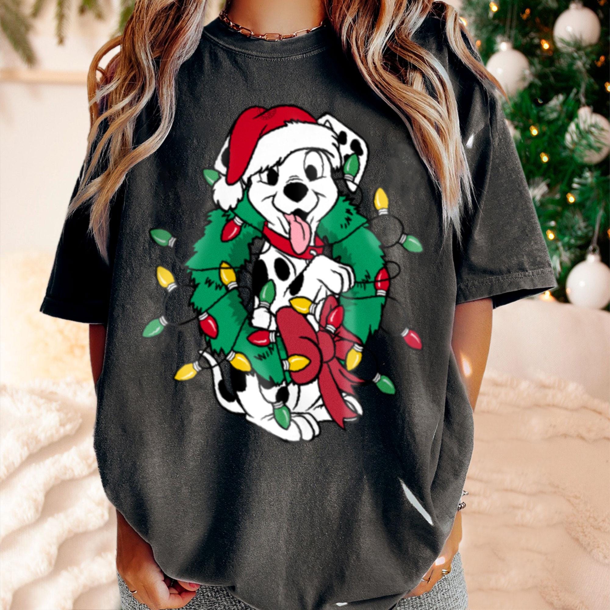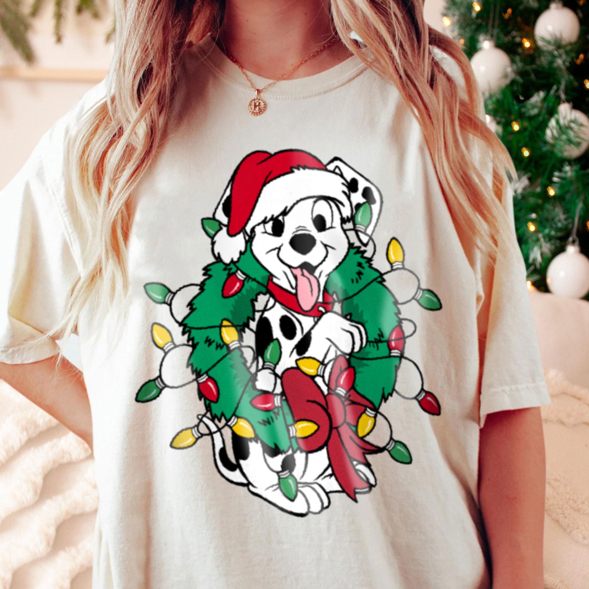 Puppy 101 Dalmatians Hug Wreath A Very Merry Christmas Party Shirt, X-mas Retro Comfort Color T-Shirt, Disneyland Trip Family Gift 2024