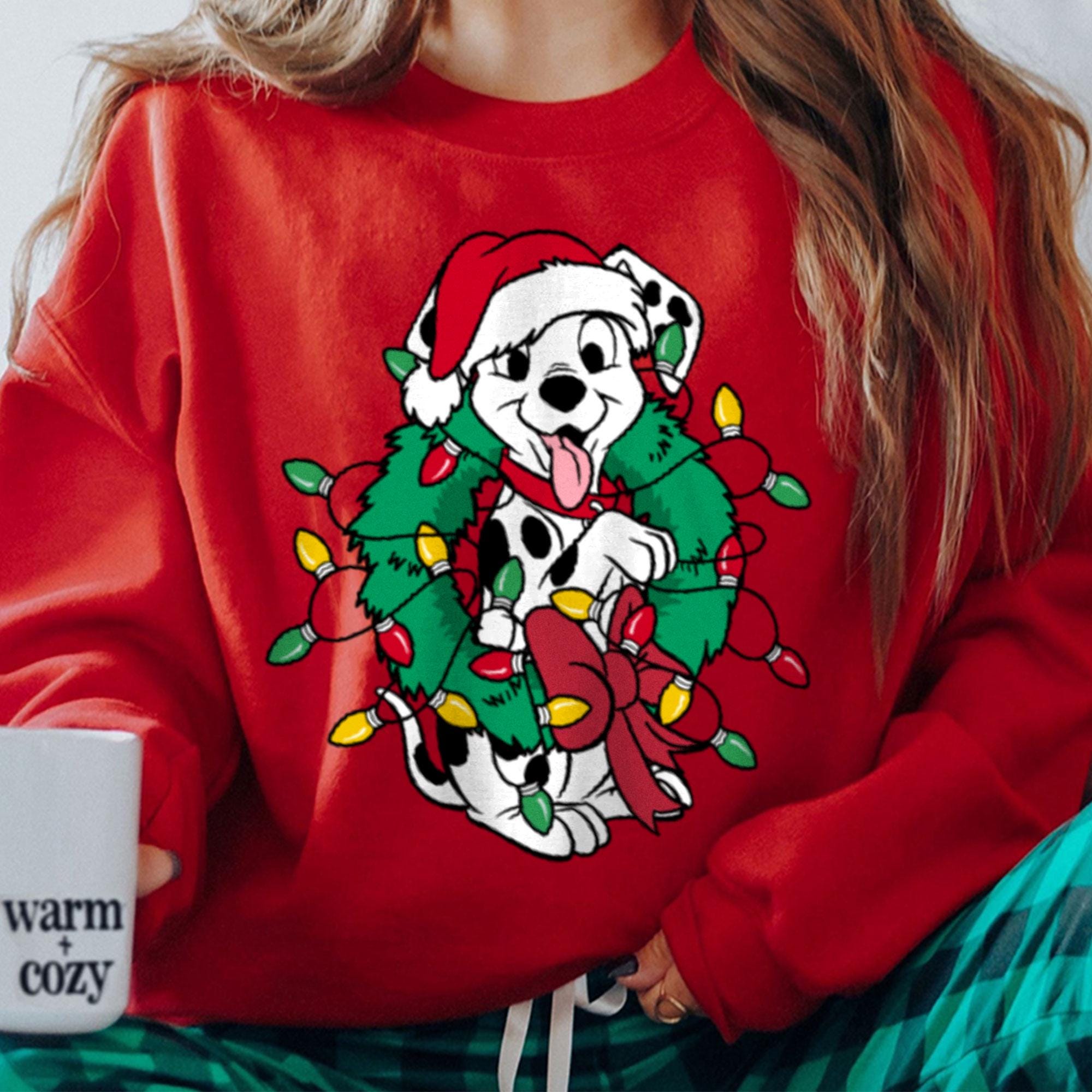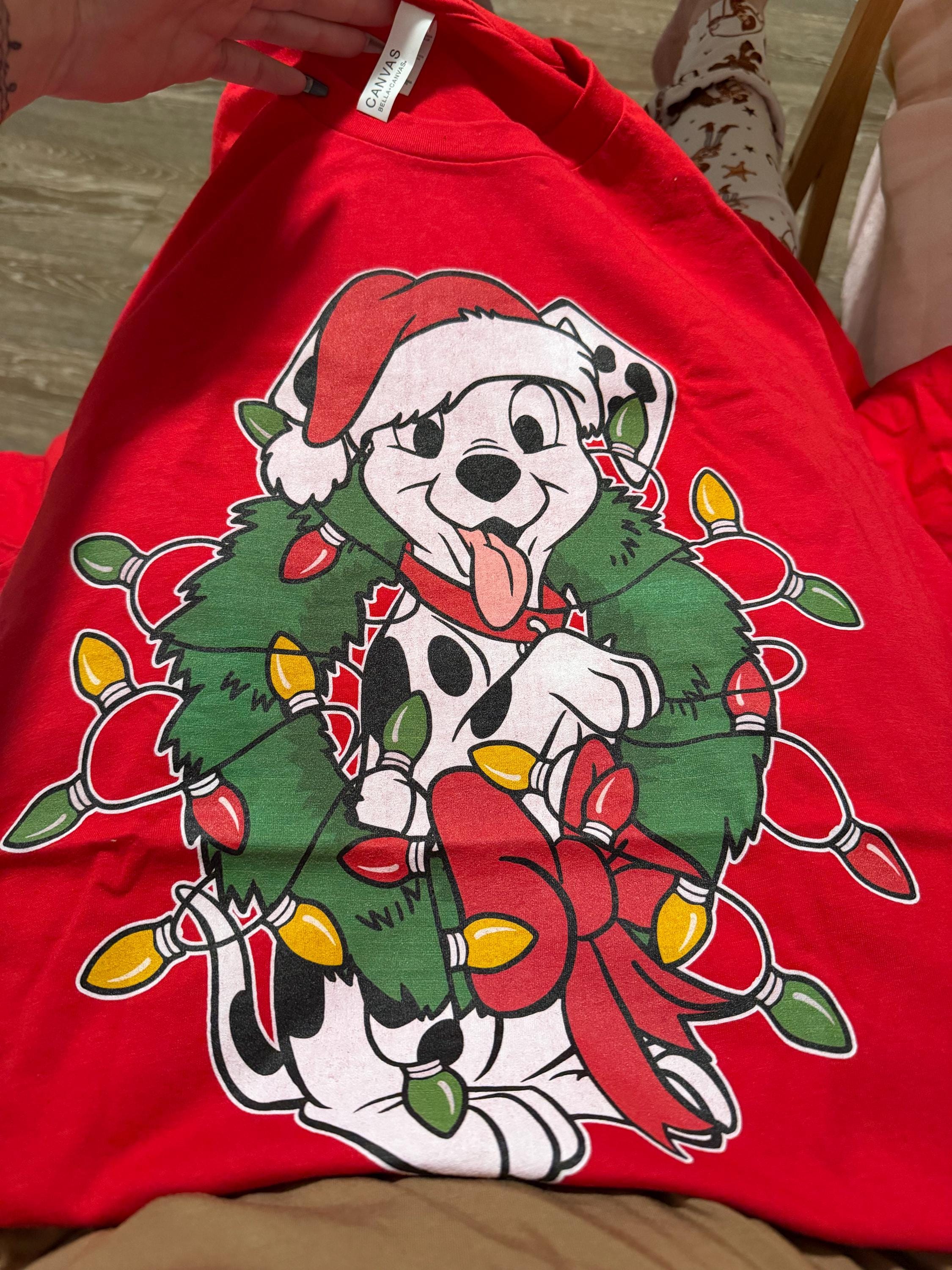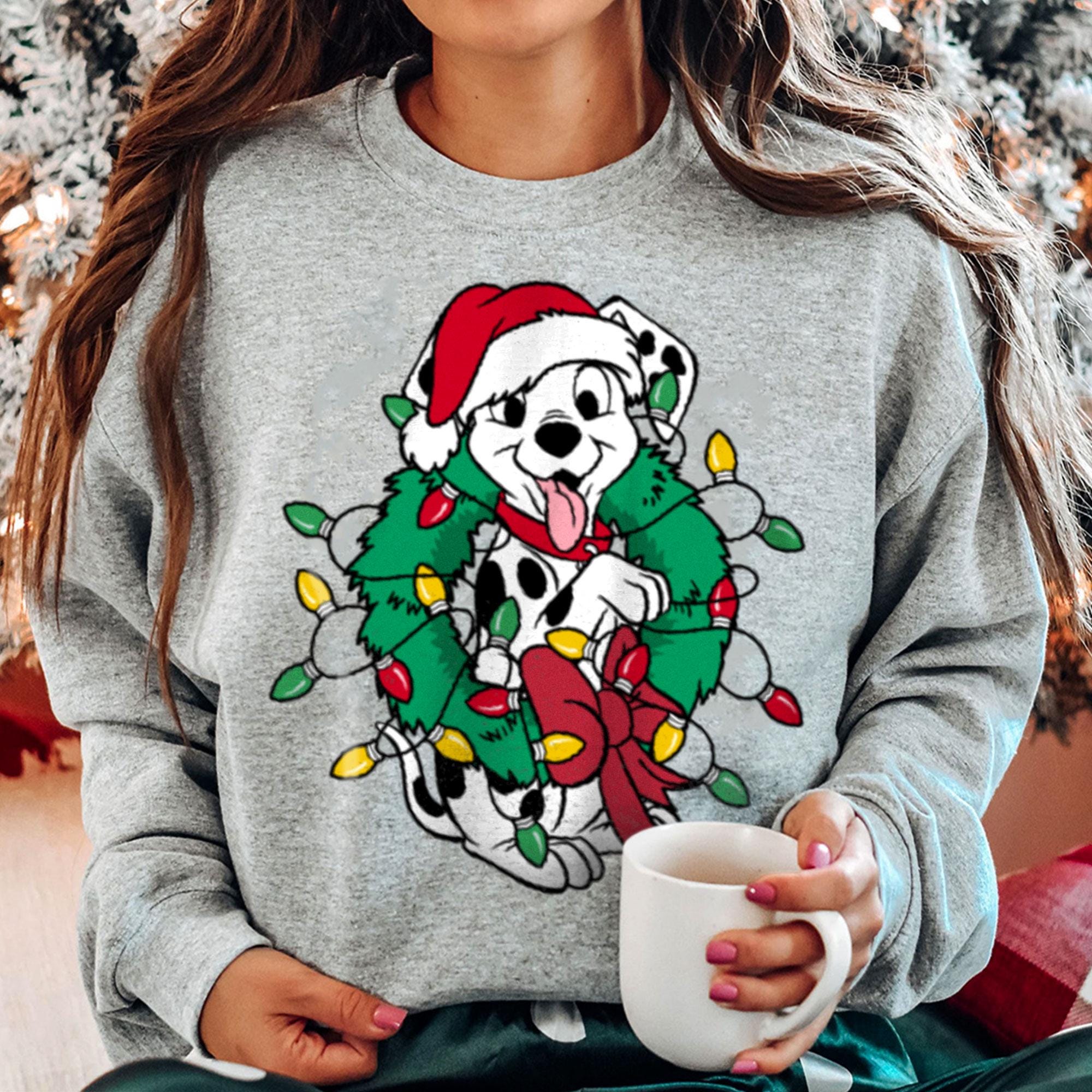 Puppy 101 Dalmatians Hug Wreath A Very Merry Christmas Party Shirt, X-mas Retro Comfort Color T-Shirt, Disneyland Trip Family Gift 2024