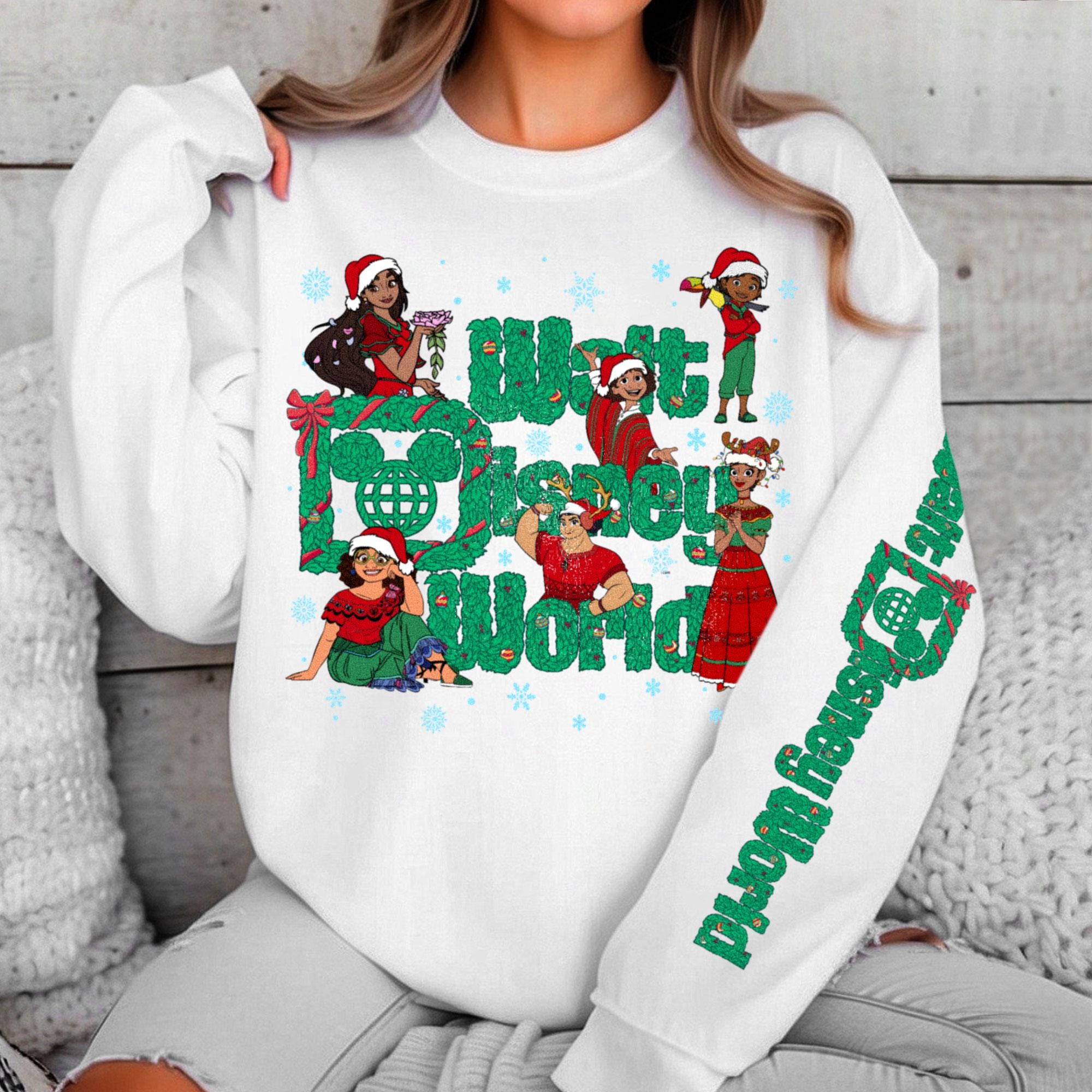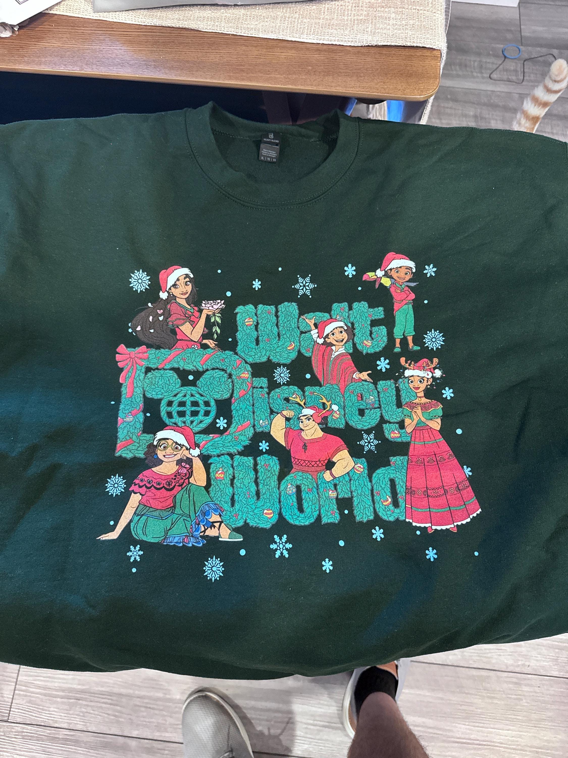 Amazing Encanto Xmas sweatshirt! It’s hard to find merch, even on Etsy, that doesn’t use the same Encanto graphics so this was special. I have ordered many custom T-shirts and sweatshirts from other vendors and what I liked about this is the the print is fairly soft and not like you are wearing stiff cardboard on your chest. Highly recommend!