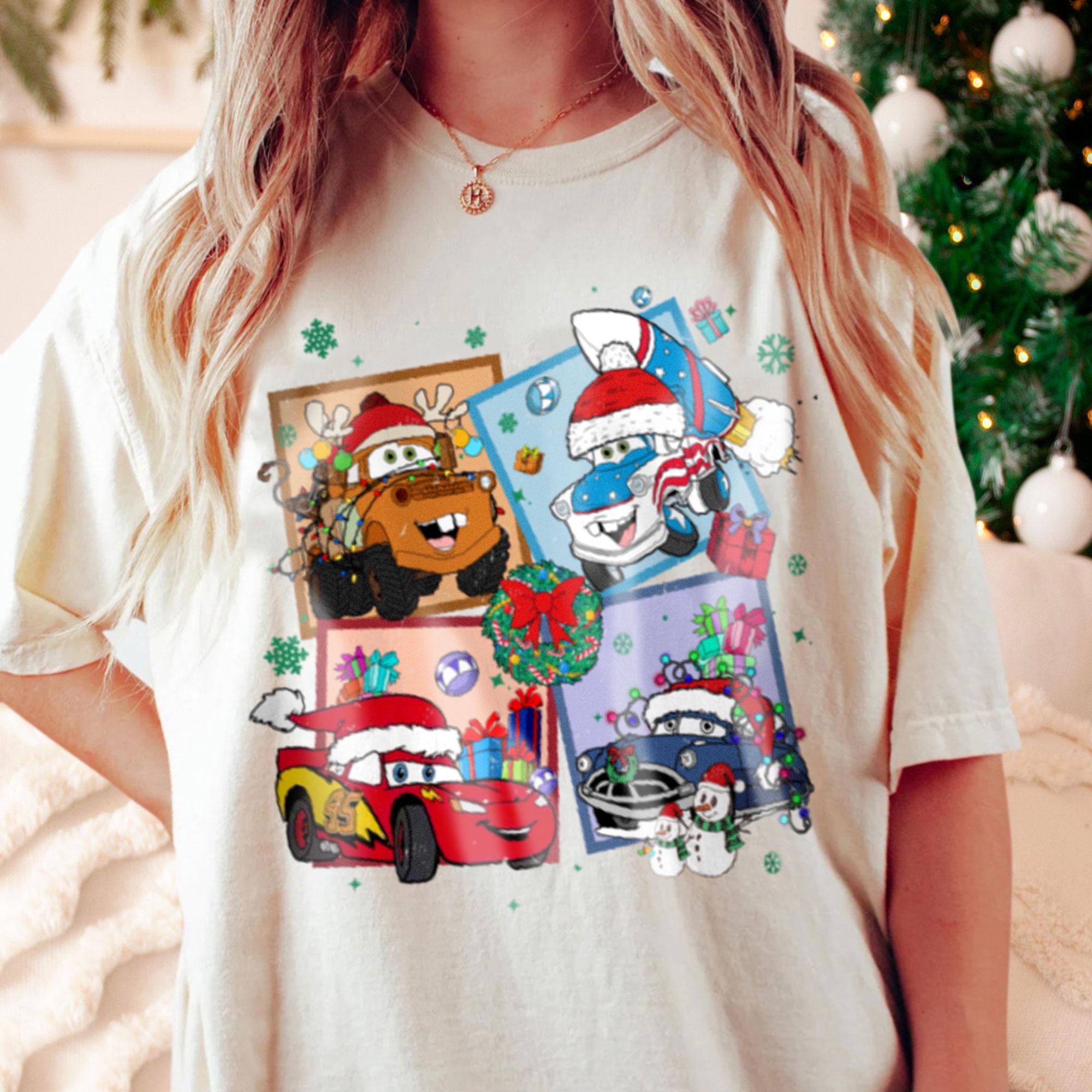 Christmas Lightning Mc Queen Cars A Very Merry Party X-mas Retro Comfort Color T-Shirt, Disneyland Vacation Trip Family Gift 2024