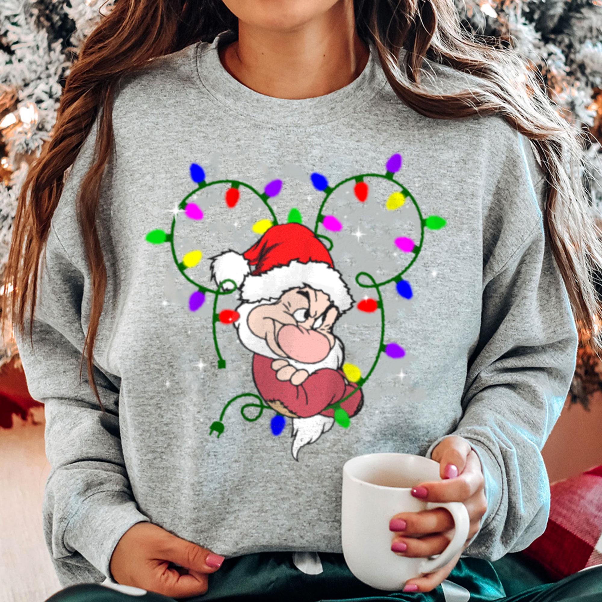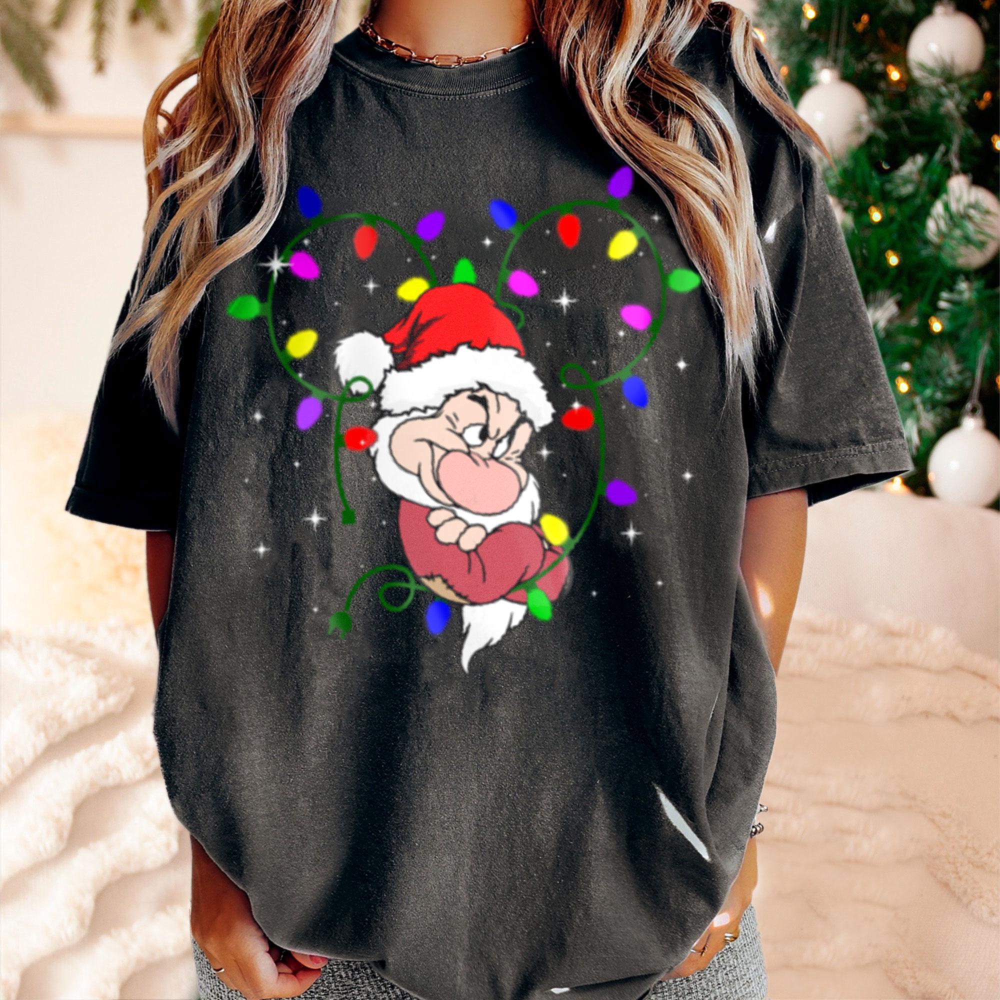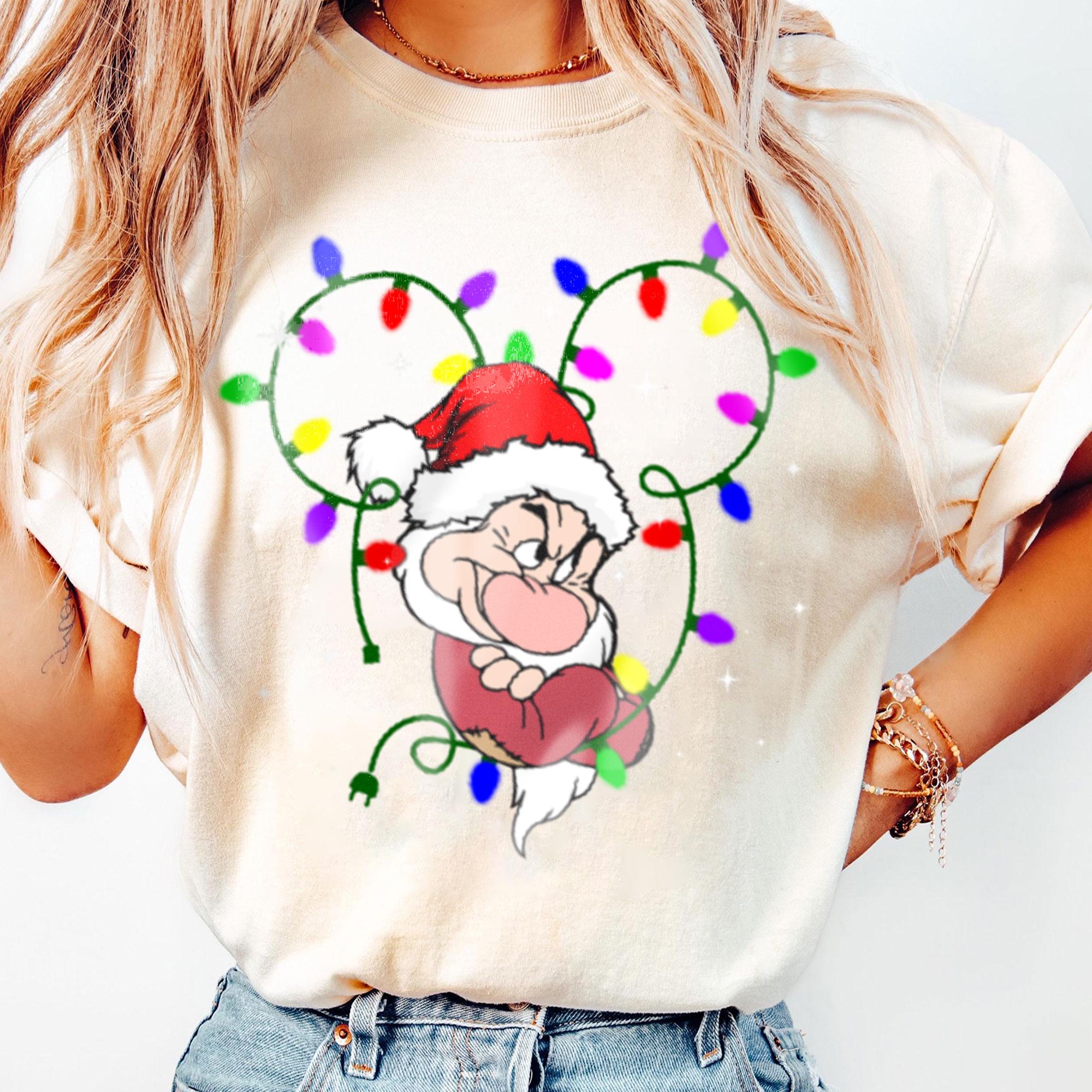 Grumpy Seven Drawfs Ugly Xmas Light Very Merry Christmas Party Shirt, X-mas Retro T-Shirt, Disneyland Vacation Trip Family Gift 2024