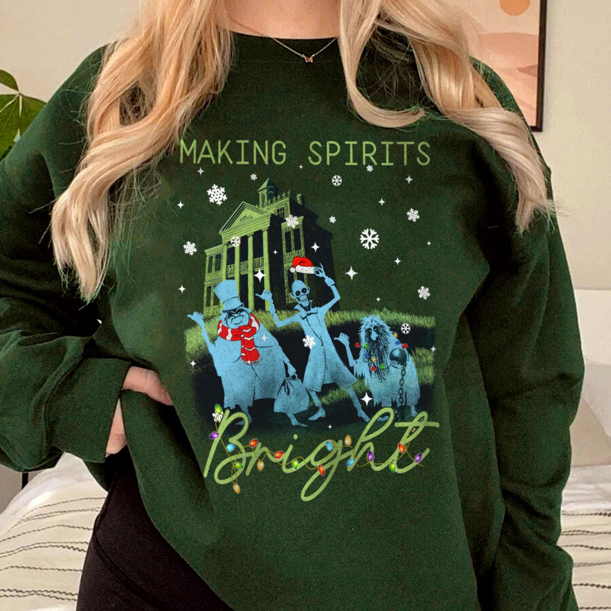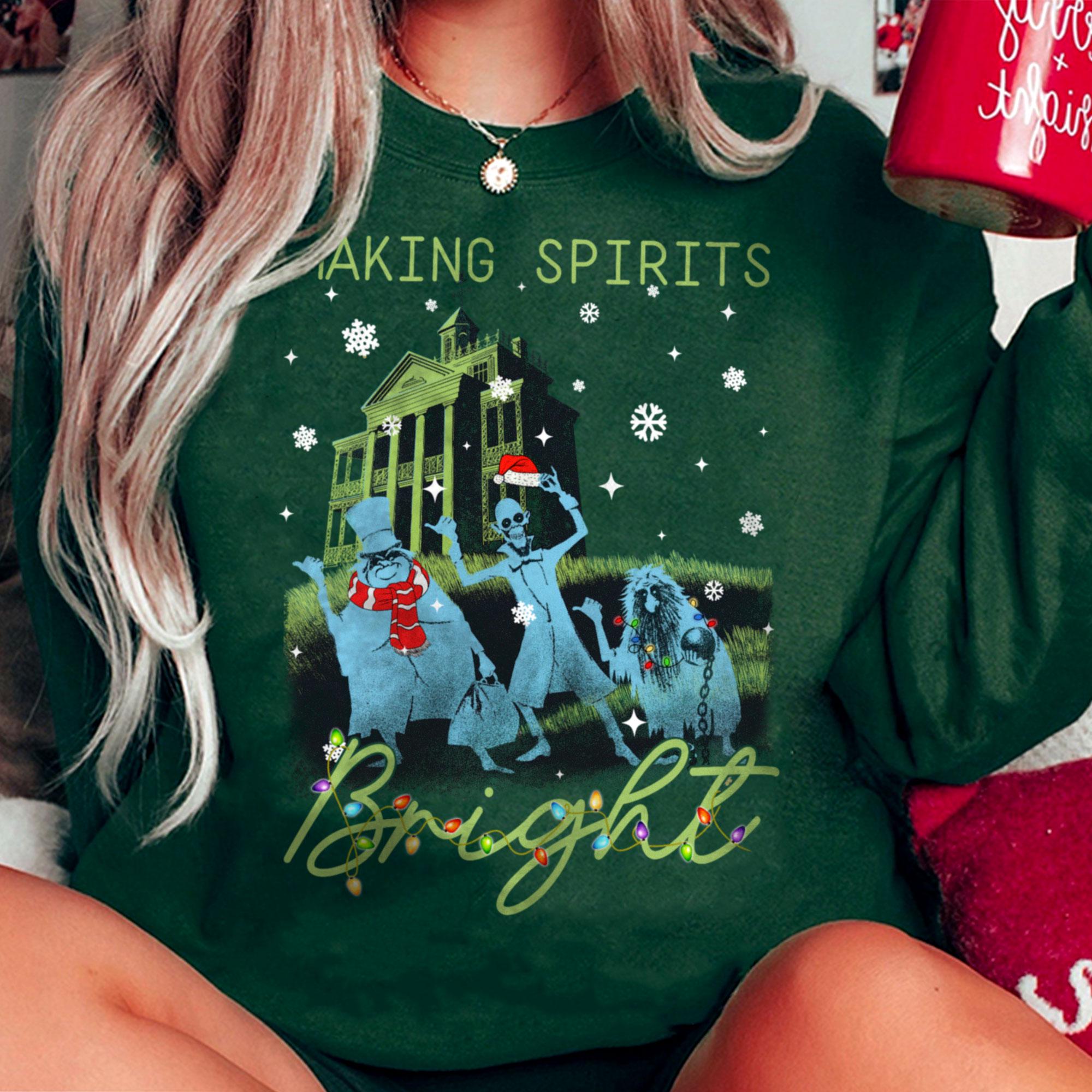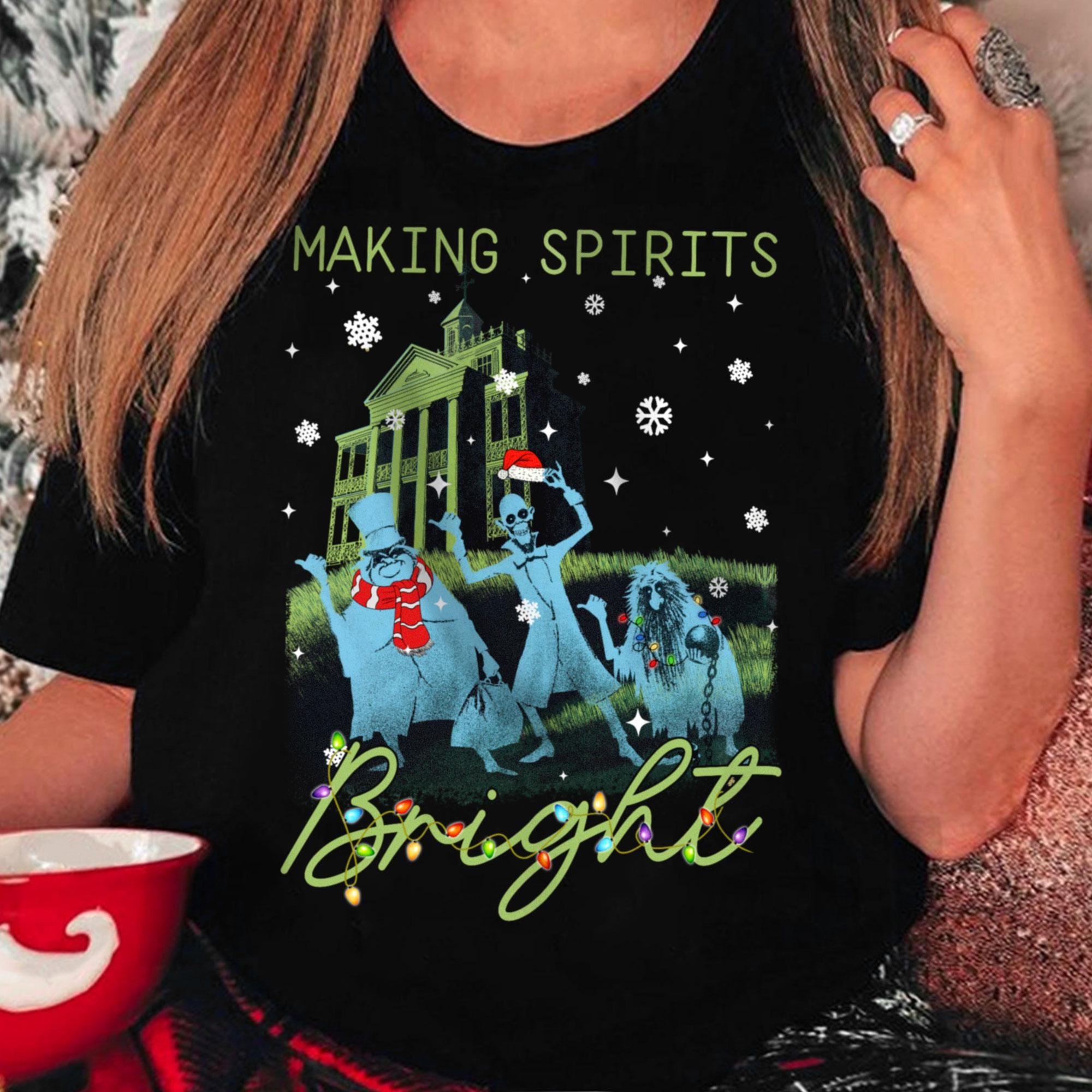 Making Spirits Bright Christmas Light Hitchhiking Ghost Shirt, X-mas Retro T-Shirt, Disneyland Vacation Trip Family Gift 2024