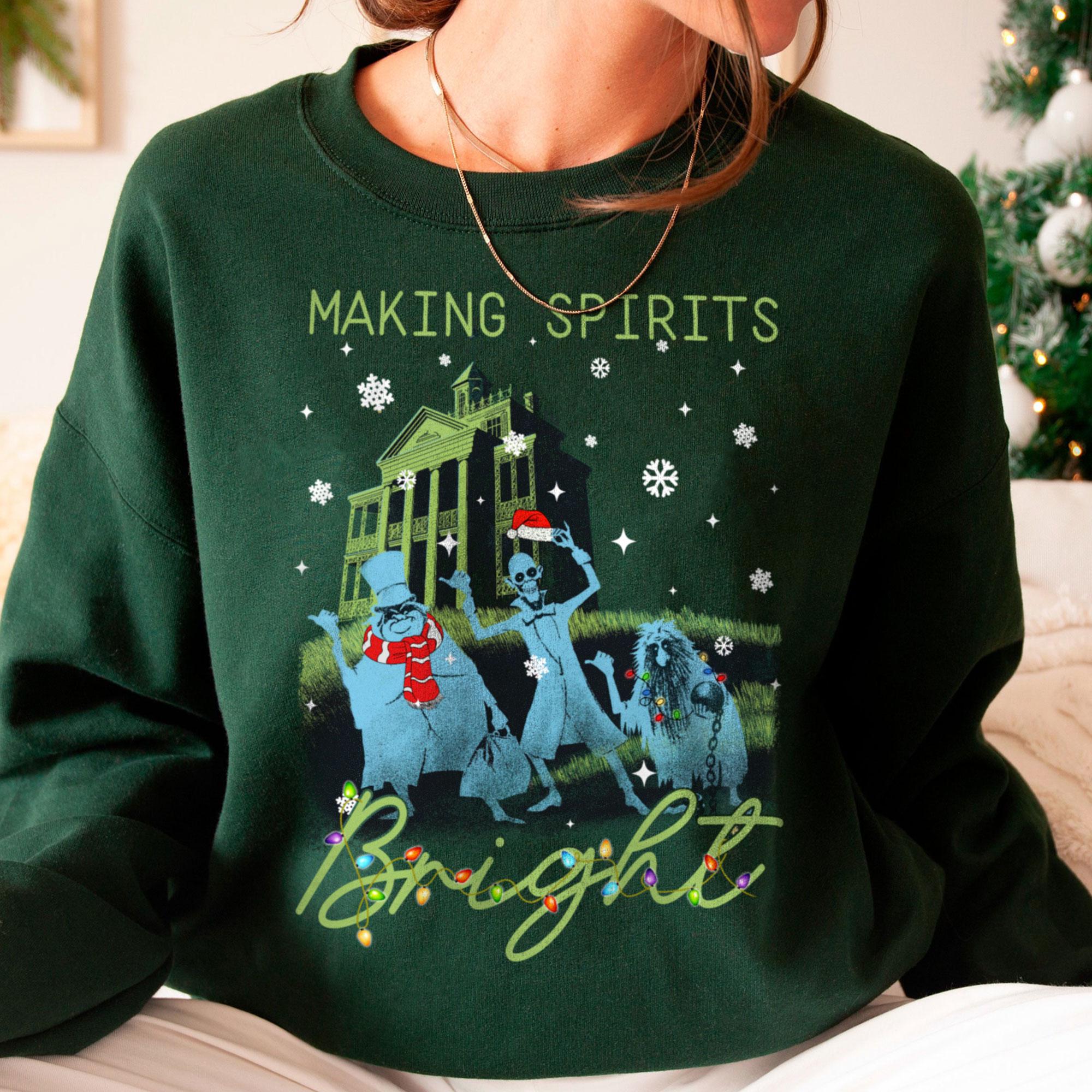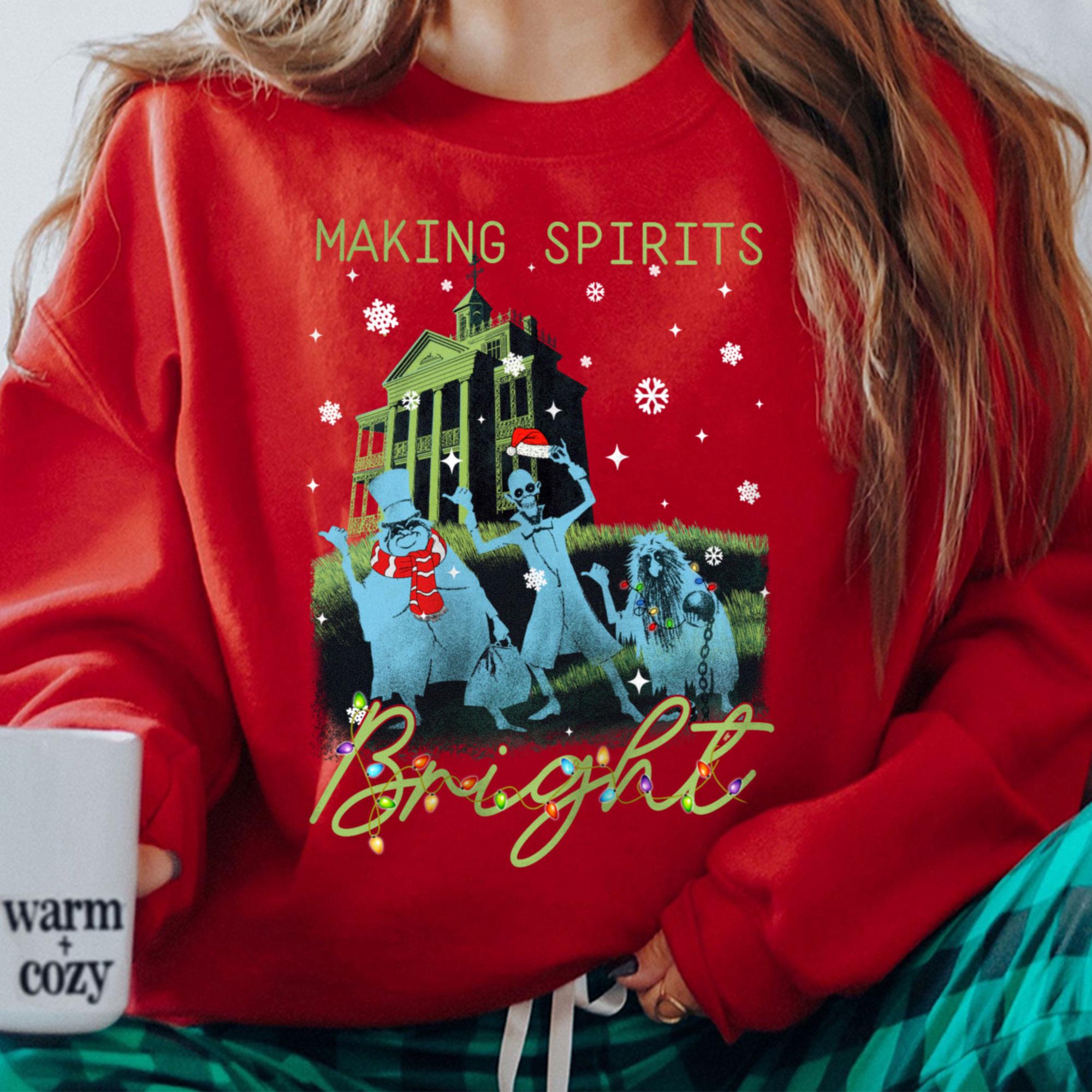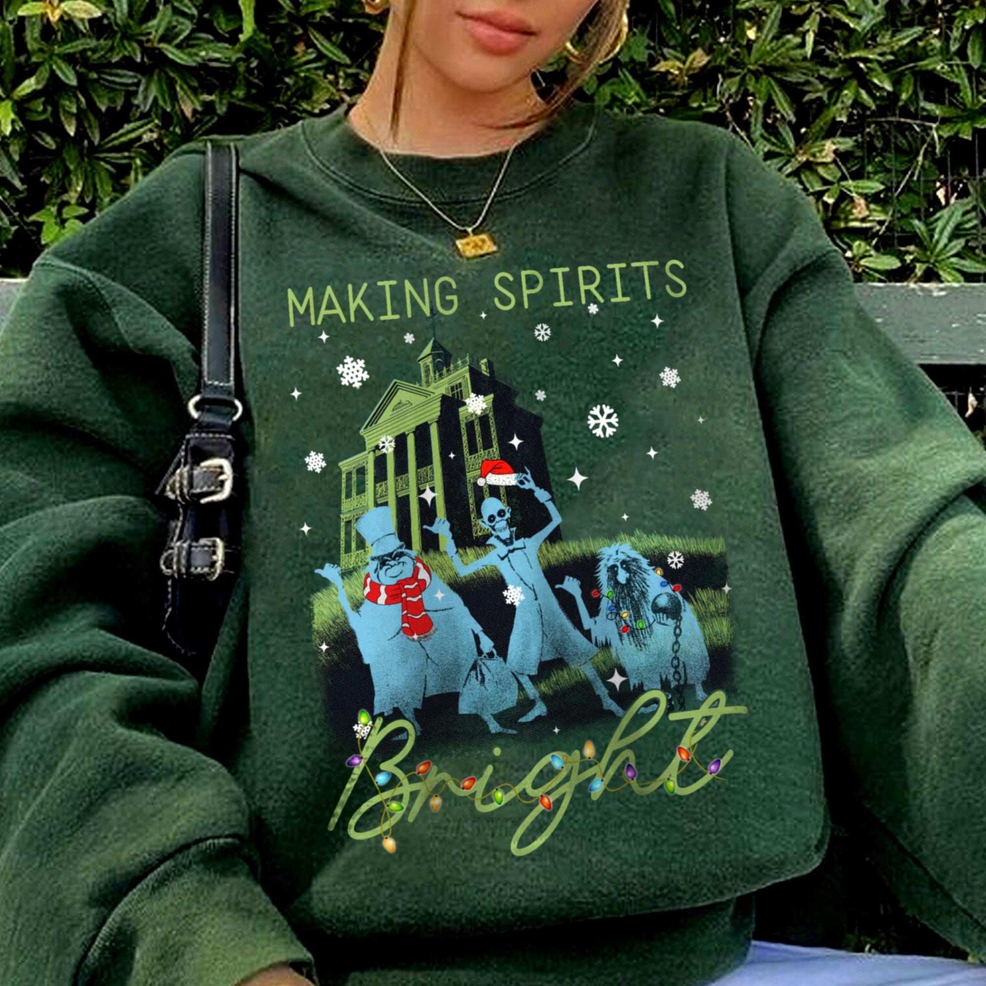 Making Spirits Bright Christmas Light Hitchhiking Ghost Shirt, X-mas Retro T-Shirt, Disneyland Vacation Trip Family Gift 2024