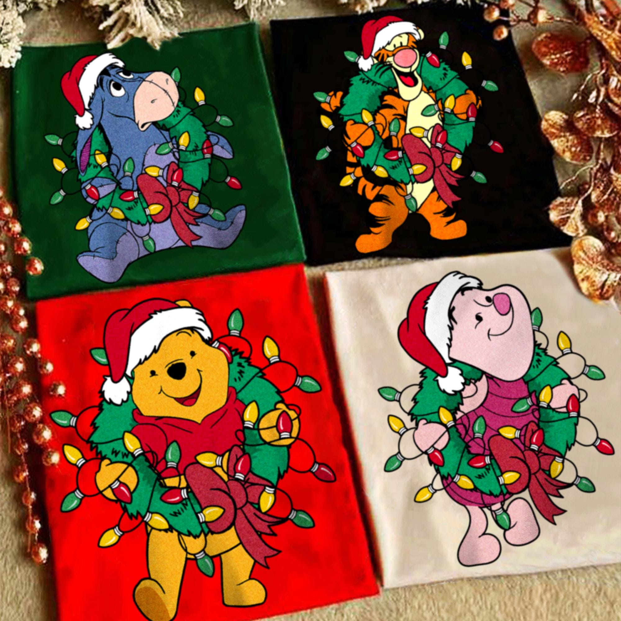 Pooh Eeyore Piglet Tigger Friends Hiding Wreath Funny A Christmas Tree Shirt, X-mas Retro T-Shirt, Disneyland Vacation Trip Family Gift 2024