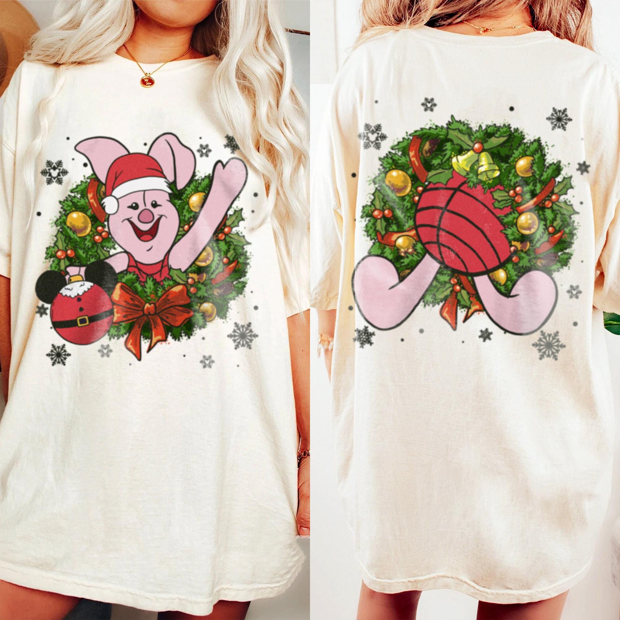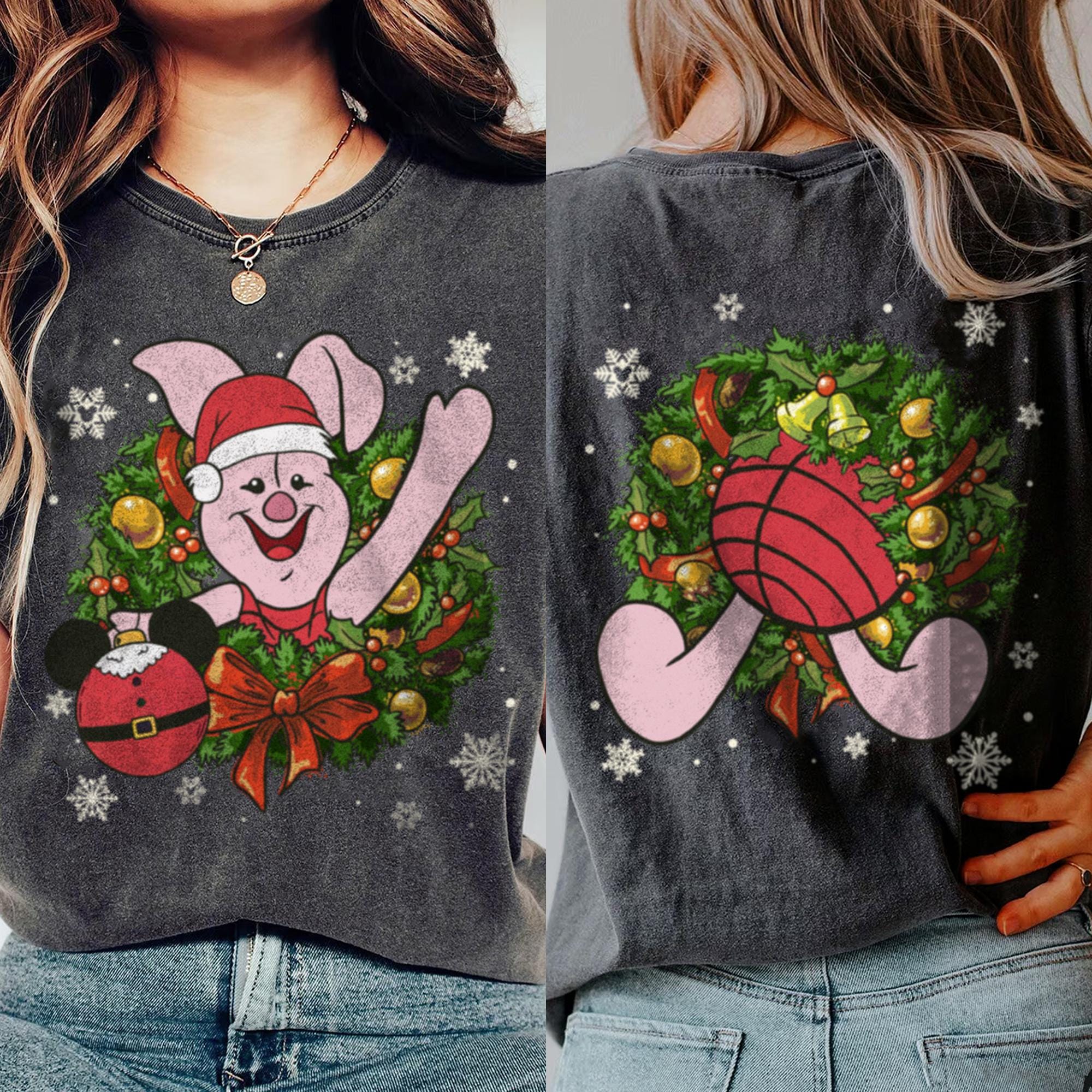 Piglet Crawl Over Through Xmas Wreath, Very Merry Christmas Party Shirt, X-mas Retro T-Shirt, Disneyland Vacation Trip Family Gift 2024