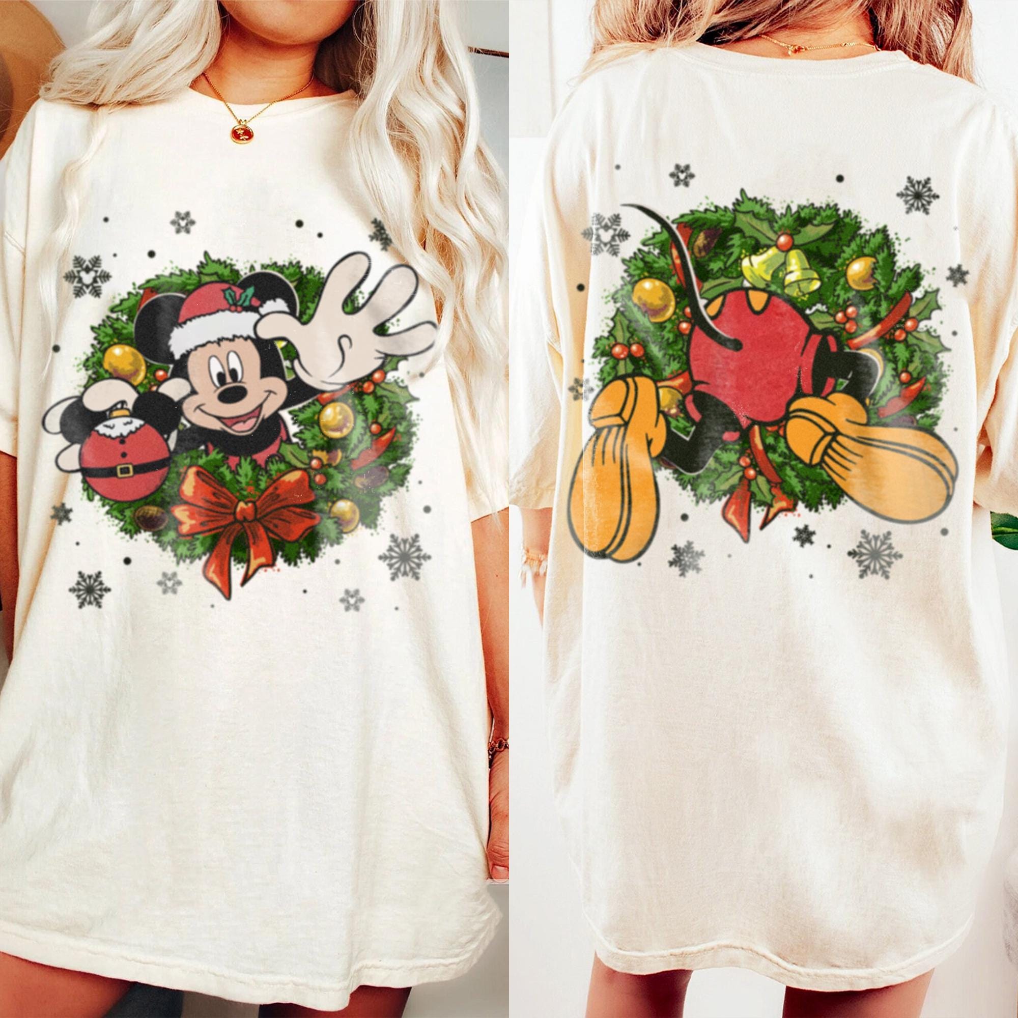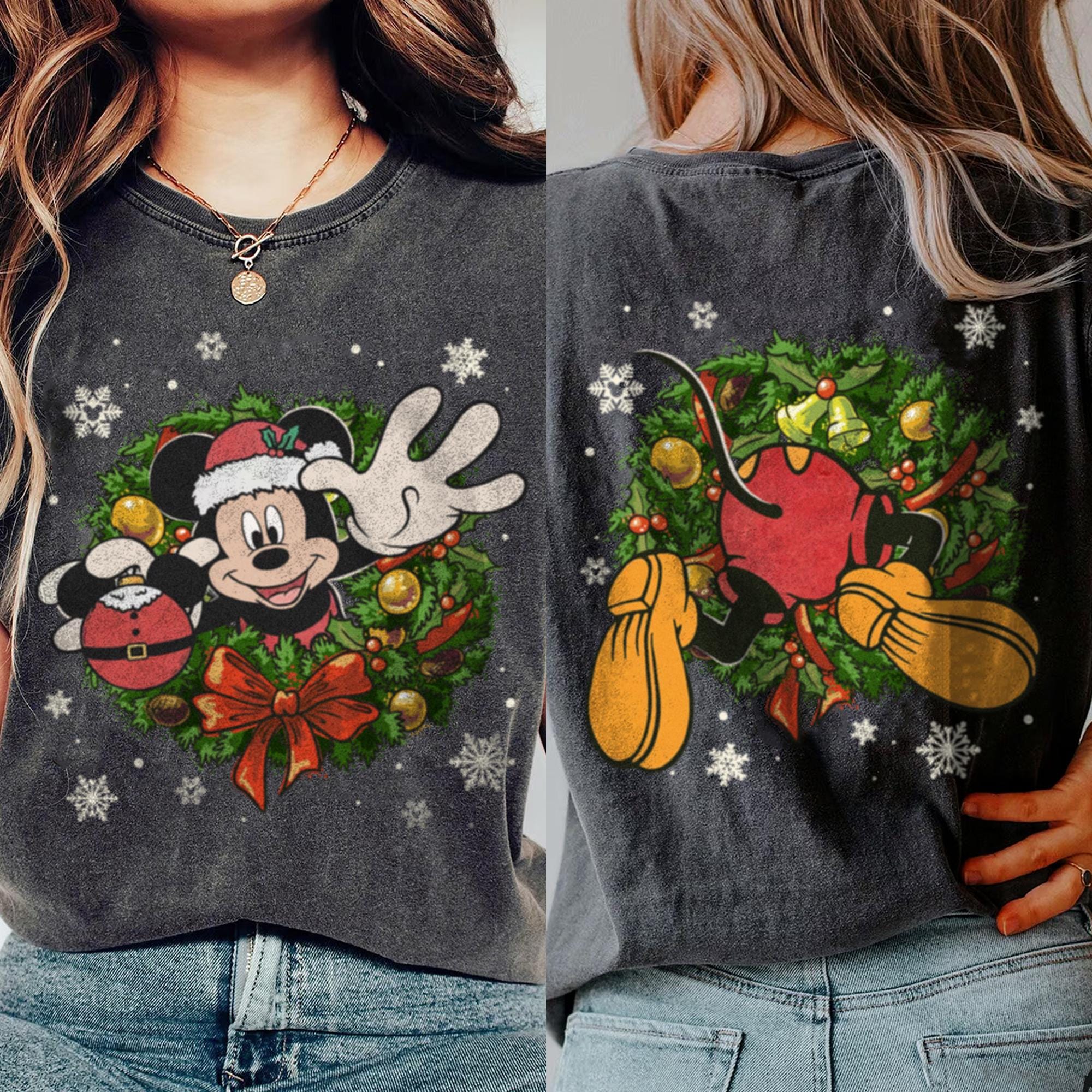 Mickey Crawl Over Through Xmas Wreath, Very Merry Christmas Party Shirt, X-mas Retro T-Shirt, Disneyland Vacation Trip Family Gift 2024