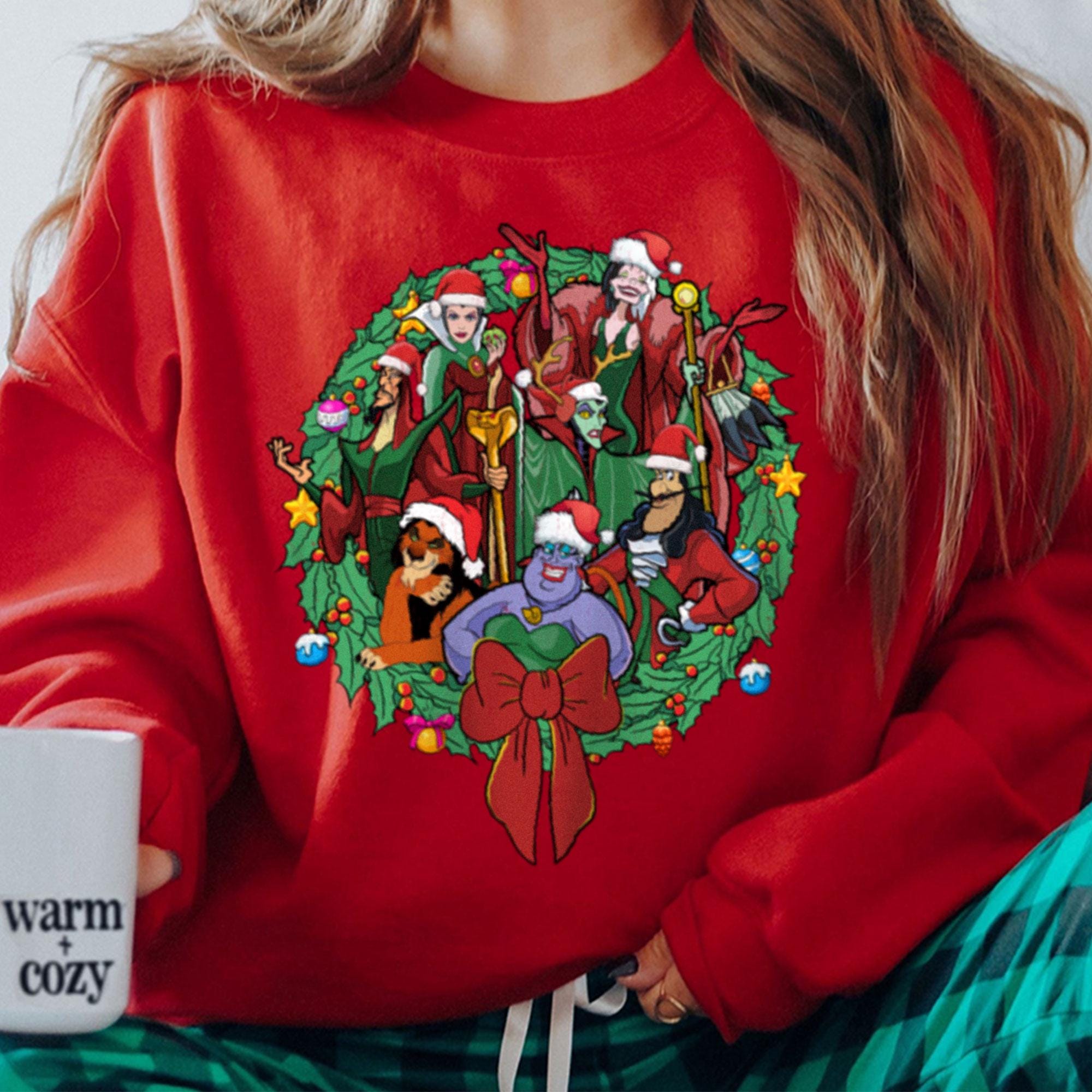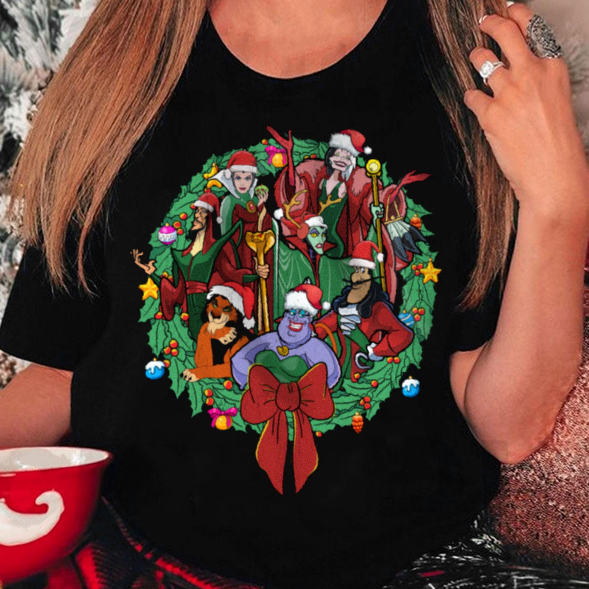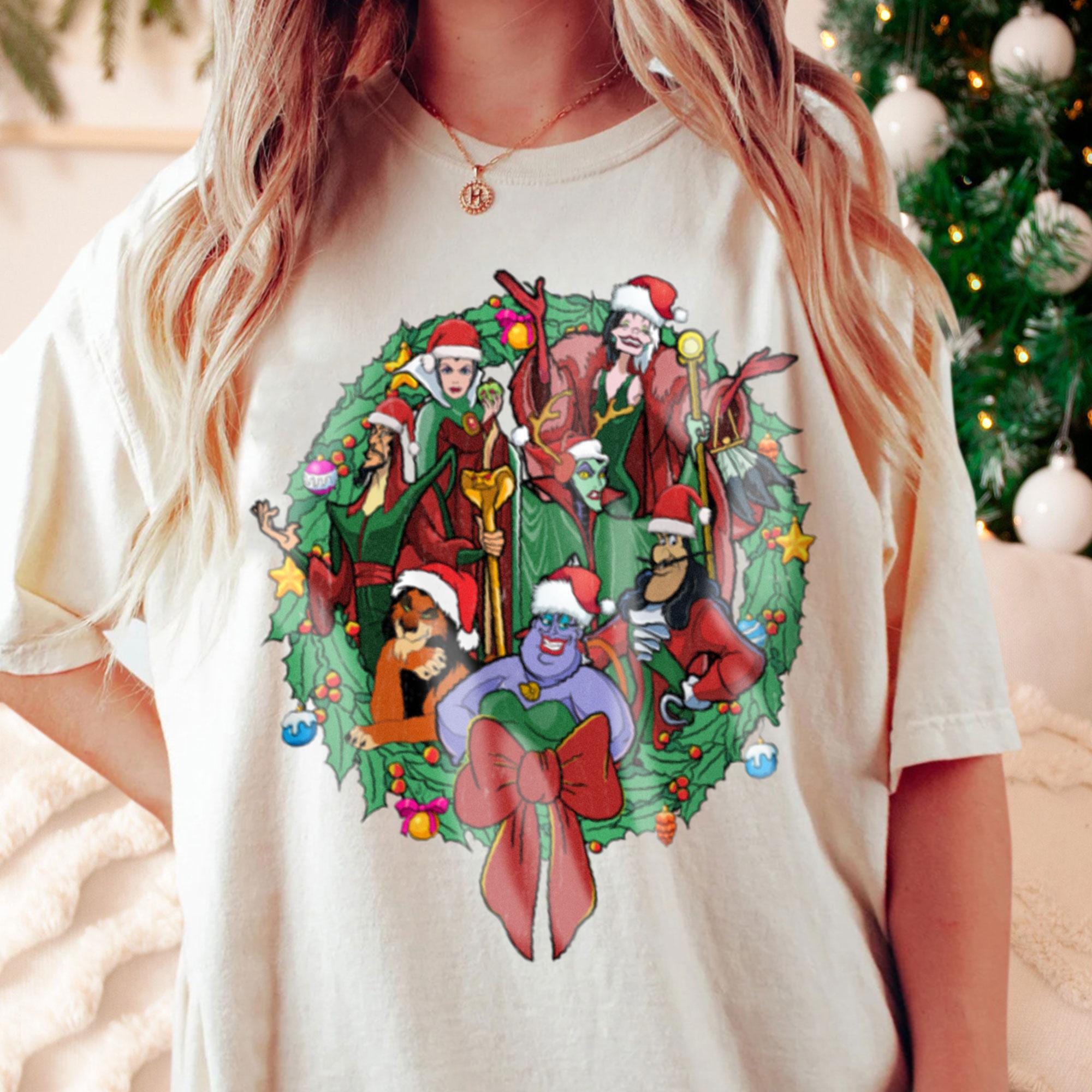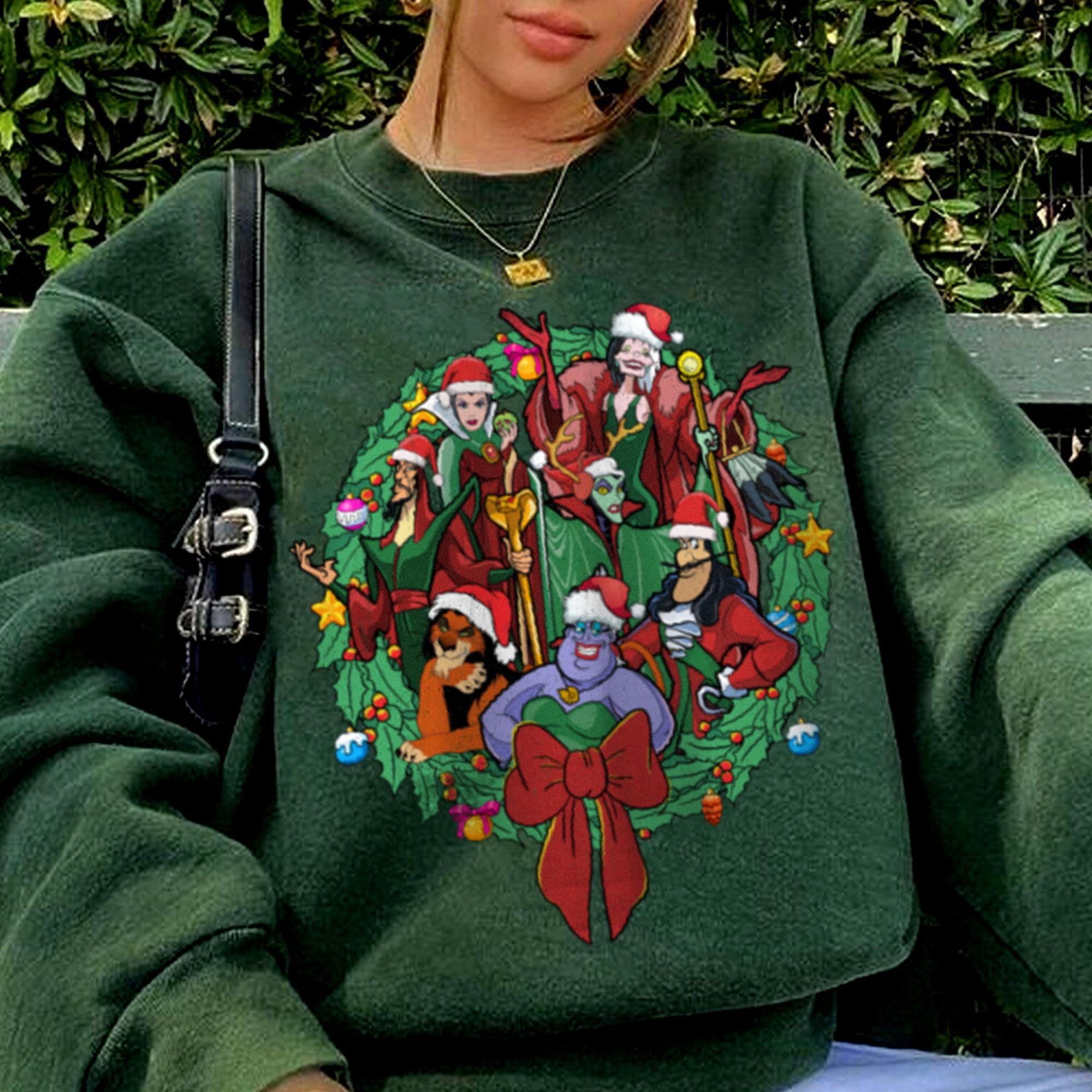 All Villains Wreath Very Merry Christmas Party Shirt, X-mas Retro T-Shirt, Disneyland Vacation Trip Family Gift 2024