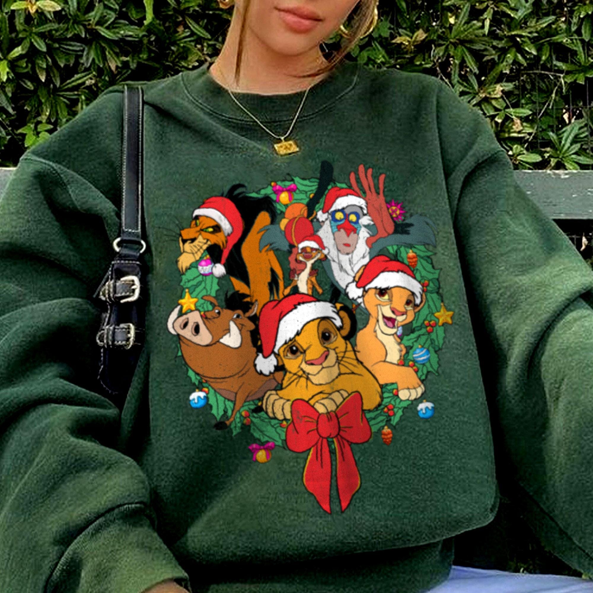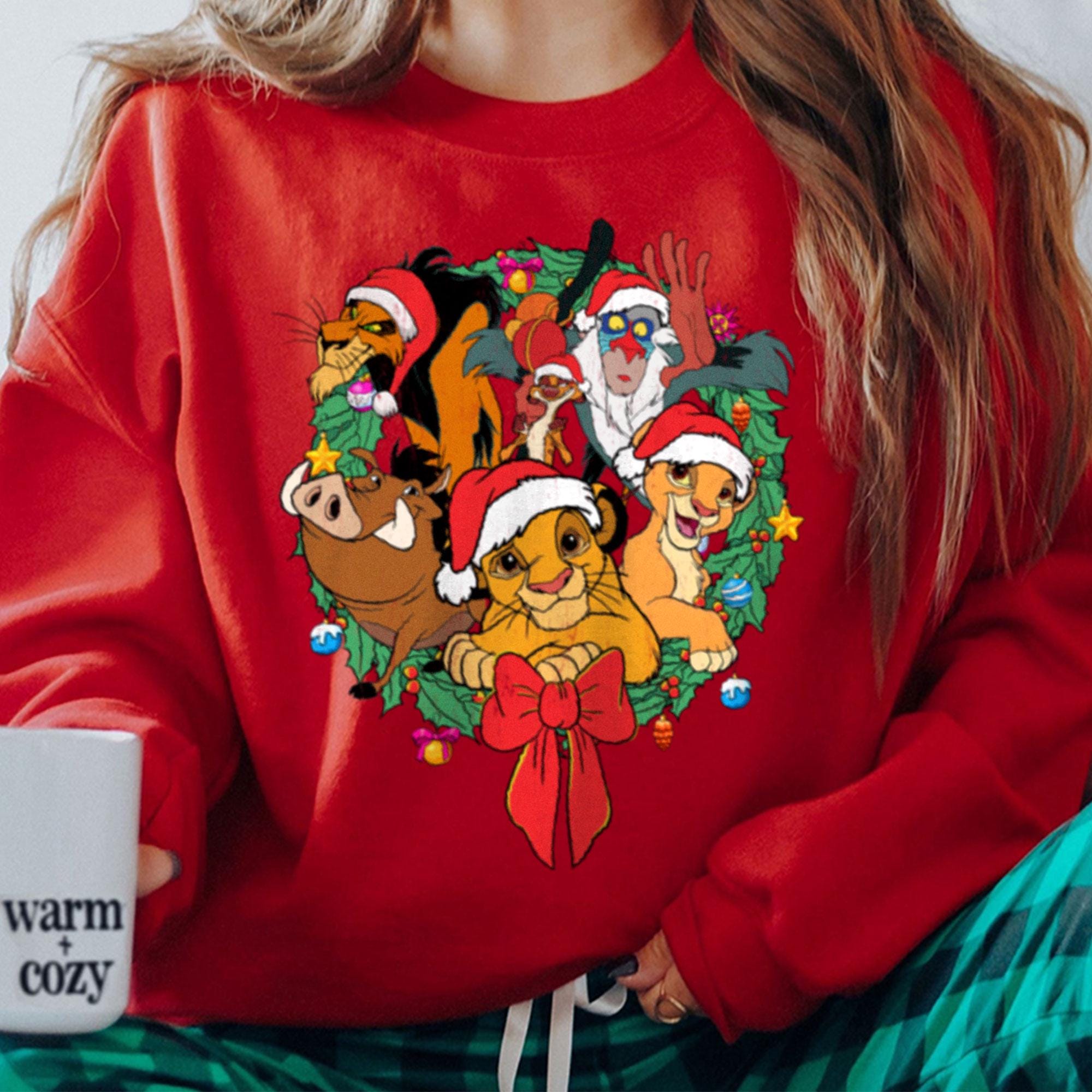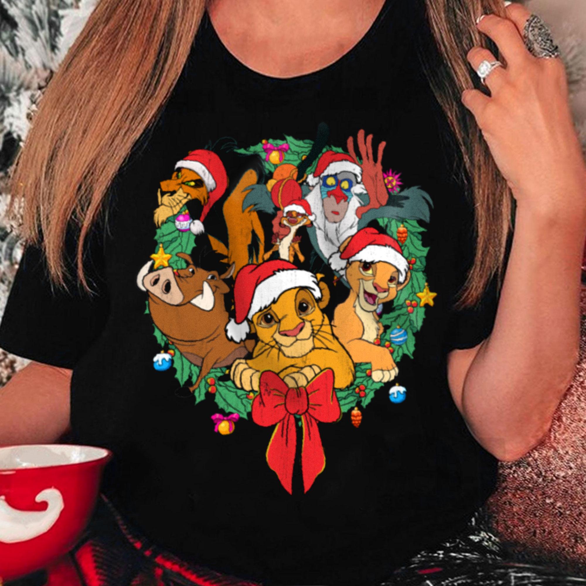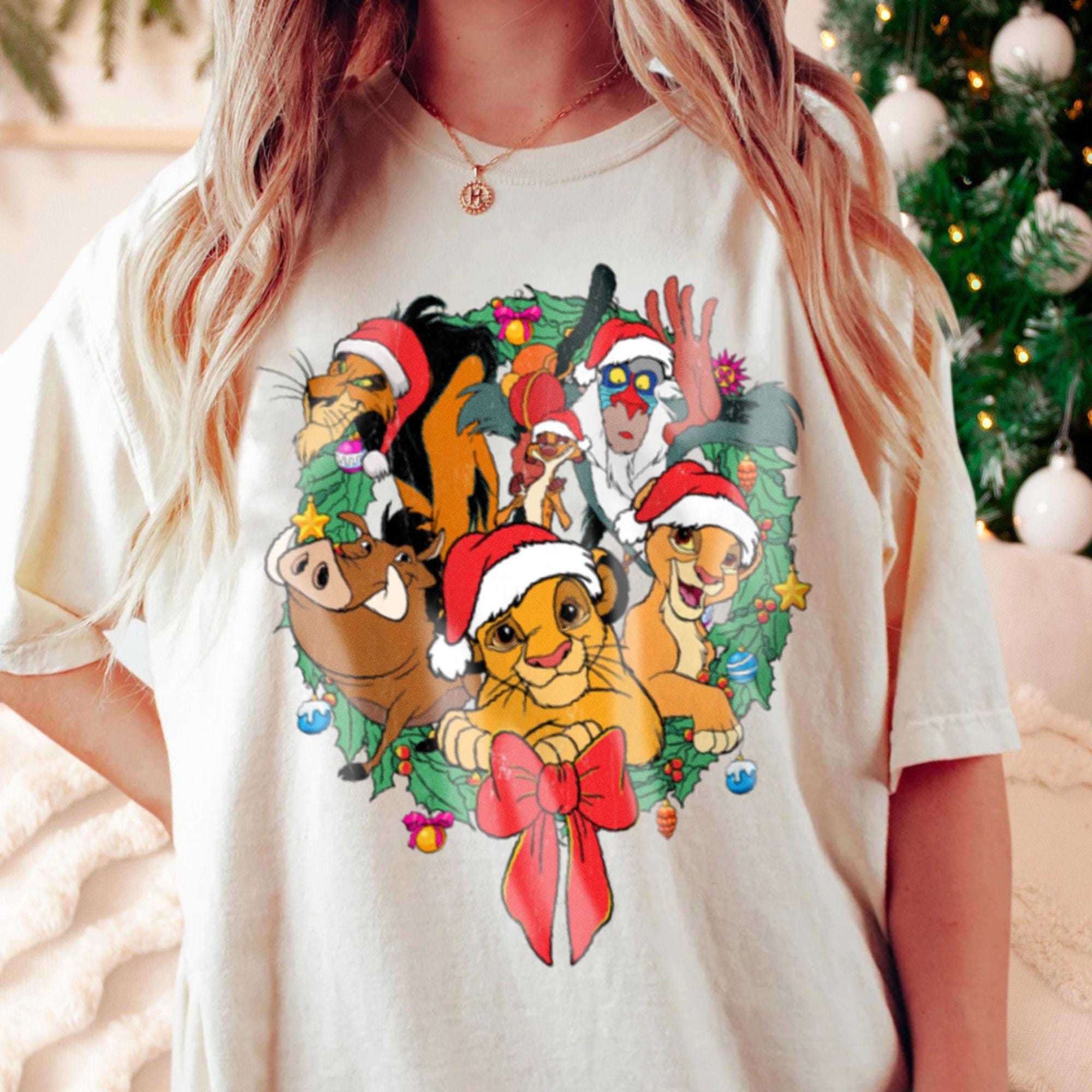 Lion King Team In Wreath Magic Kingdom Very Merry Christmas Party Shirt, X-mas Retro T-Shirt, Disneyland Vacation Trip Family Gift 2024