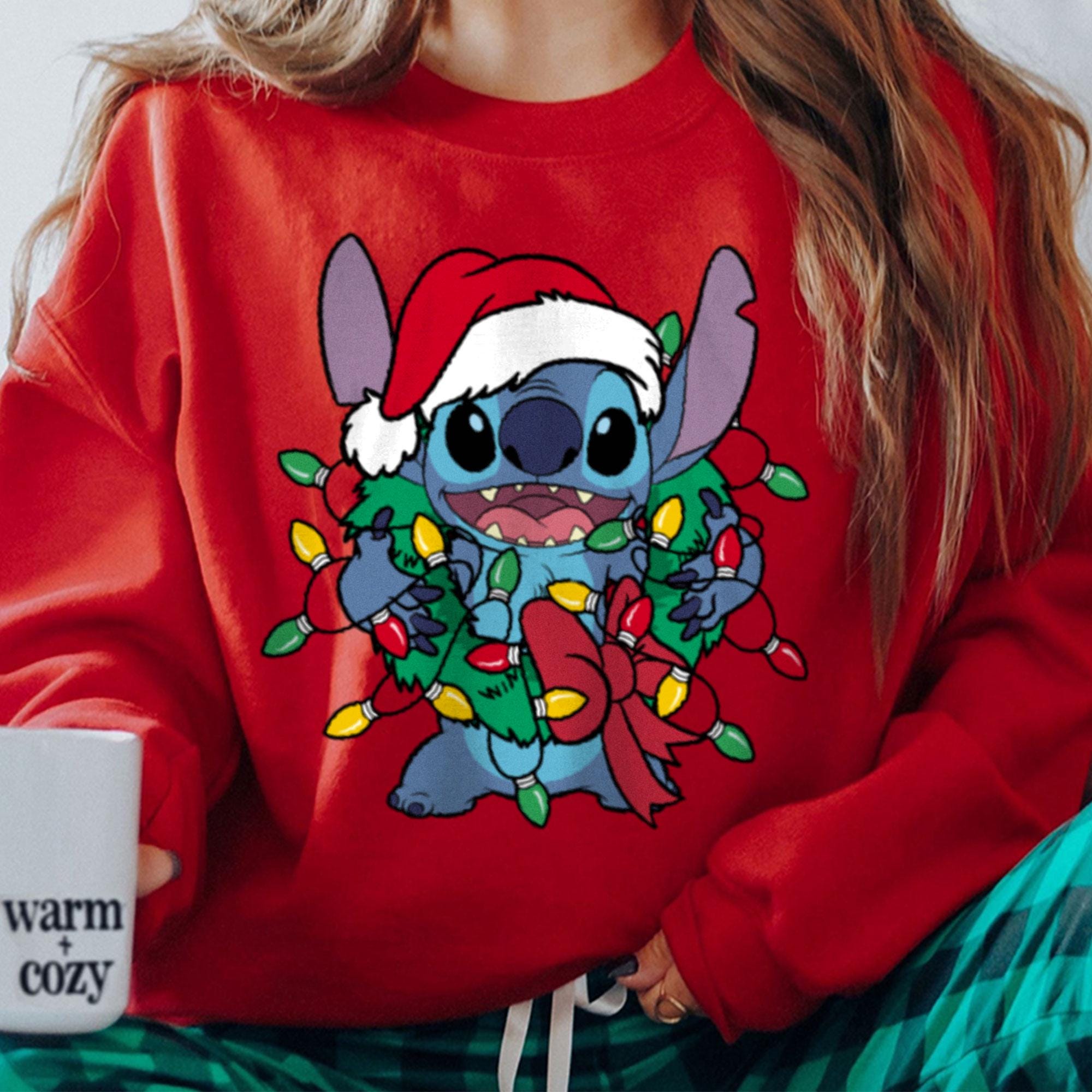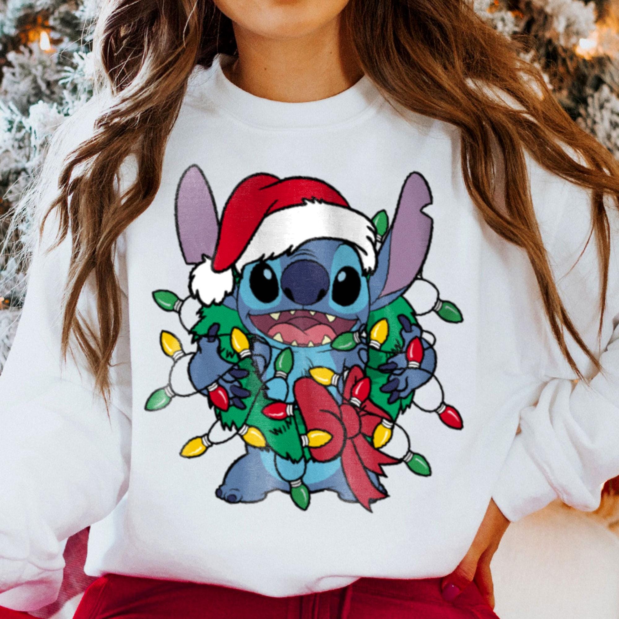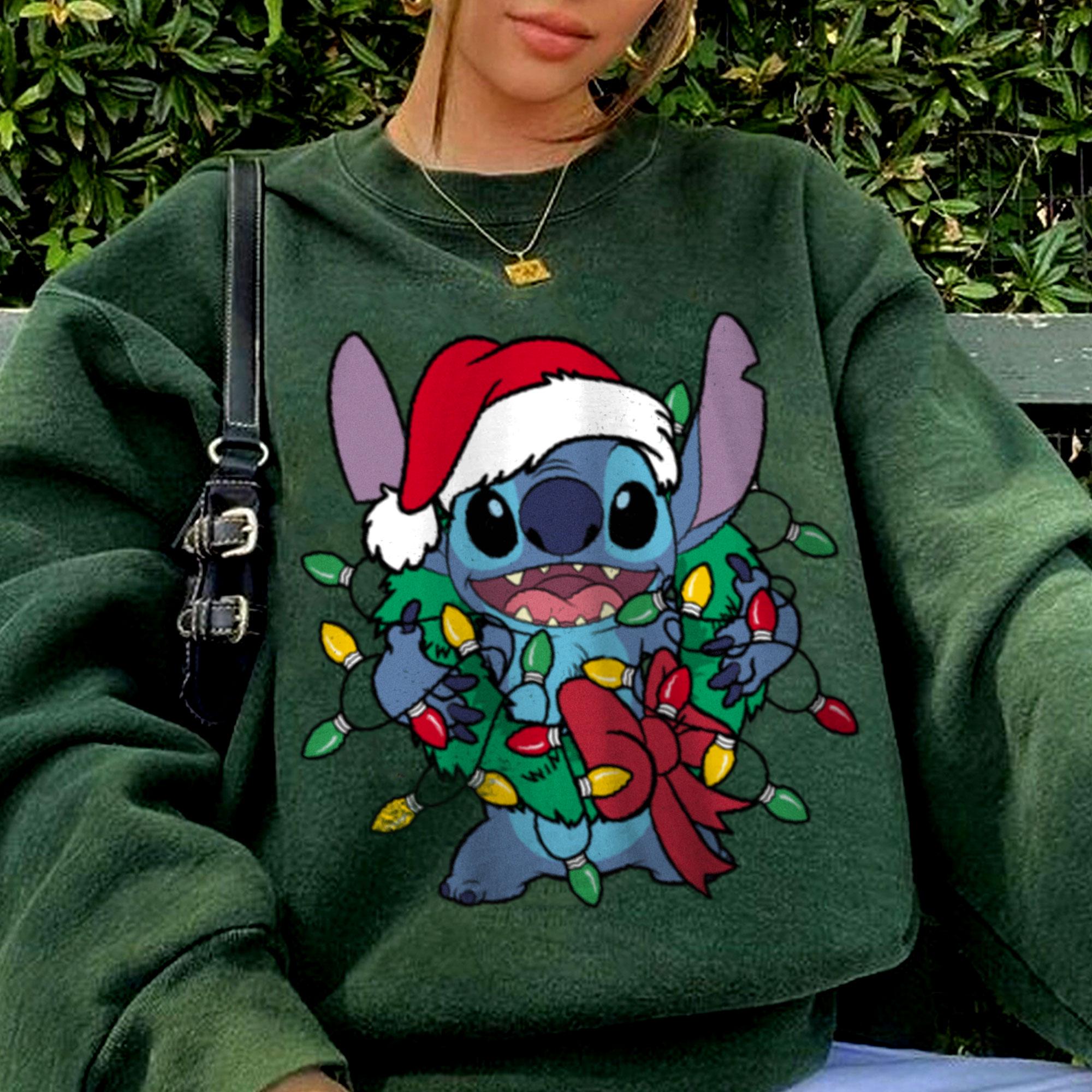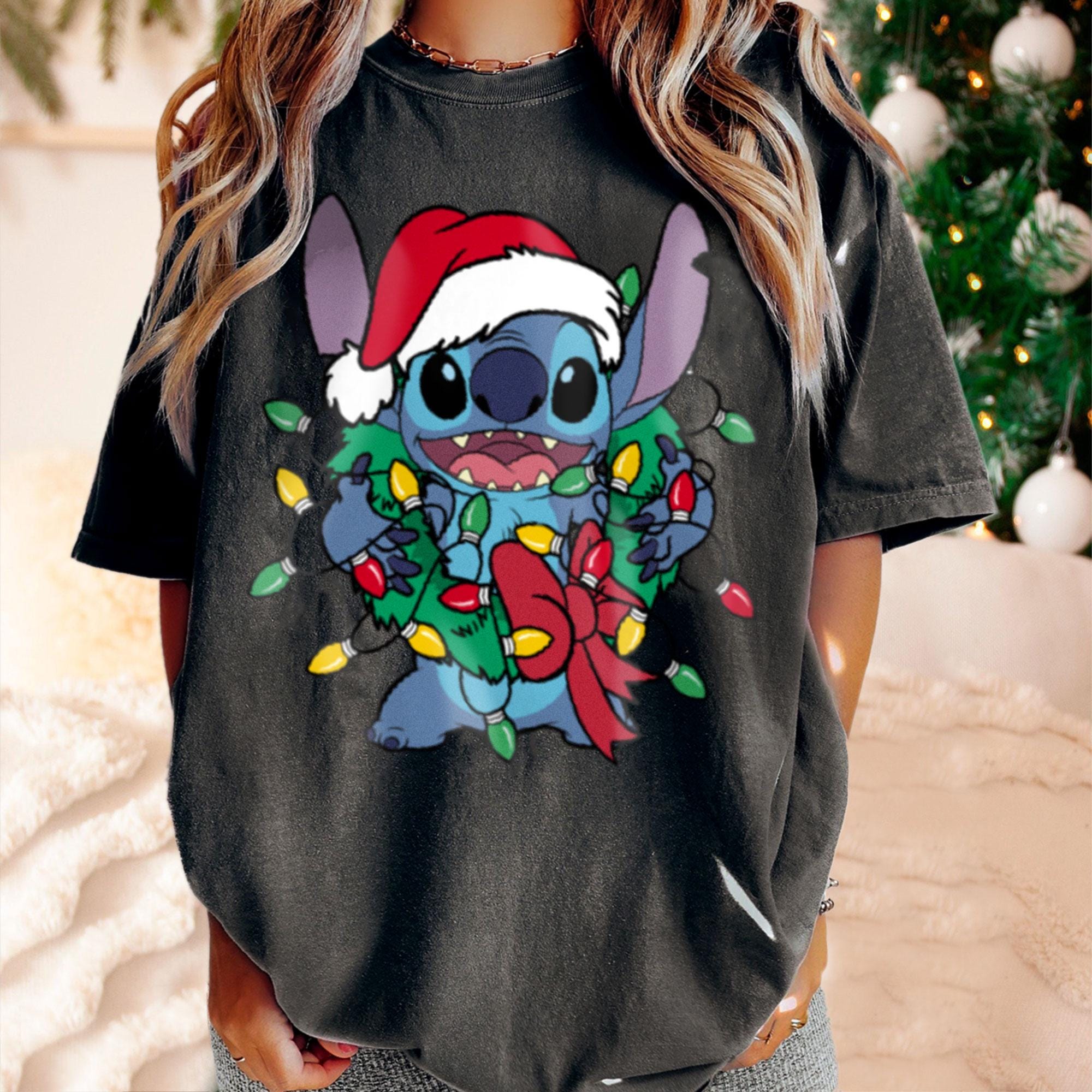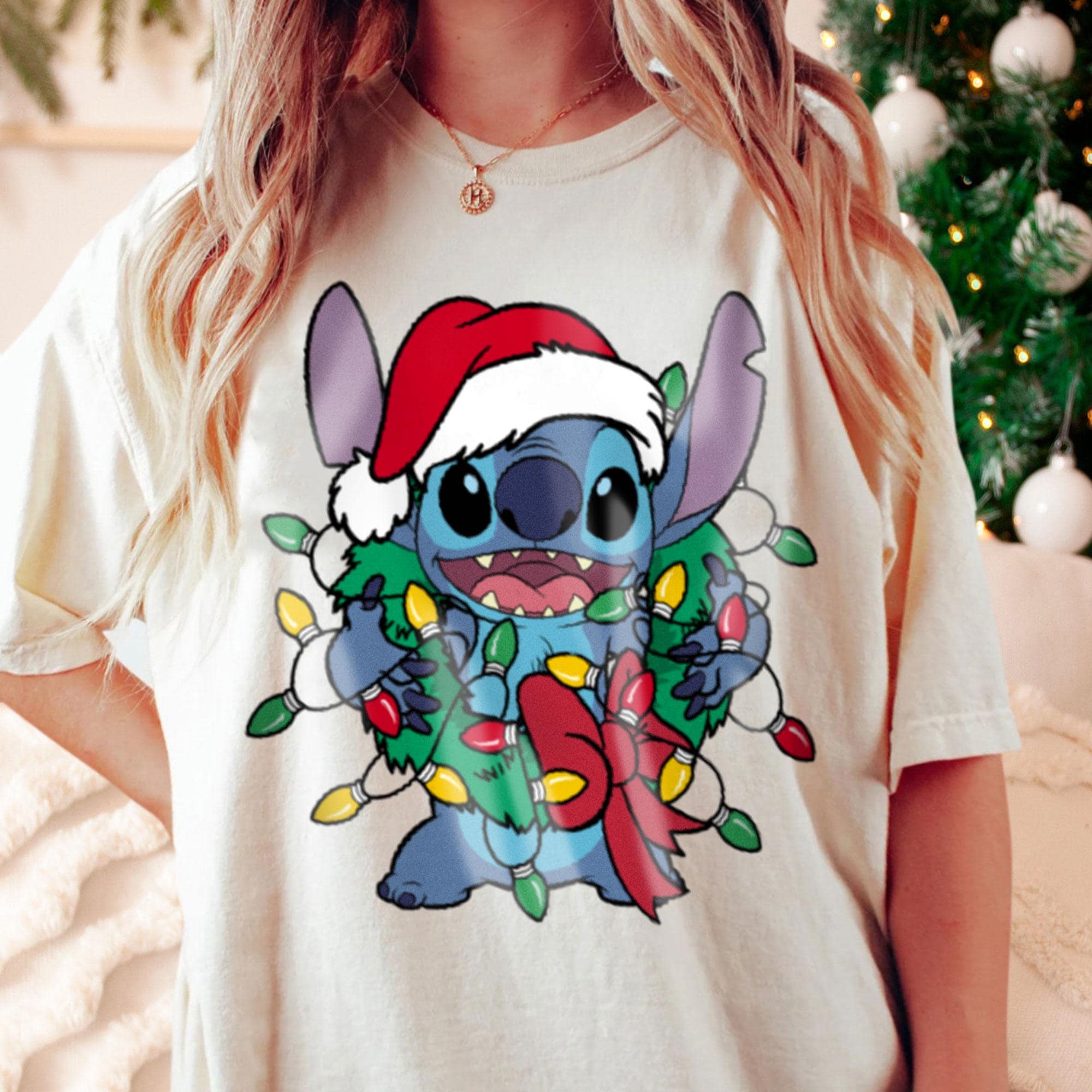 Cute Stitch Hug Wreath Very Merry Christmas Party Shirt, X-mas Retro T-Shirt, Disneyland Vacation Trip Family Gift 2024