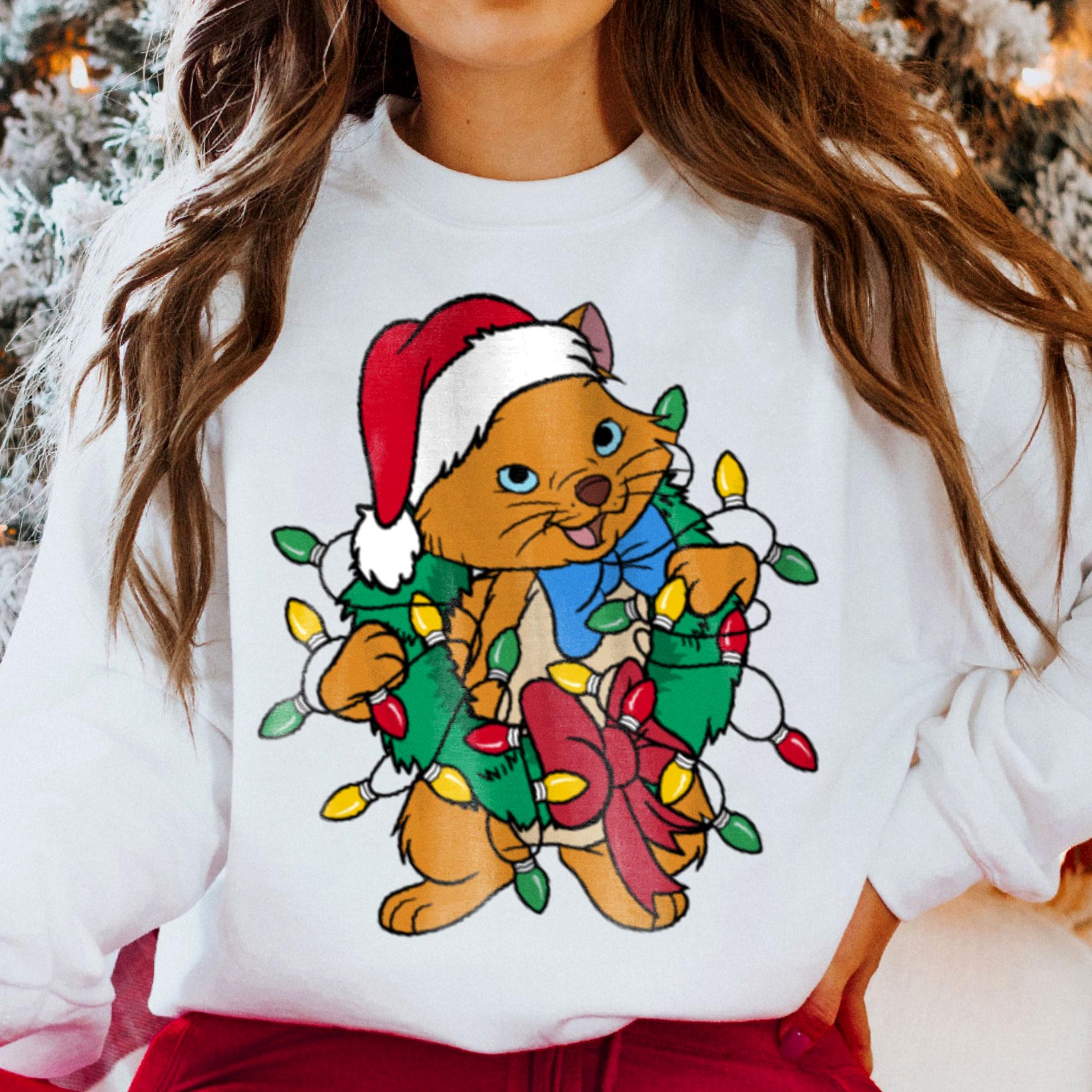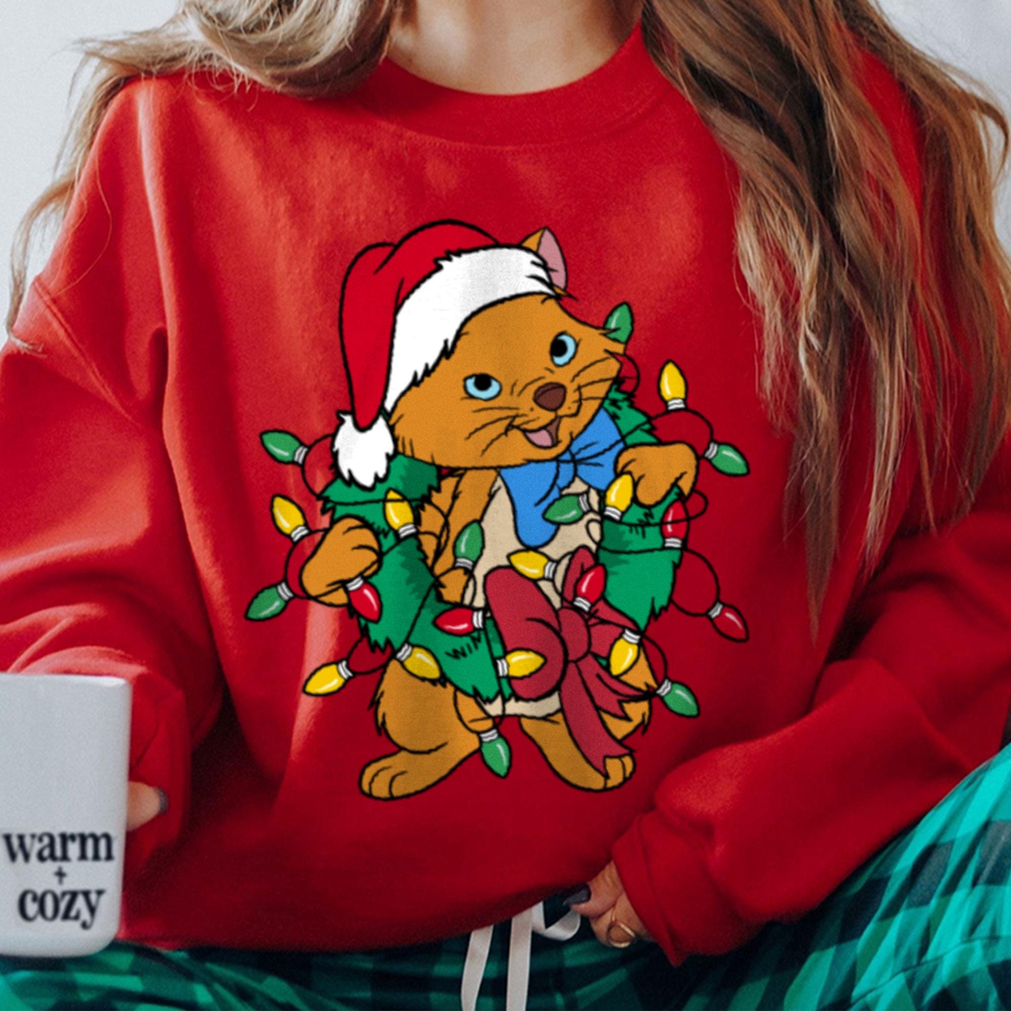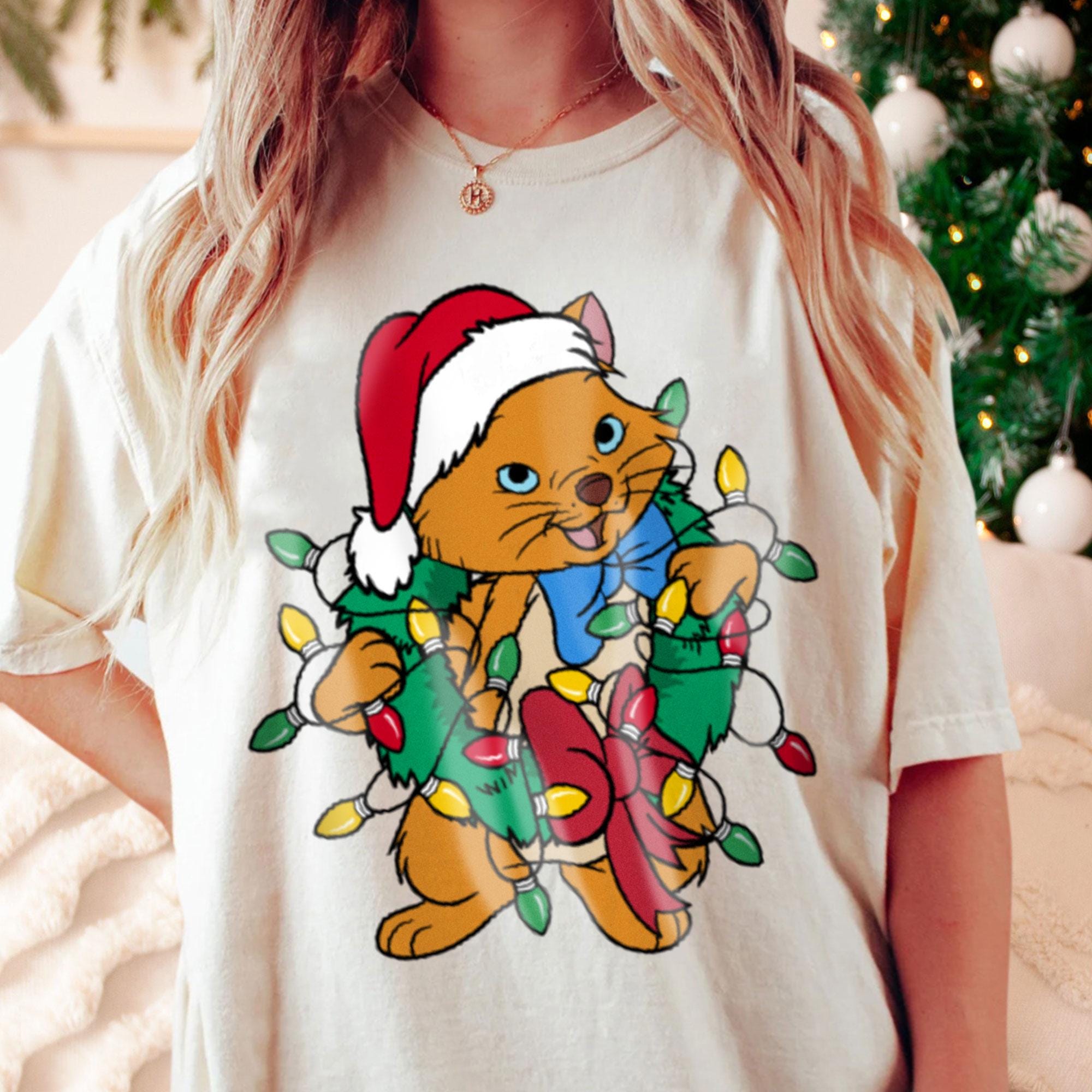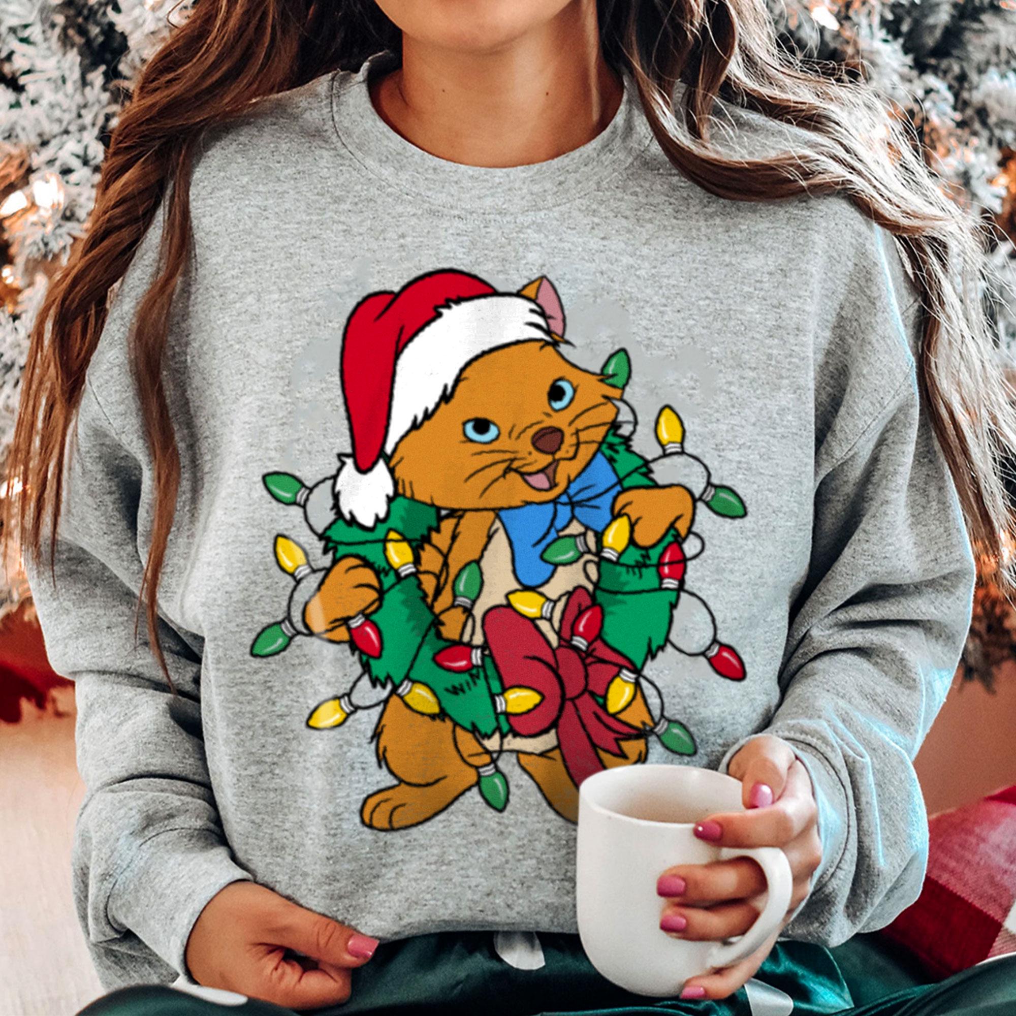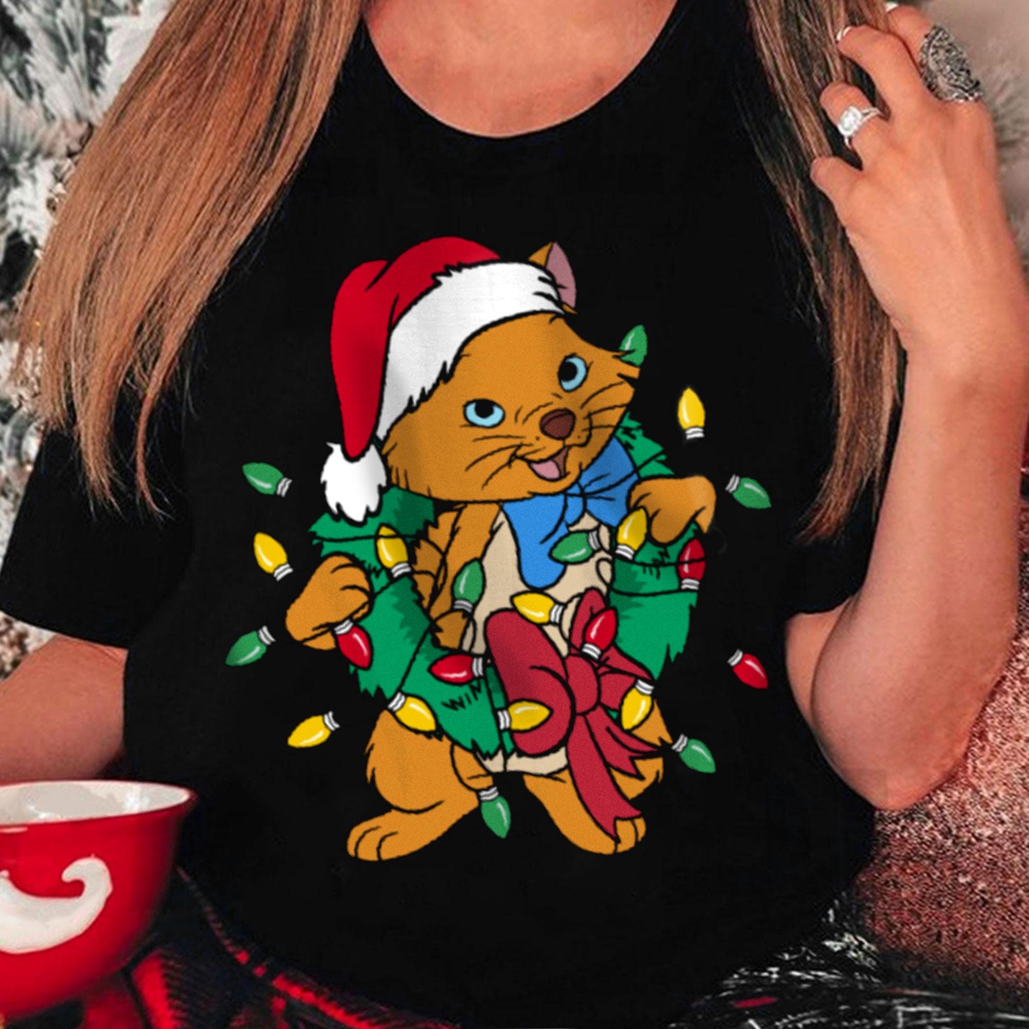 Toulouse Cat The Aristocat Hug Wreath Funny Very Merry Christmas Party Shirt, X-mas Retro T-Shirt, Disneyland Vacation Trip Family Gift 2024