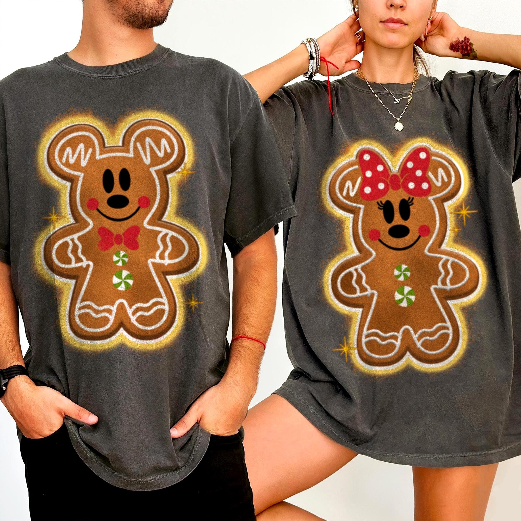 Mickey and Minnie Gingerbread Couple Very Merry Christmas Party Shirt, X-mas Retro Comfort Color T-Shirt, Disneyland Trip Family Gift 2024