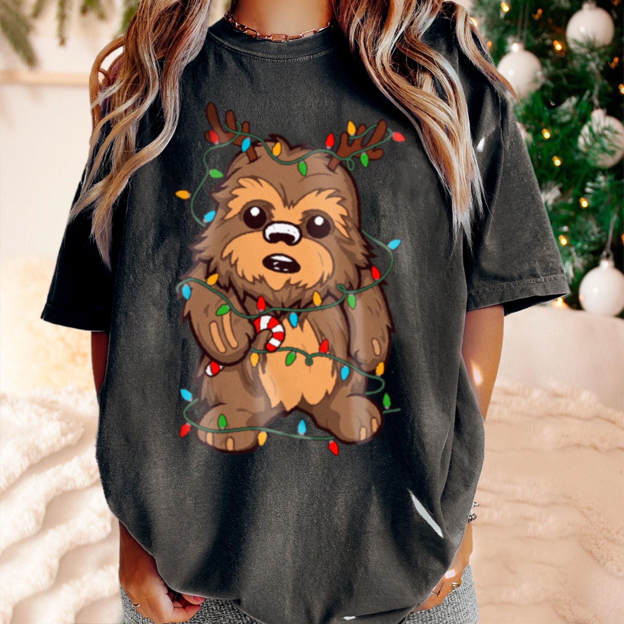 Chewbacca Rolling Xmas Light A Very Merry Party X-mas Retro Comfort Color T-Shirt, Disneyland Vacation Trip Family Gift 2024
