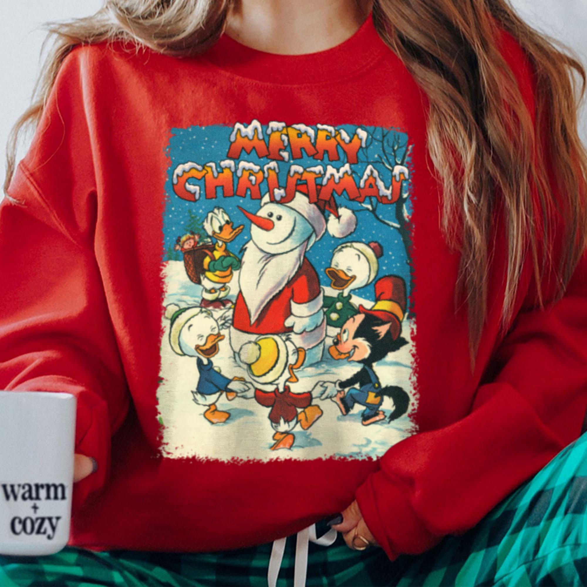 Funny Rocking Around Snowman Huey Dewey Louie, Merry Christmas Party Shirt, X-mas Retro T-Shirt, Disneyland Vacation Trip Family Gift 2024