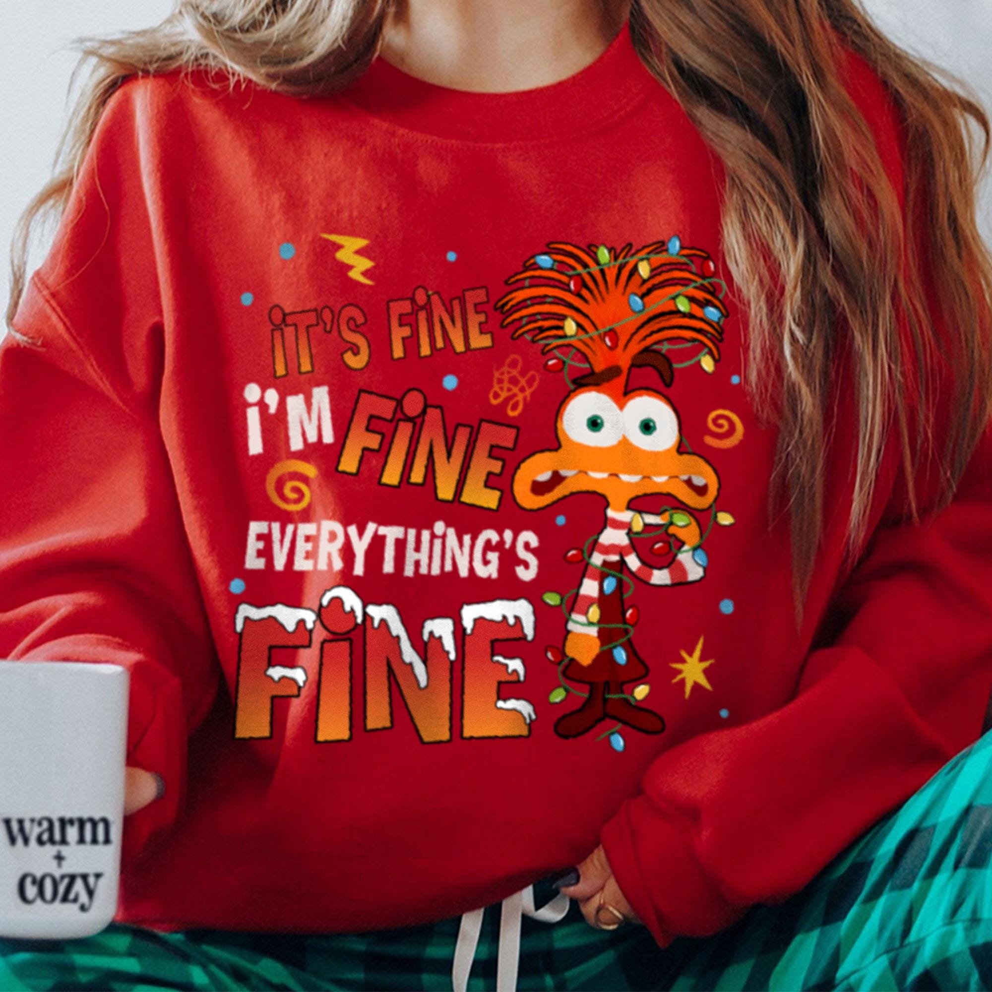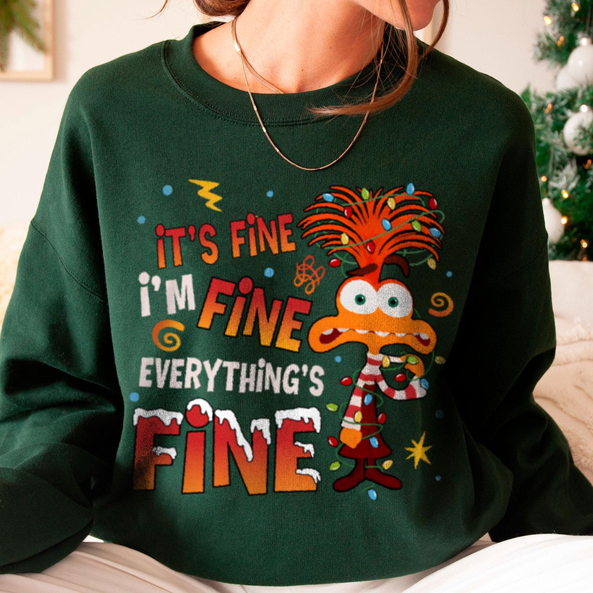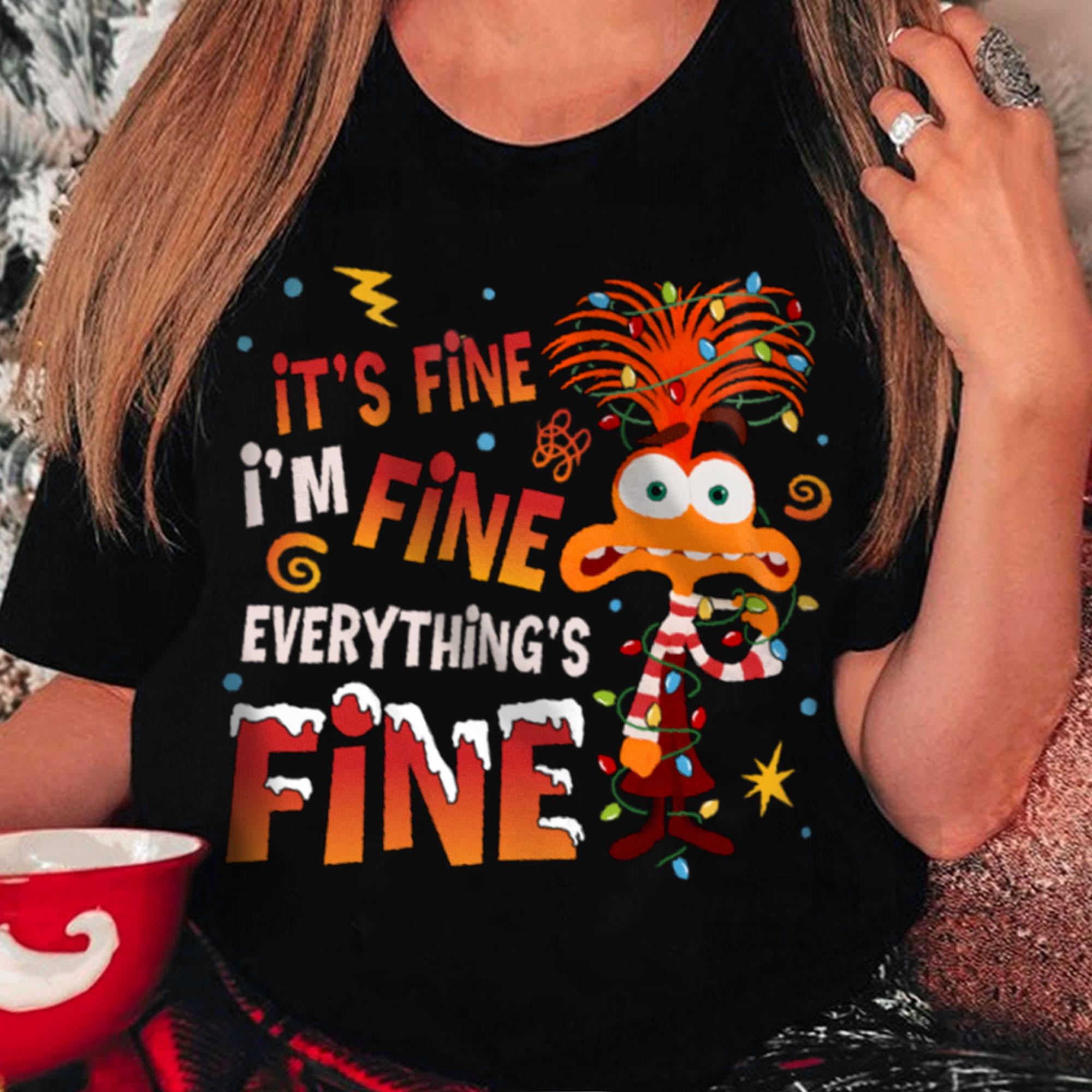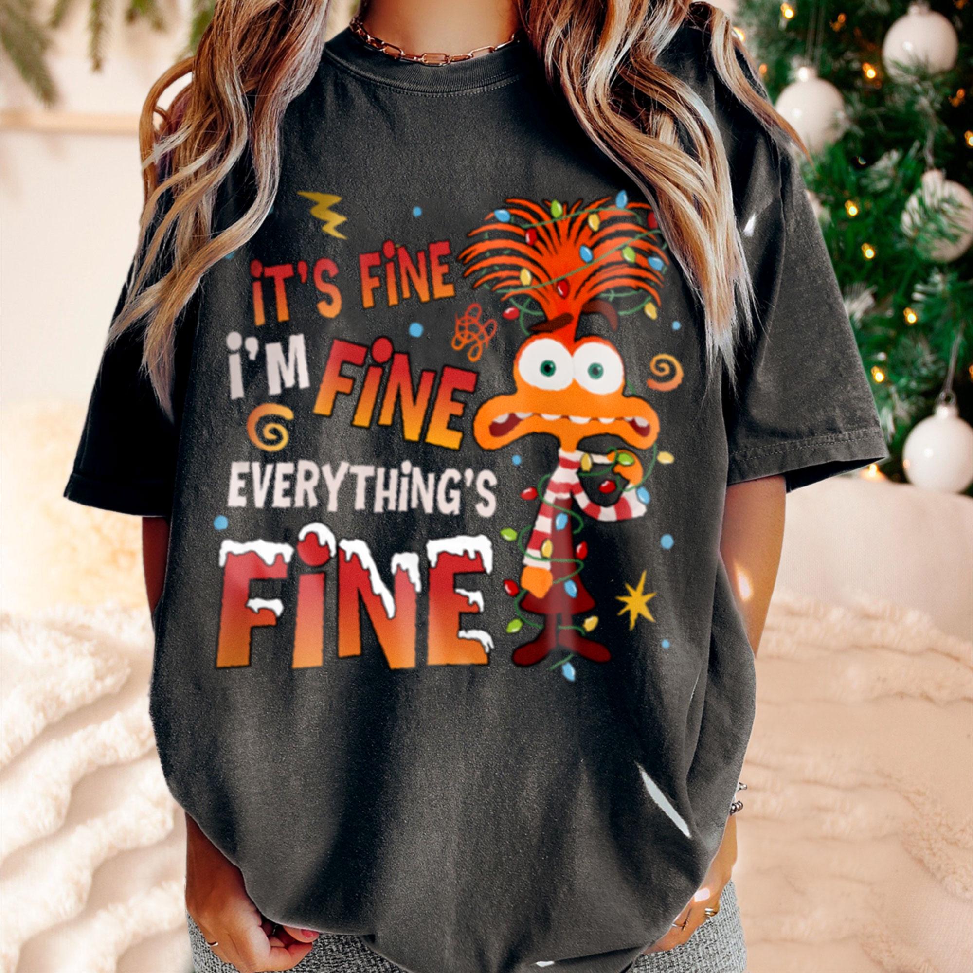 Anxiety Inside Out Rolling Xmas Light It Fine AVery Merry Party X-mas Retro Comfort Color T-Shirt, Disneyland Vacation Trip Family Gift 2024