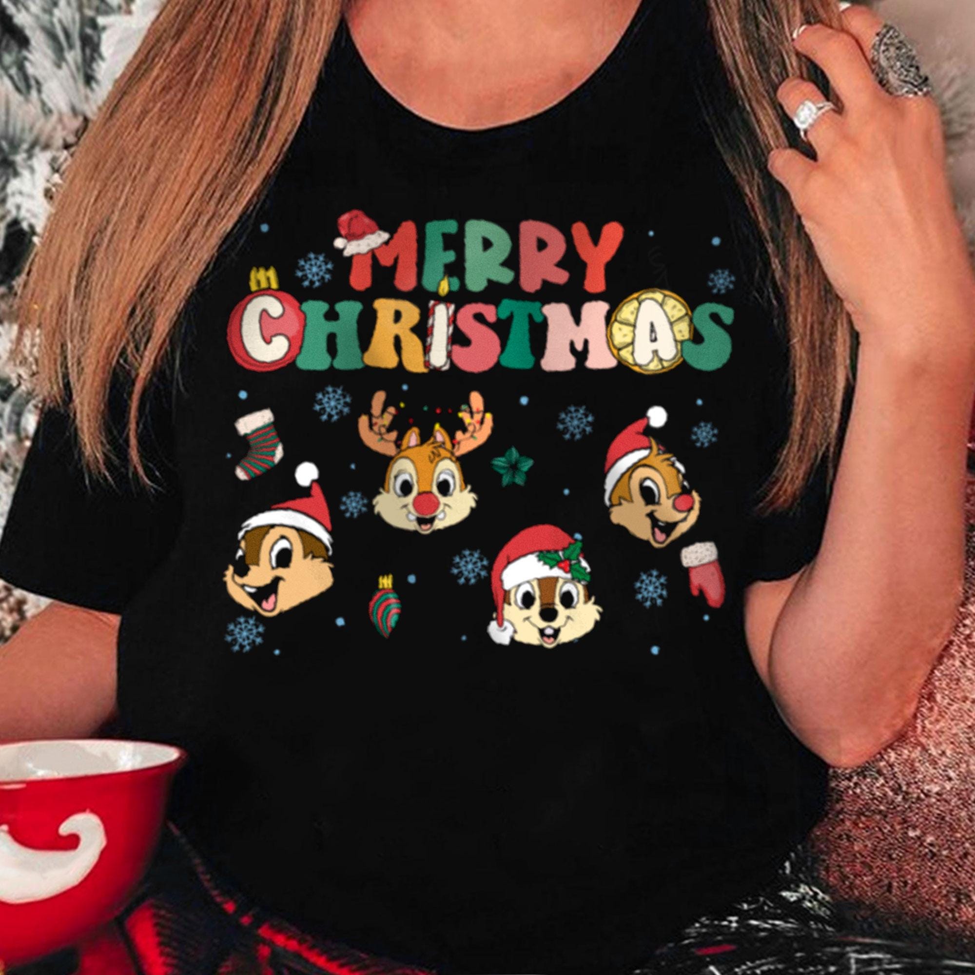 Merry Christmas Chip _n Dale , X-mas Retro T-Shirt, Disneyland Vacation Trip Family Gift 2024