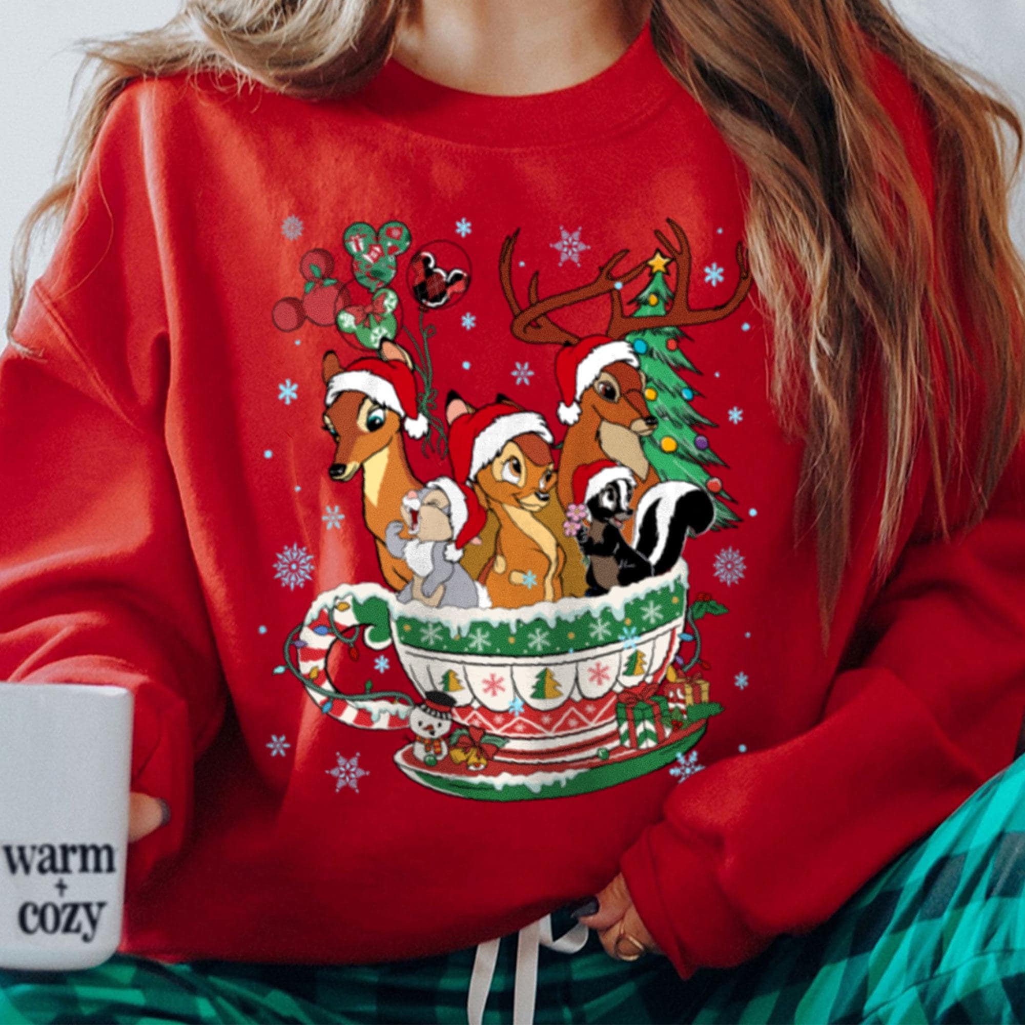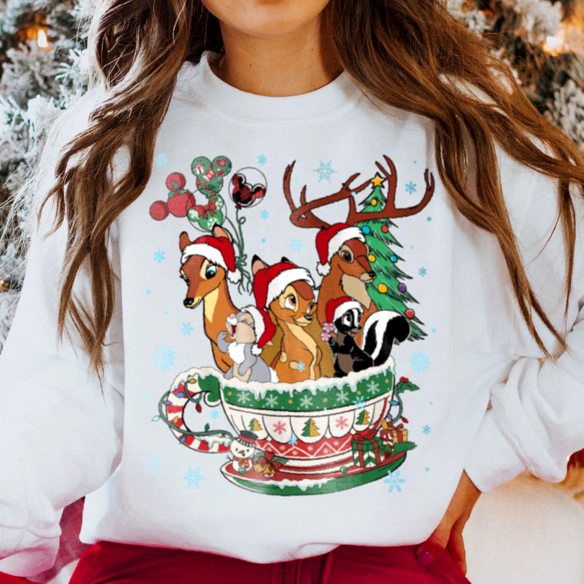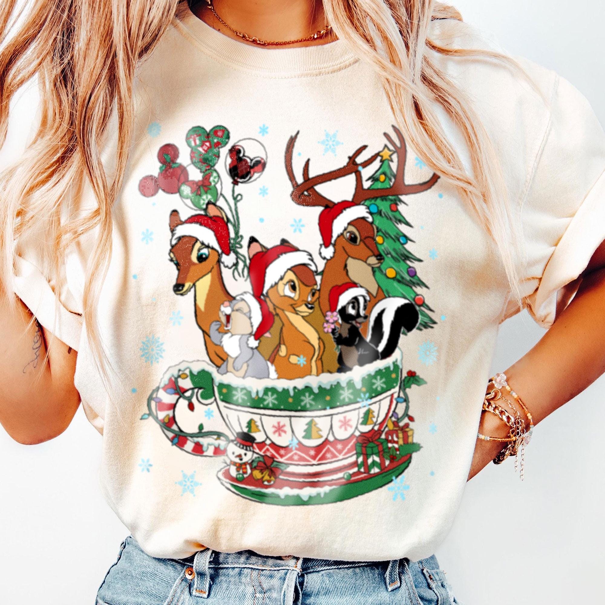 Bambi Teacup Christmas A Very Merry Party X-mas Retro Comfort Color T-Shirt, Disneyland Vacation Trip Family Gift 2024