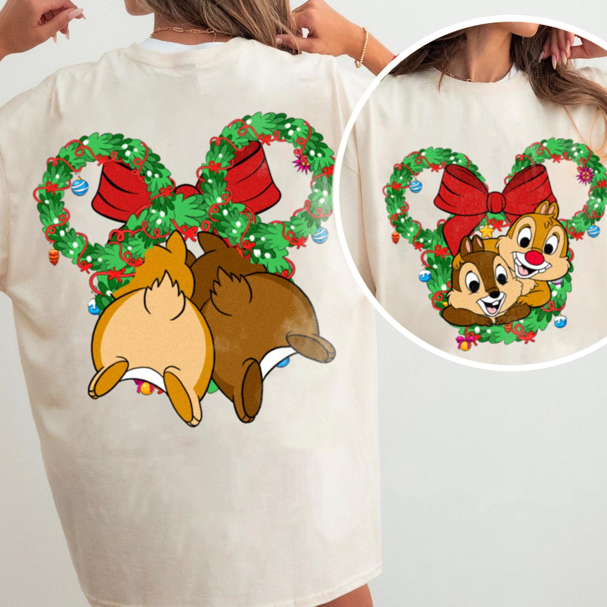 Chip and Dale Butt Crawl Over Through Xmas Wreath, Very Merry Christmas Party Shirt, X-mas Retro T-Shirt, Disneyland Trip Family Gift 2024