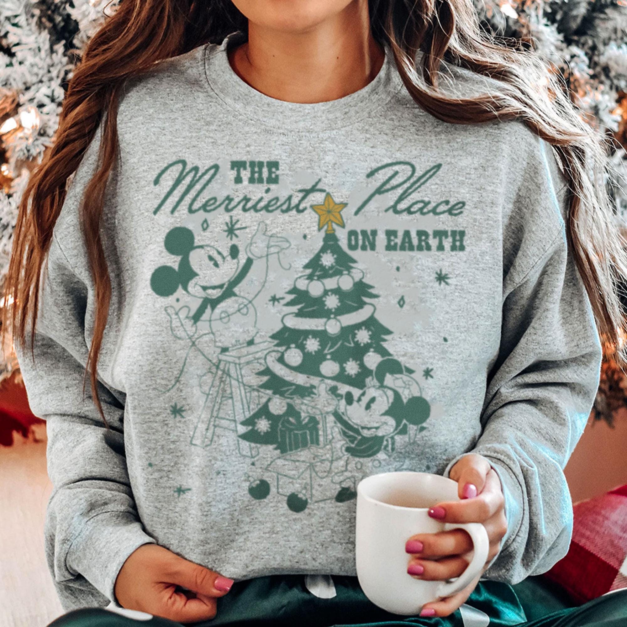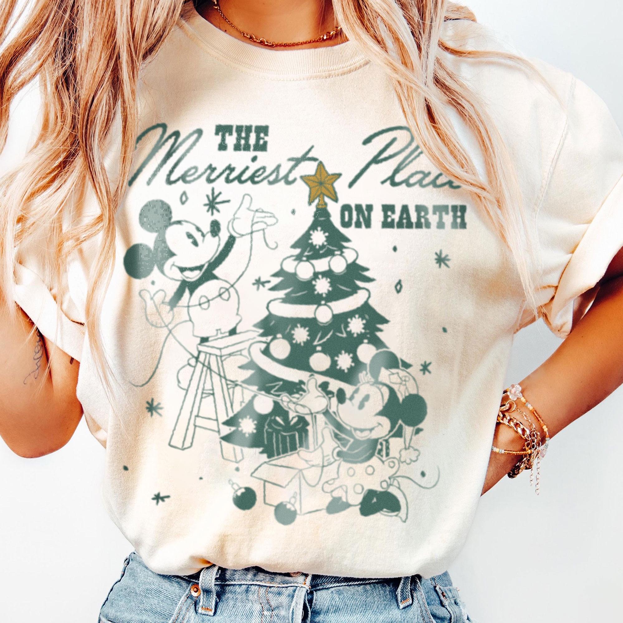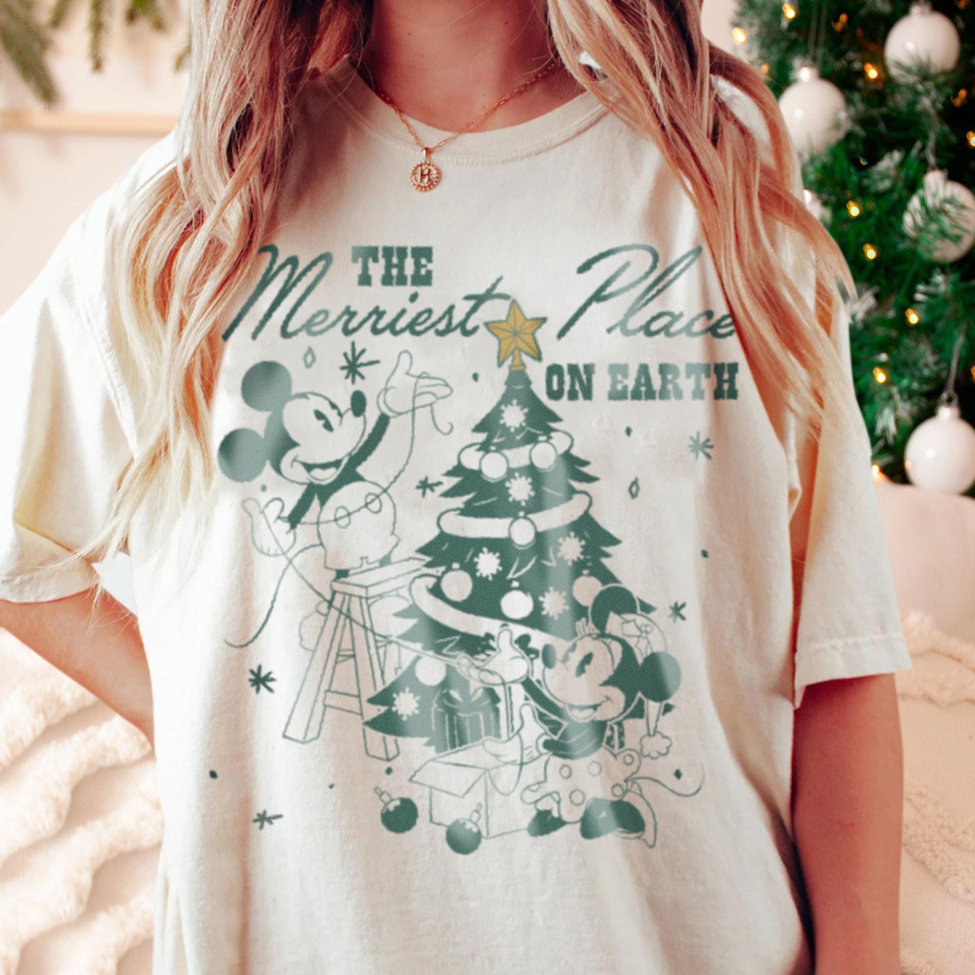 The Merriest Place On Earth A Very Merry Christmas Party Shirt, X-mas Retro Comfort Color T-Shirt, Disneyland Trip Family Gift 2024