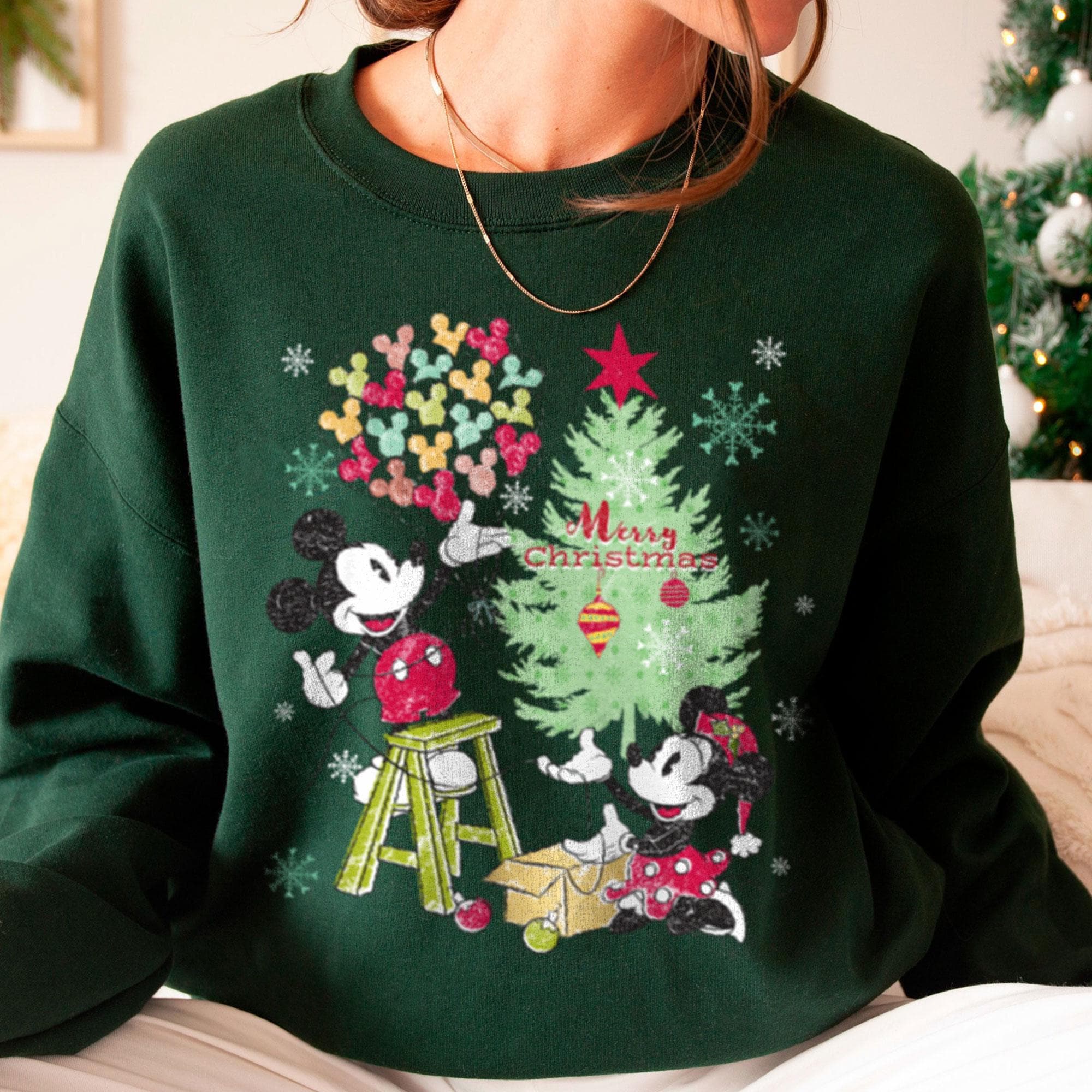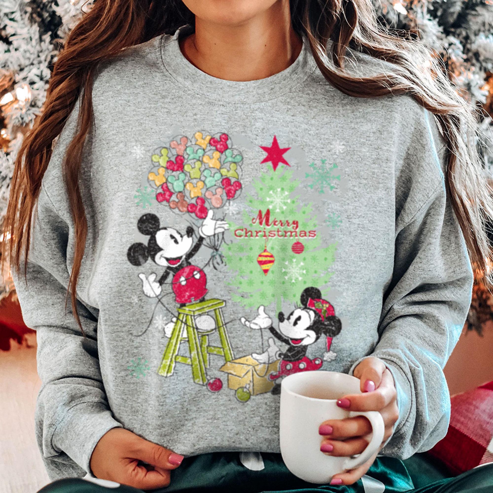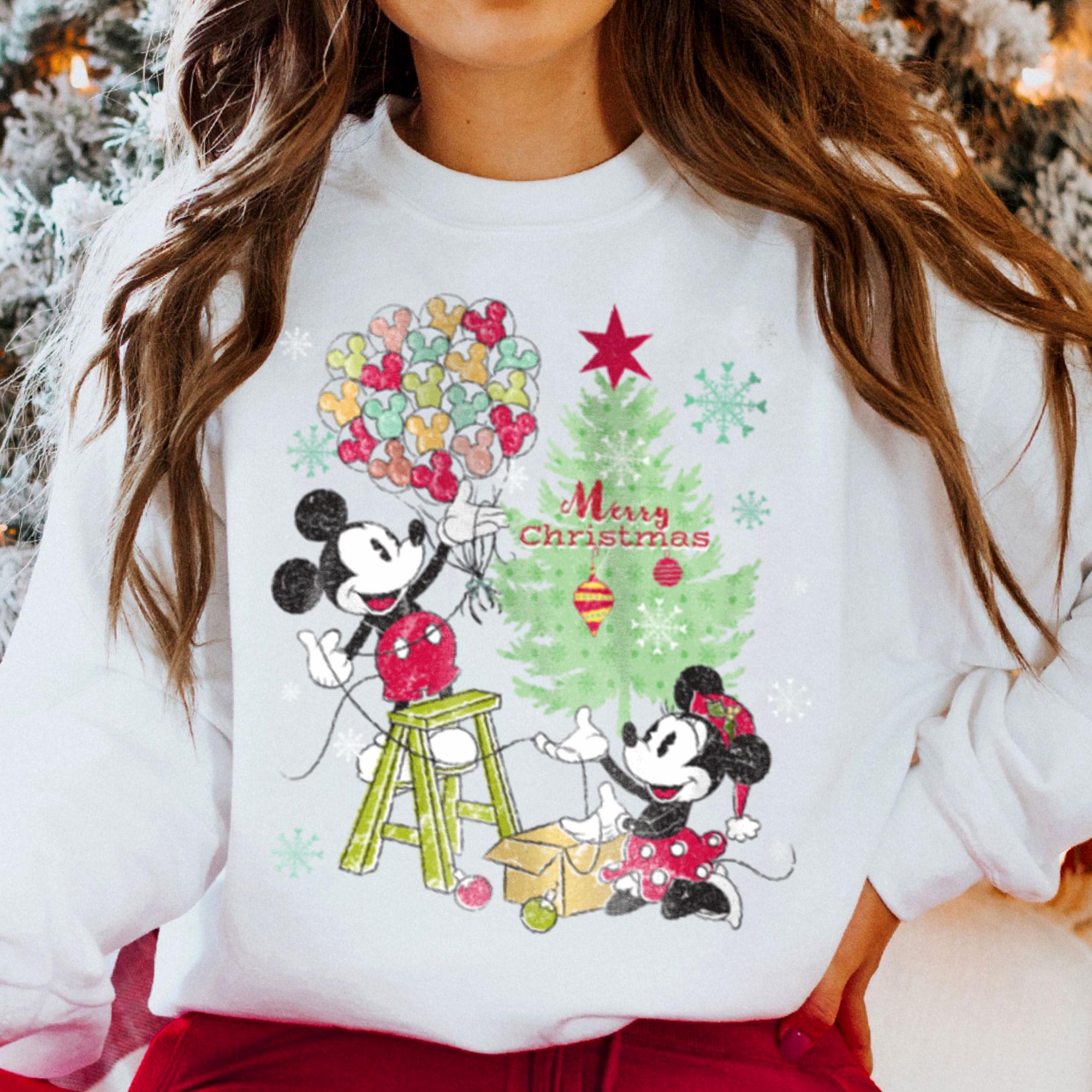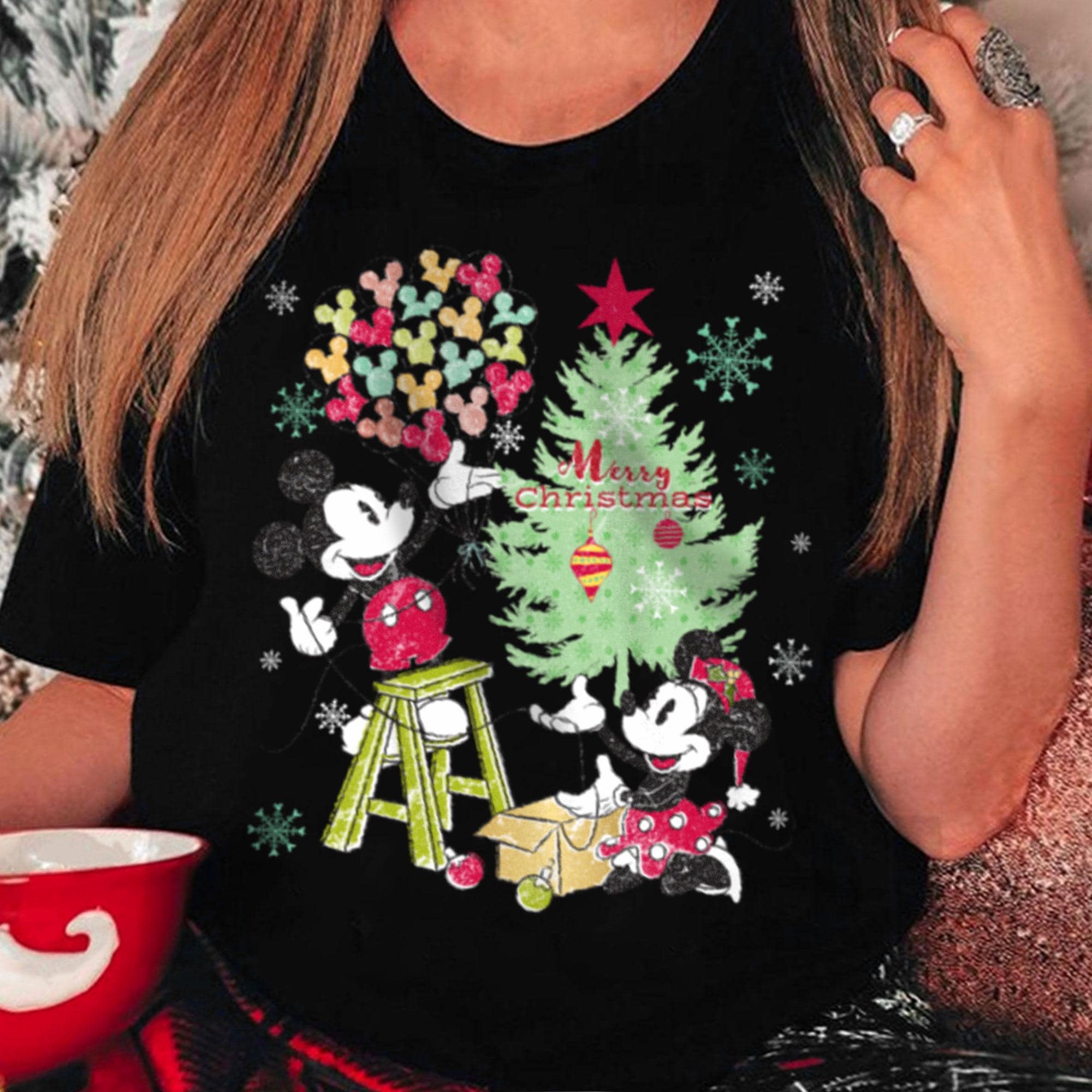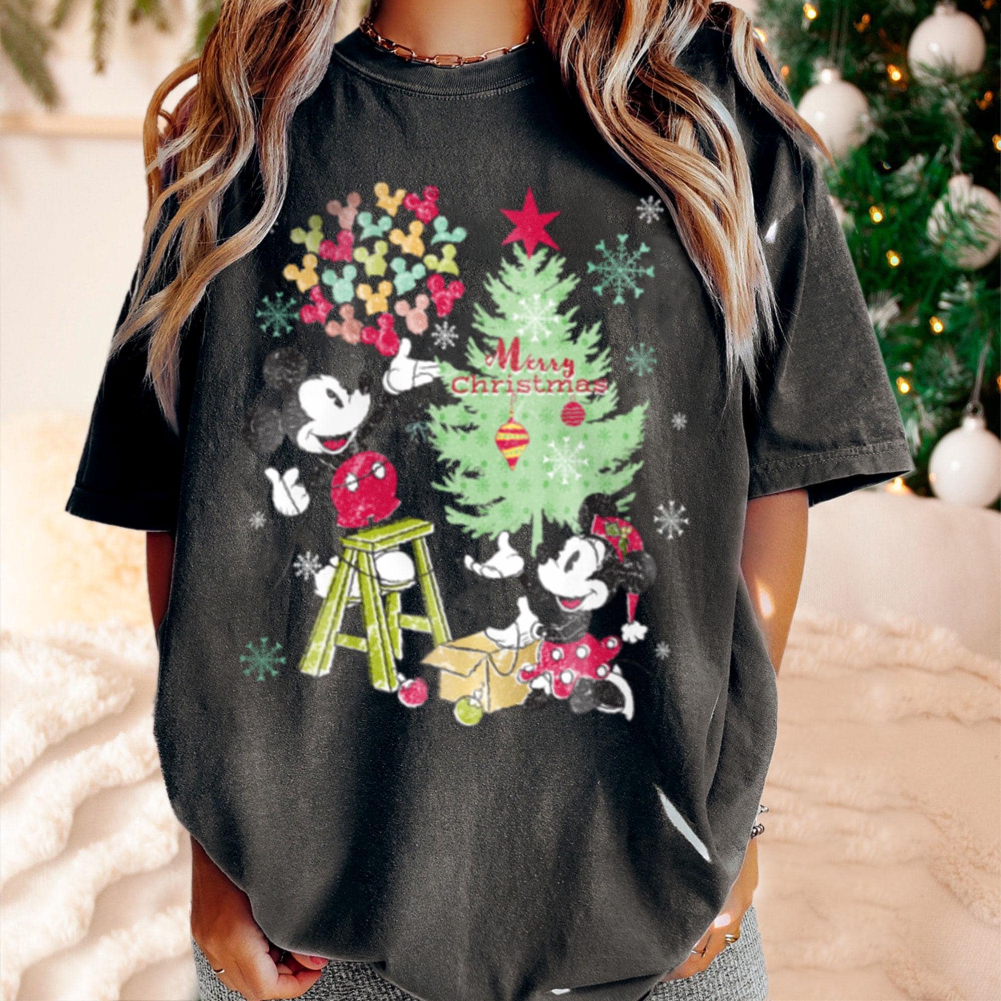 Mickey & Minnie Christmas Tree Decorating A Very Merry Party X-mas Retro Comfort Color T-Shirt, Disneyland Vacation Trip Family Gift 2024