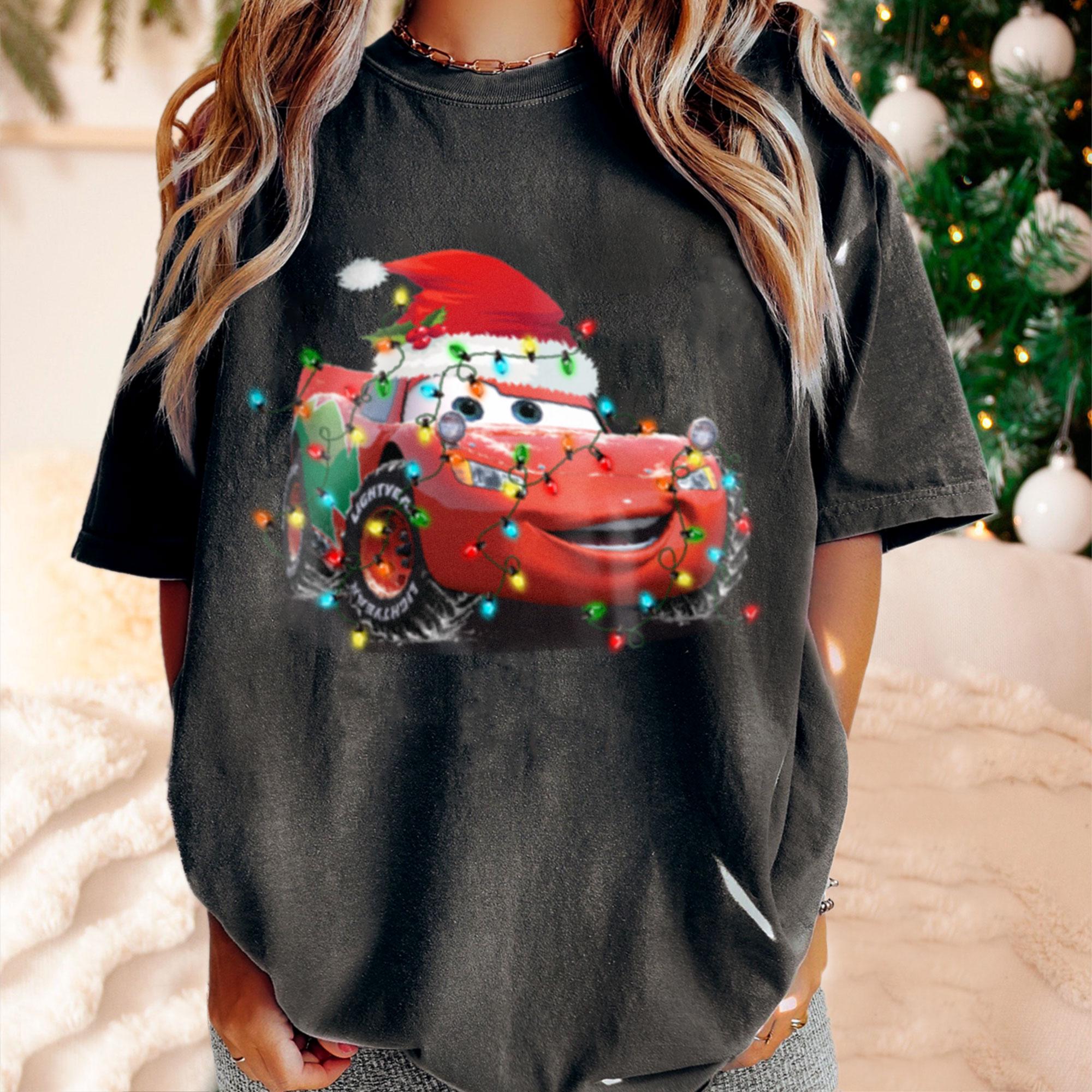 Cars Lightning Mc Queen Xmas Light A Very Merry Party X-mas Retro Comfort Color T-Shirt, Disneyland Vacation Trip Family Gift 2024