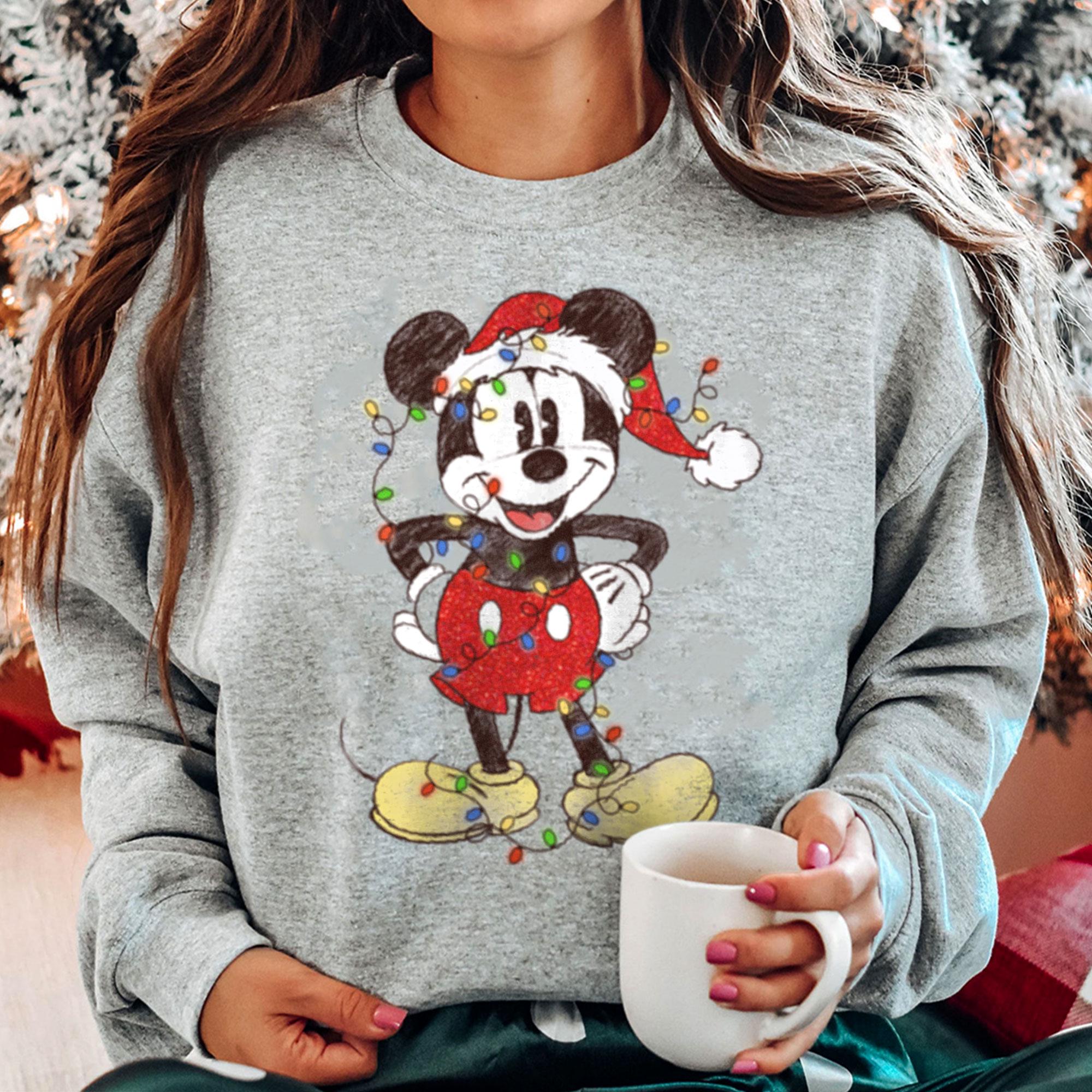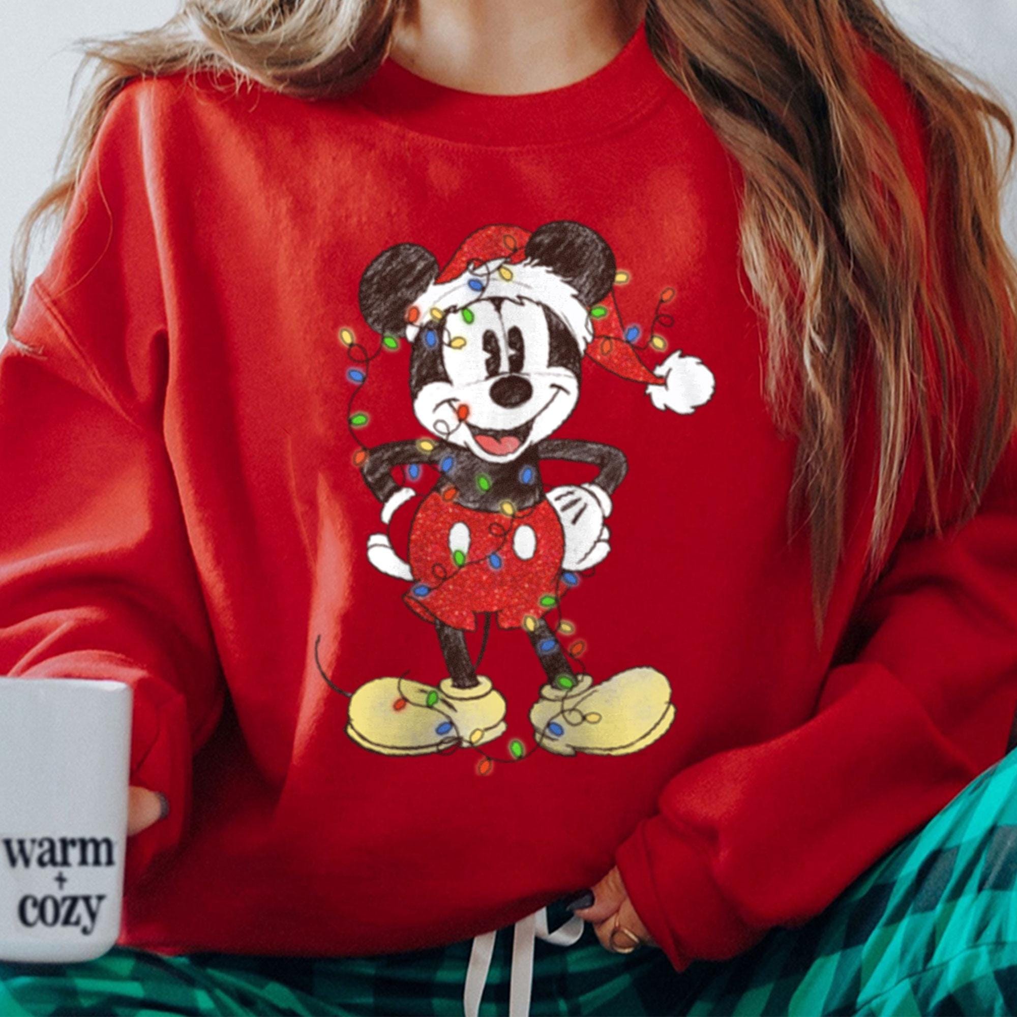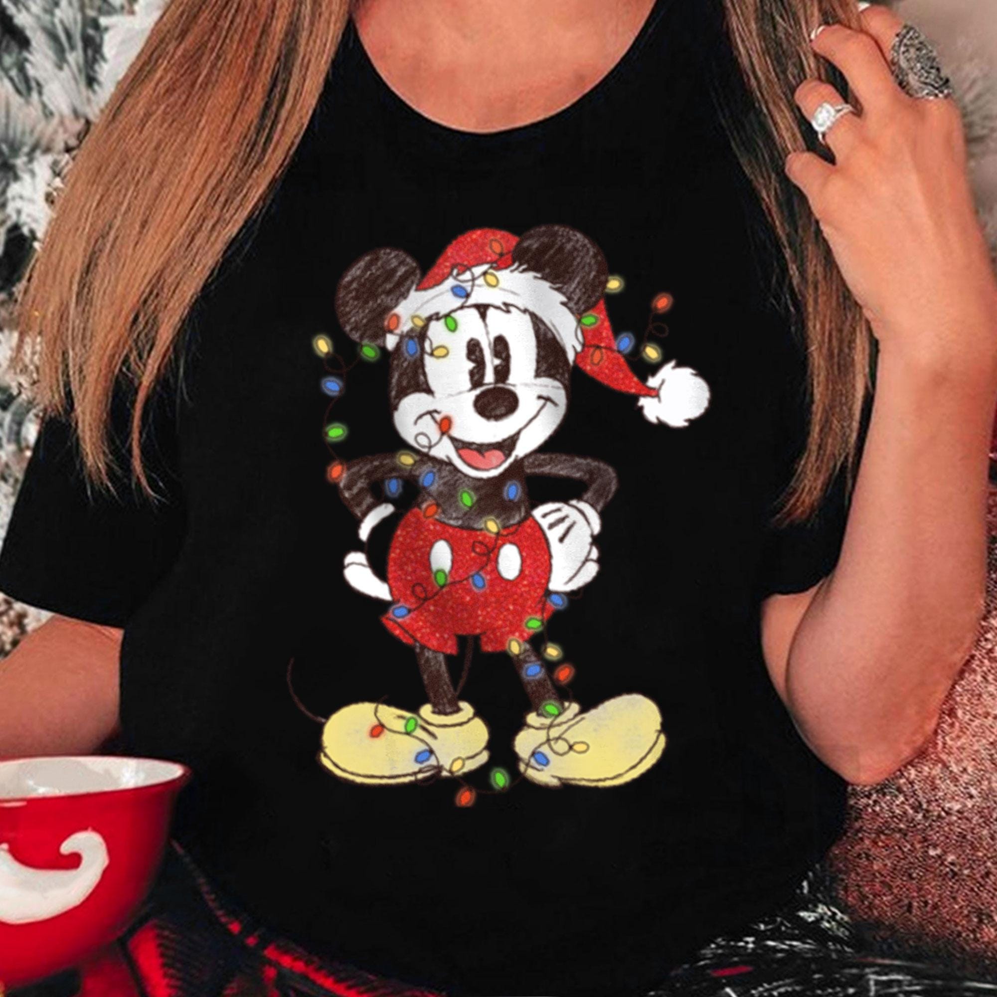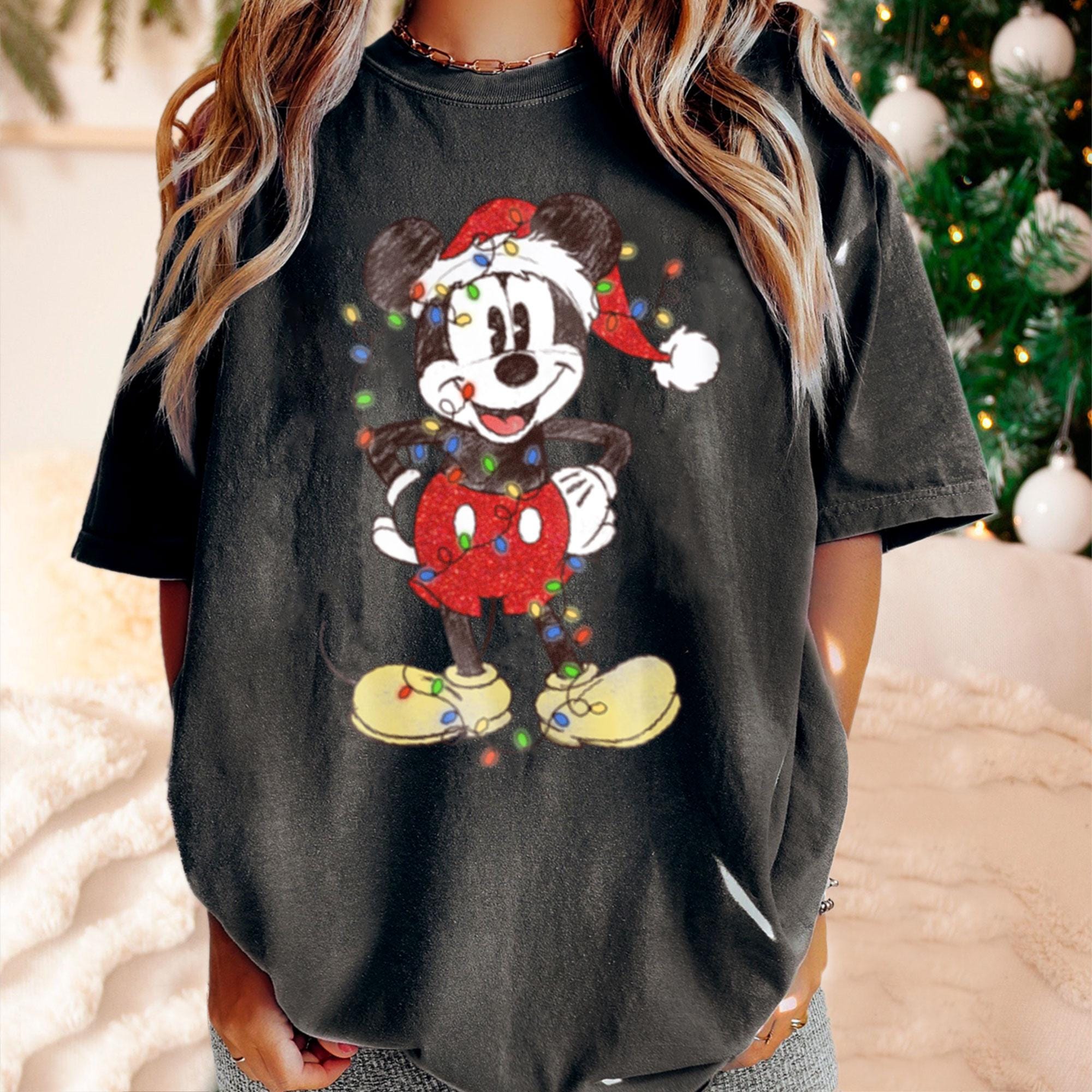 Mickey Santa Xmas Light A Merry Party X-mas Retro Comfort Color T-Shirt, Disneyland Vacation Trip Family Gift 2024