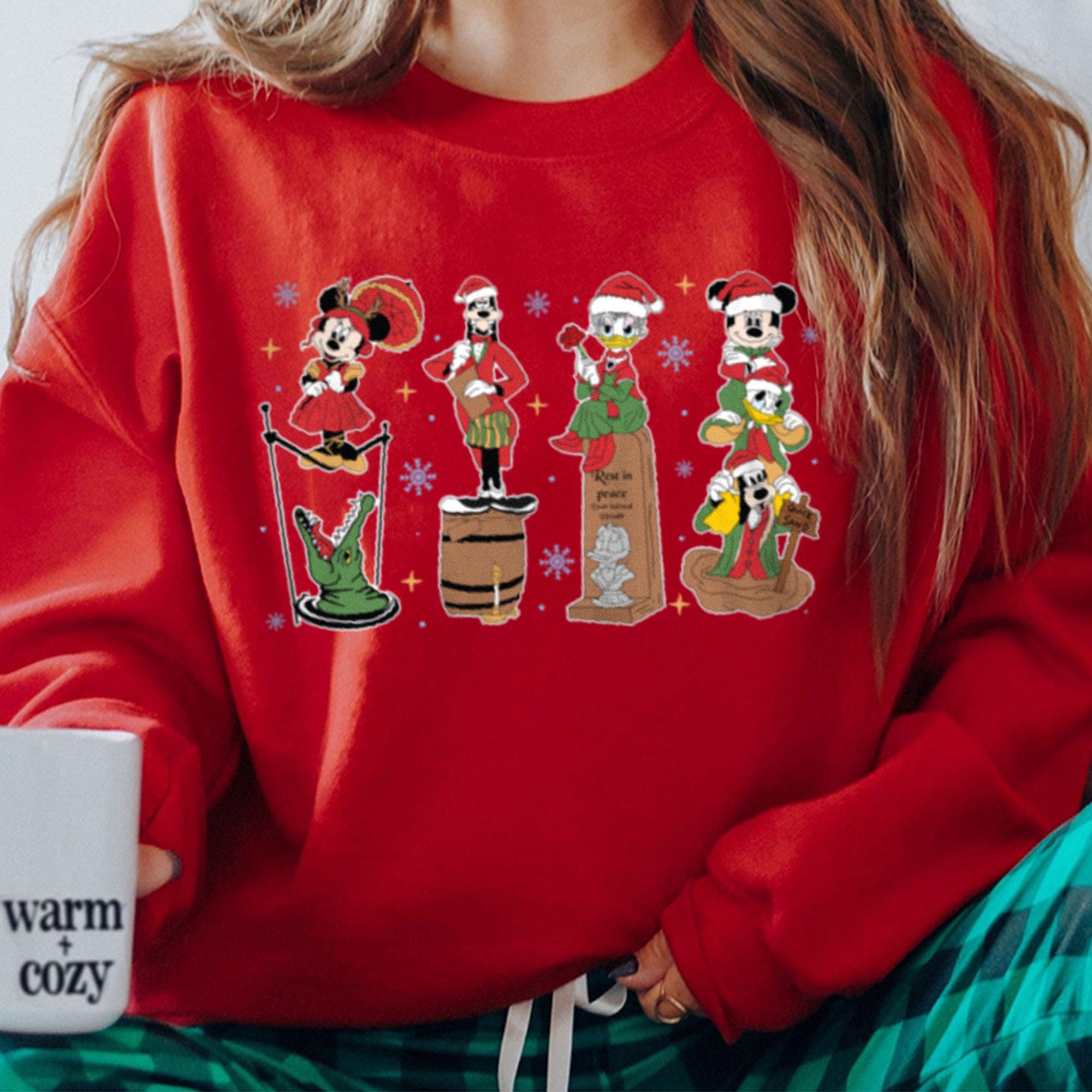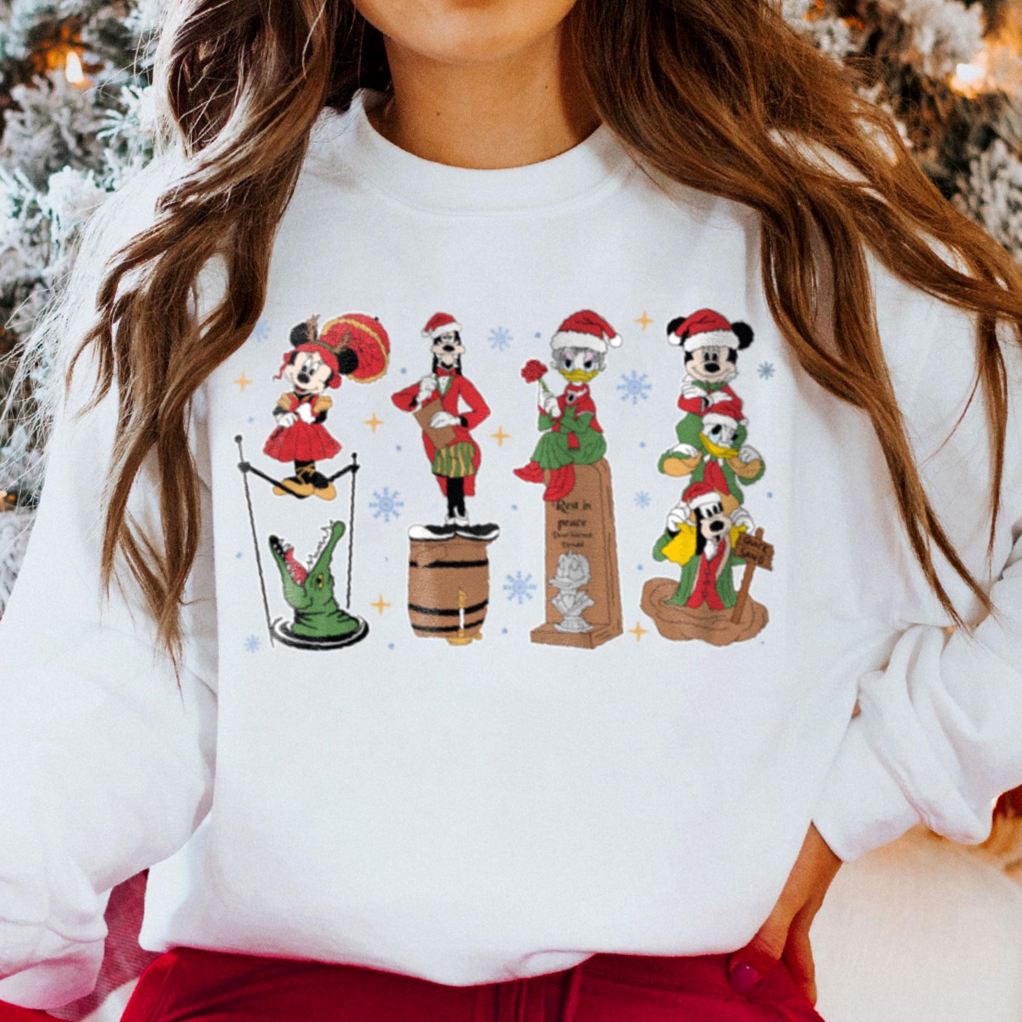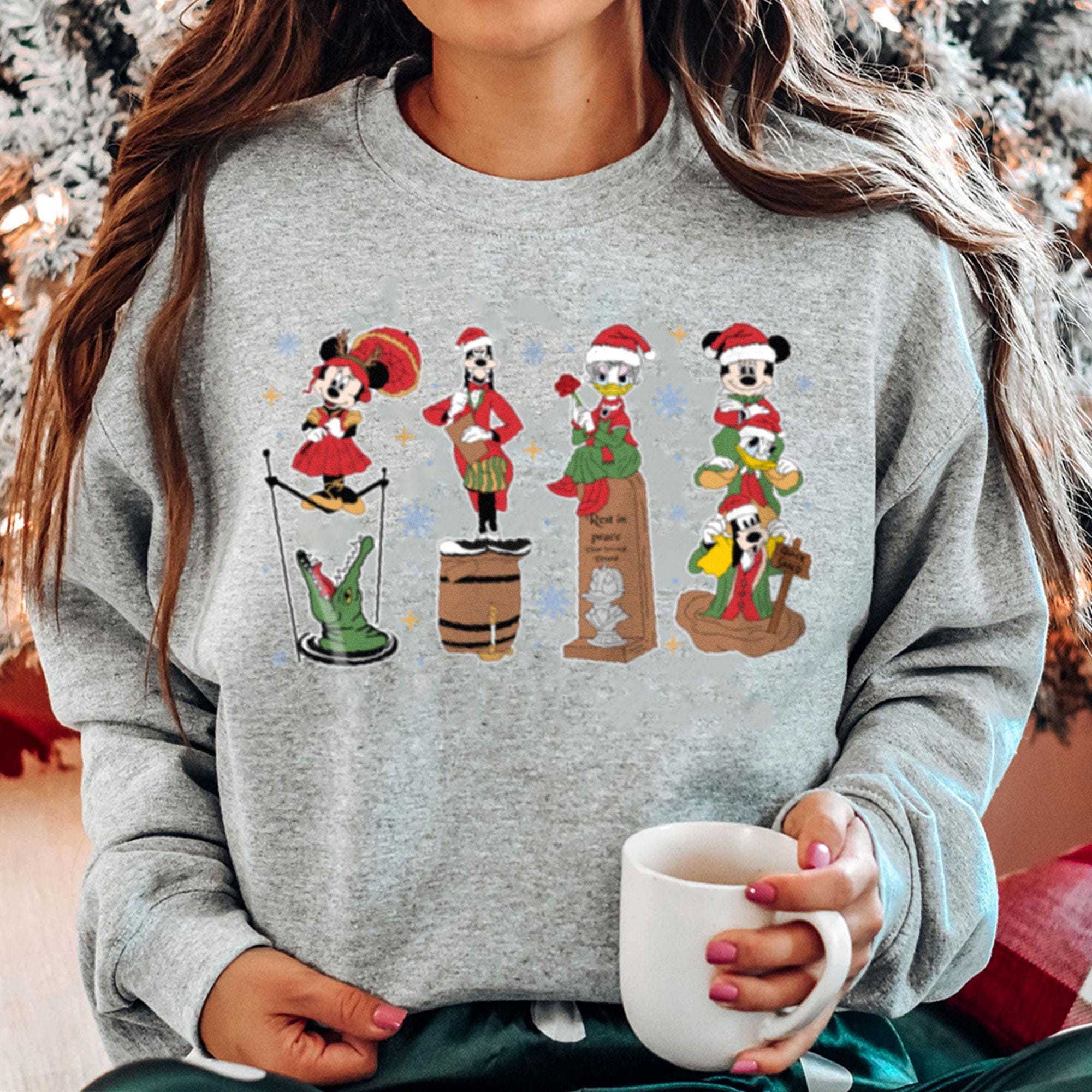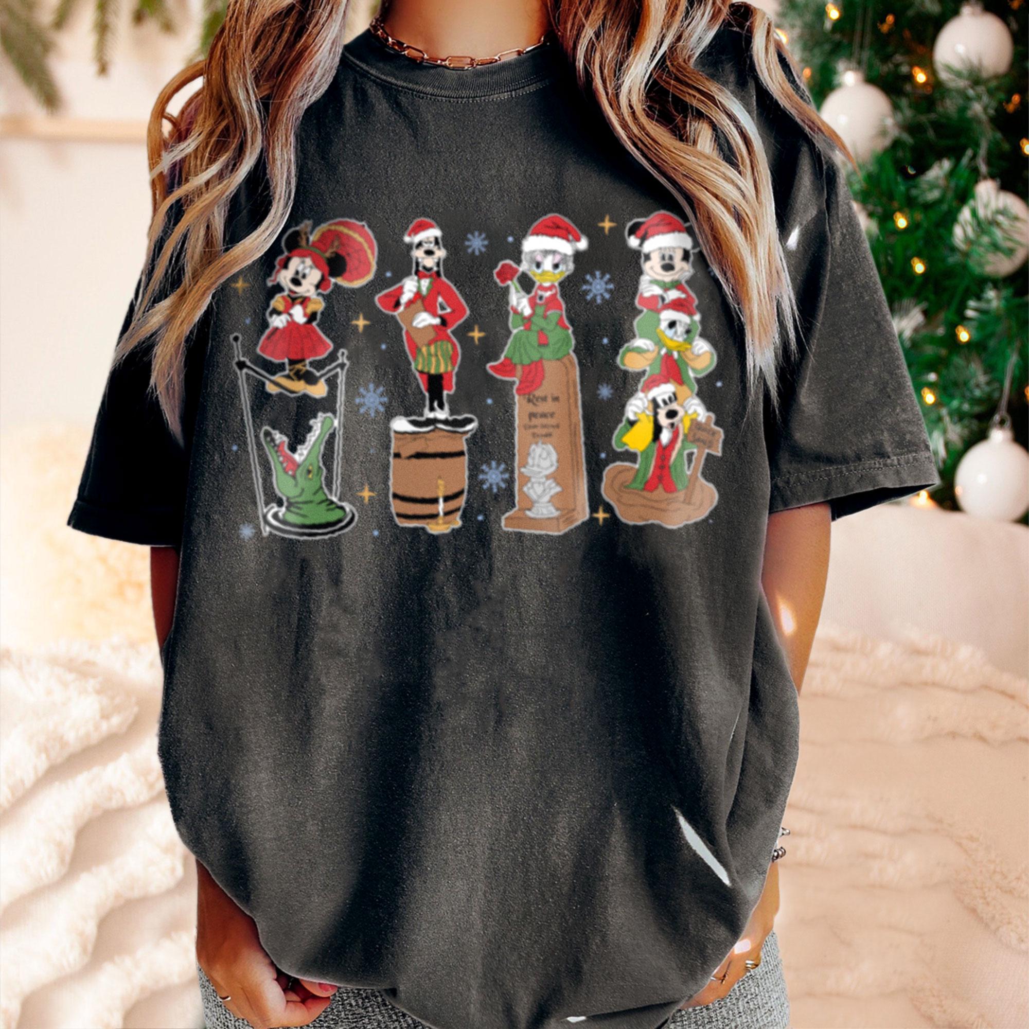 Mickey Minnie Pluto Donald Haunted Tea Very Merry Christmas Party Shirt, X-mas Retro Comfort Color T-Shirt, Disneyland Trip Family Gift 2024