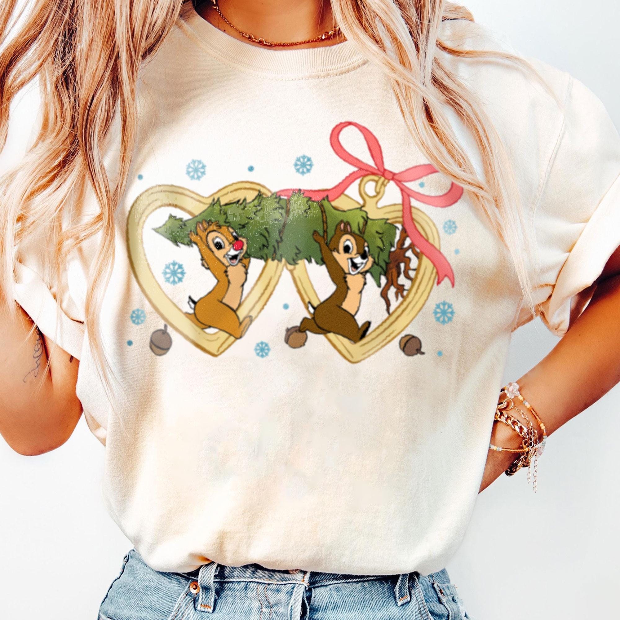 Chip n Dale Bring Xmas Tree Coquette Bow A Very Merry Party X-mas Retro Comfort Color T-Shirt, Disneyland Vacation Trip Family Gift 2024