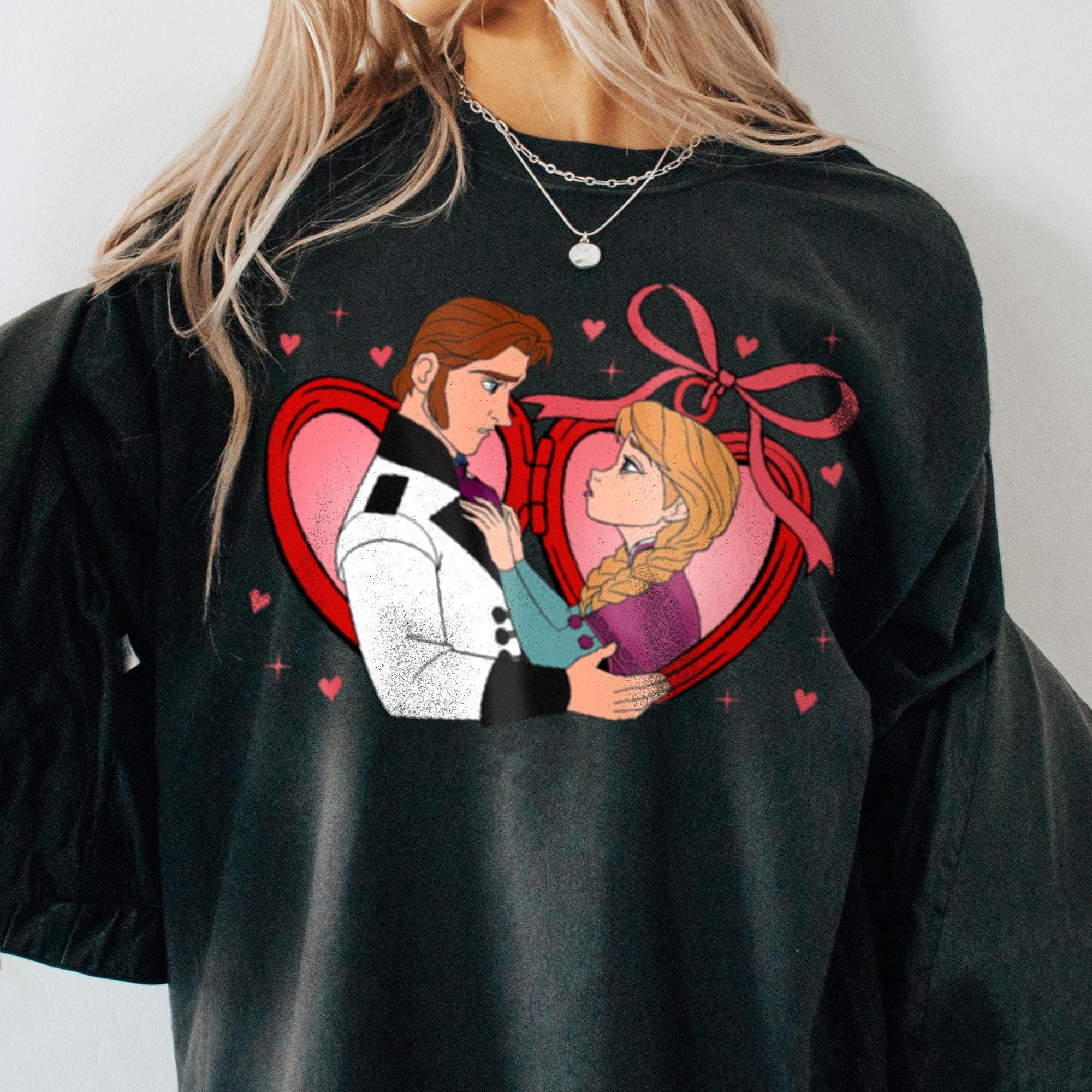 Anna Kristoff Couple Locket Comfort Color T-Shirt, Valentine Gift, Trending Unisex Tee, Disneyland Vacation Trip Gift 2024