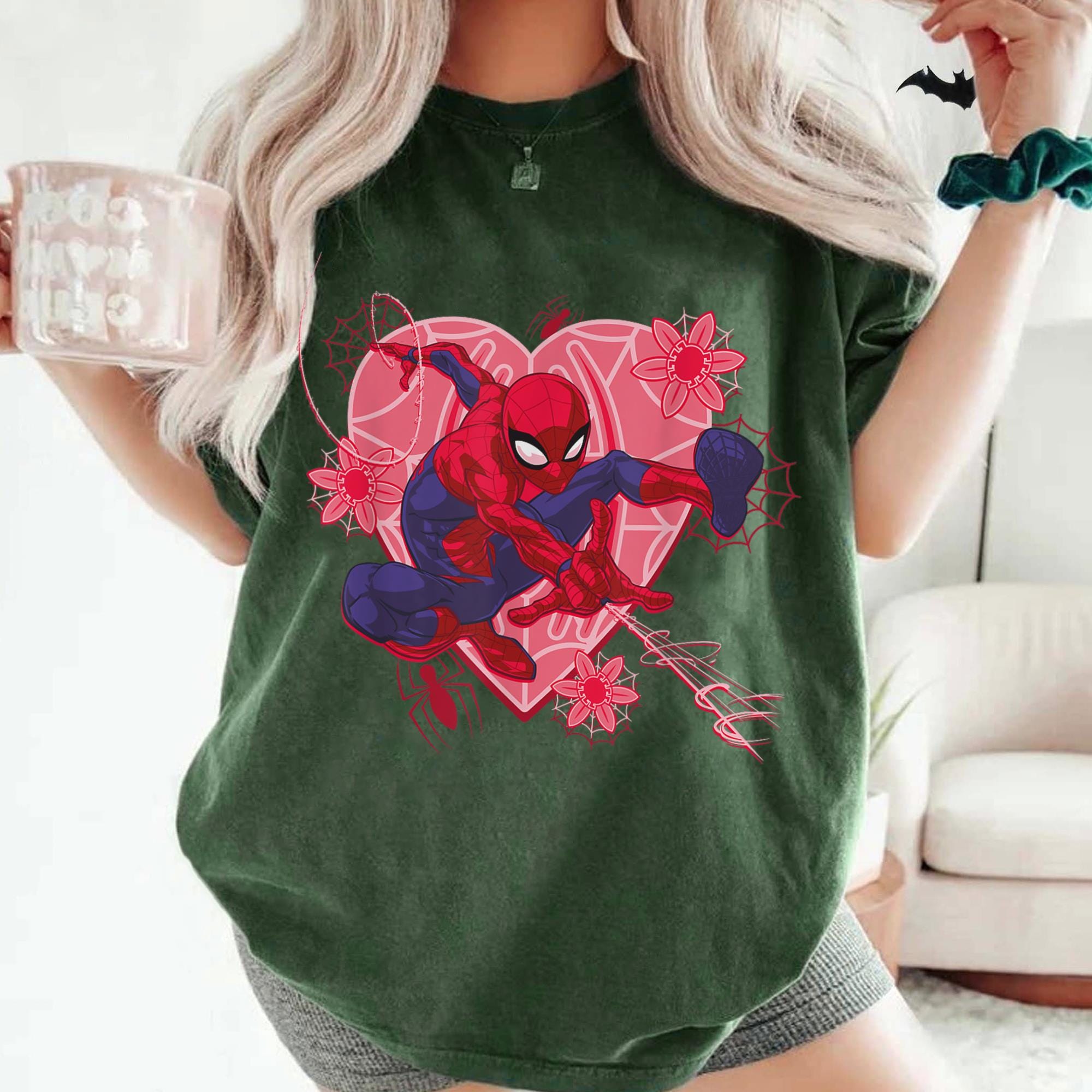 Spider-Man Hearts Floral Valentine's Retro Comfort Color T-Shirt, Valentine Gift, Trending Unisex Tee, Disneyland Vacation Trip Family Gift