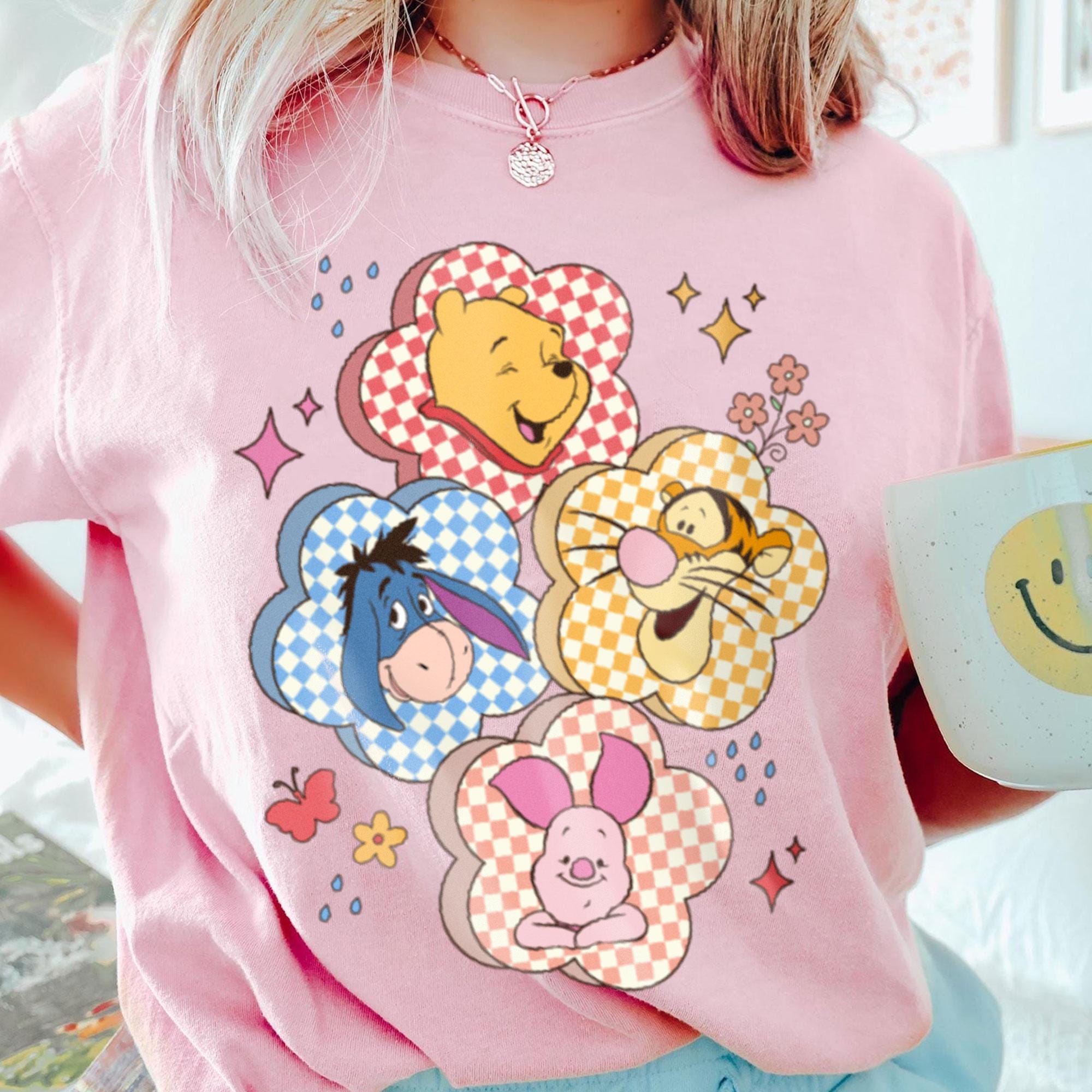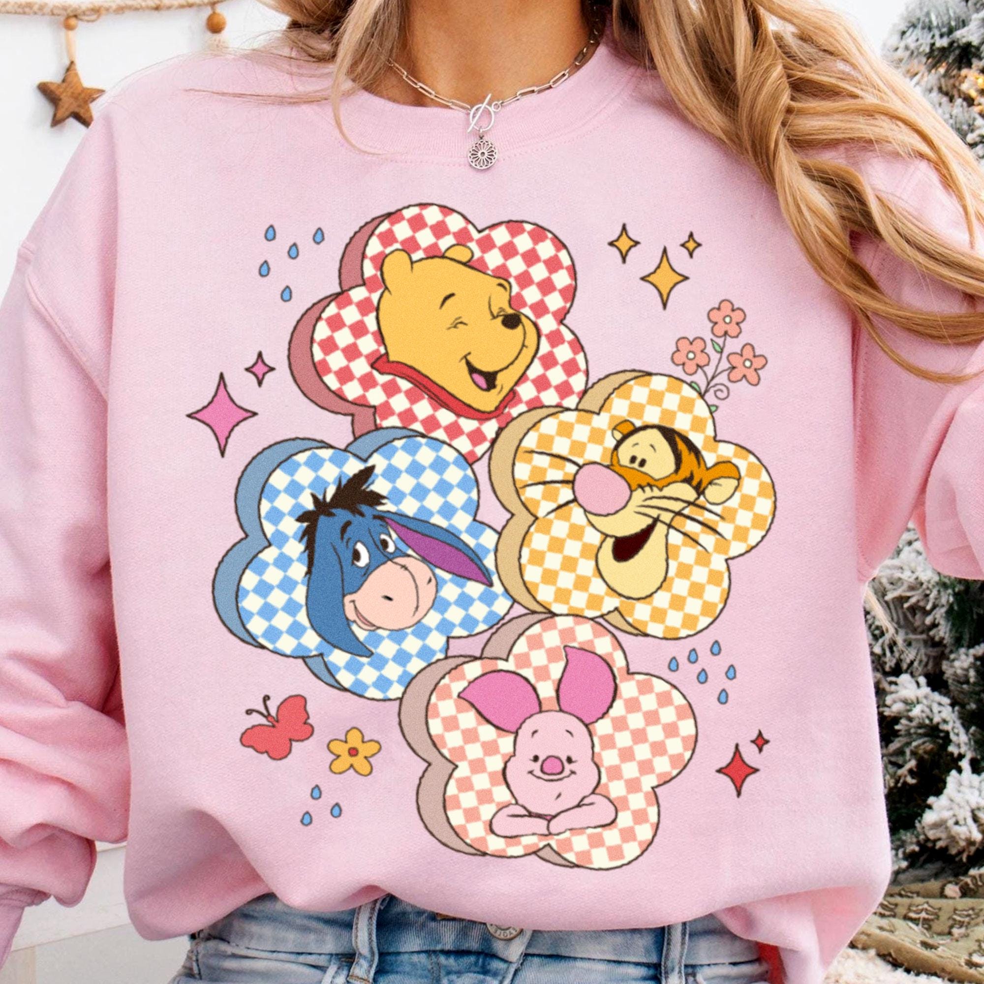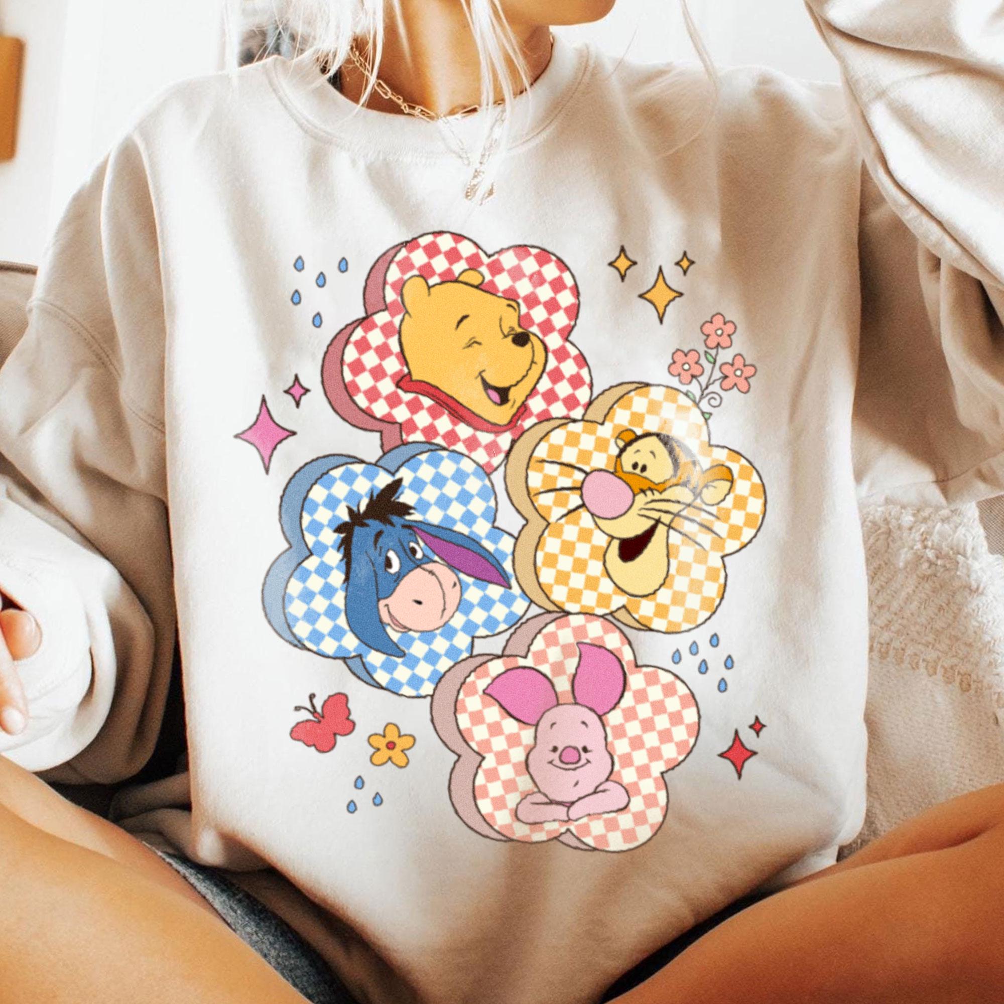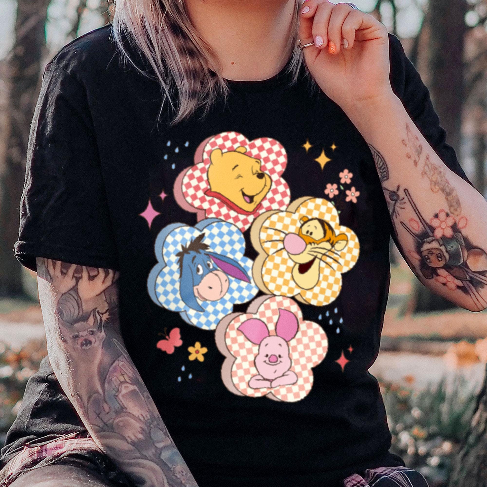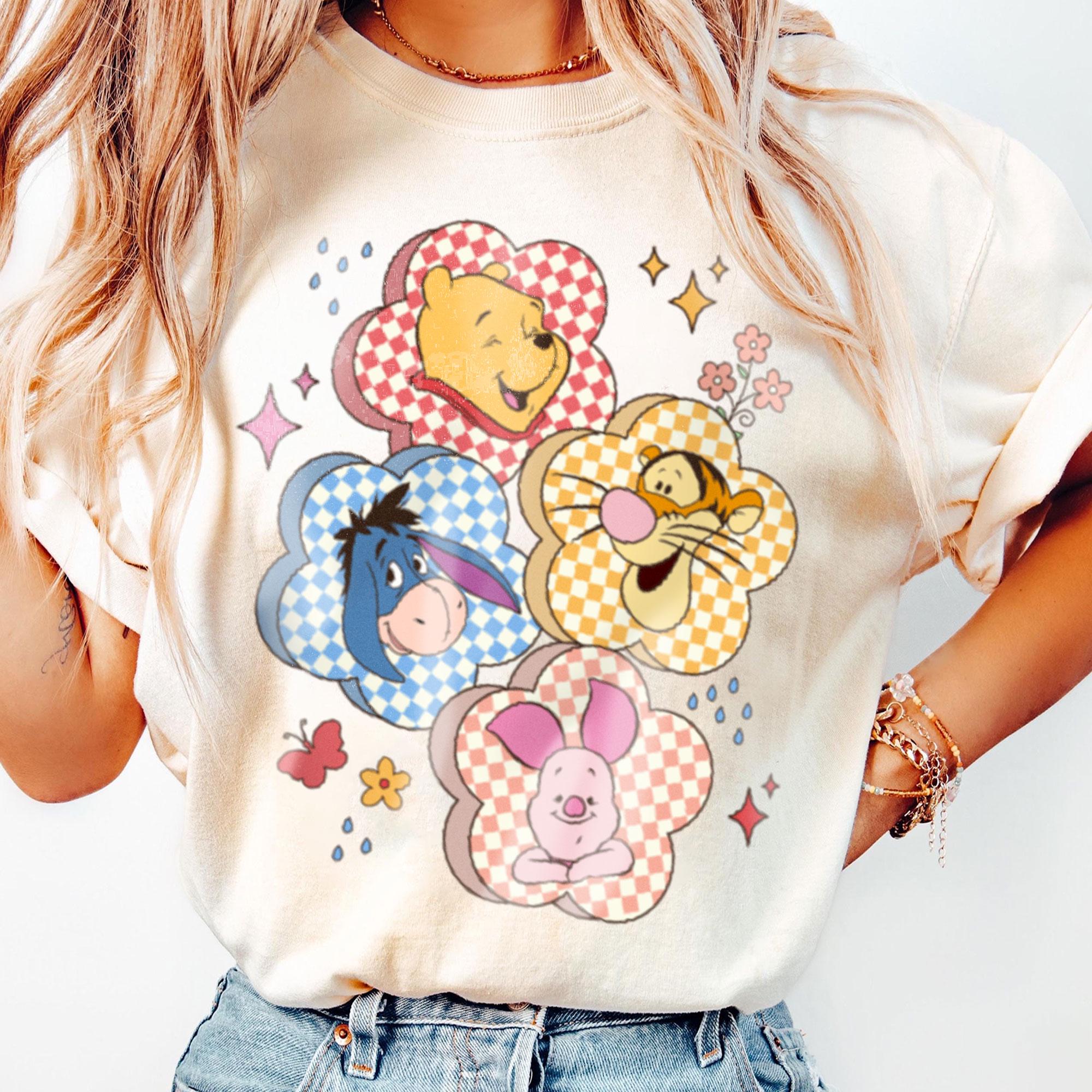 Checkered Board Flower Winnie The Pooh Friends Retro T-Shirt, Valentine Gift, Trending Unisex Tee, Disneyland Vacation Trip Gift 2025