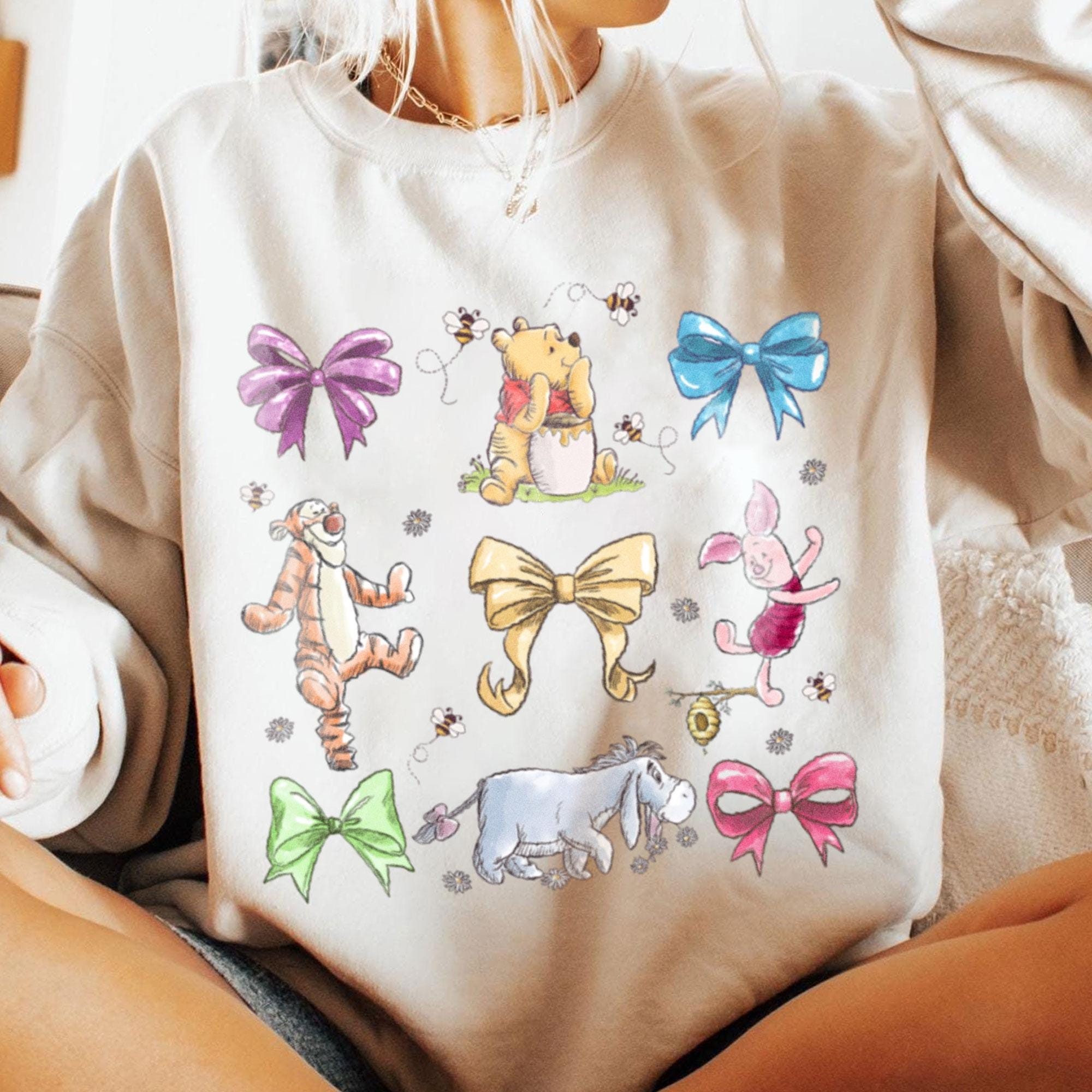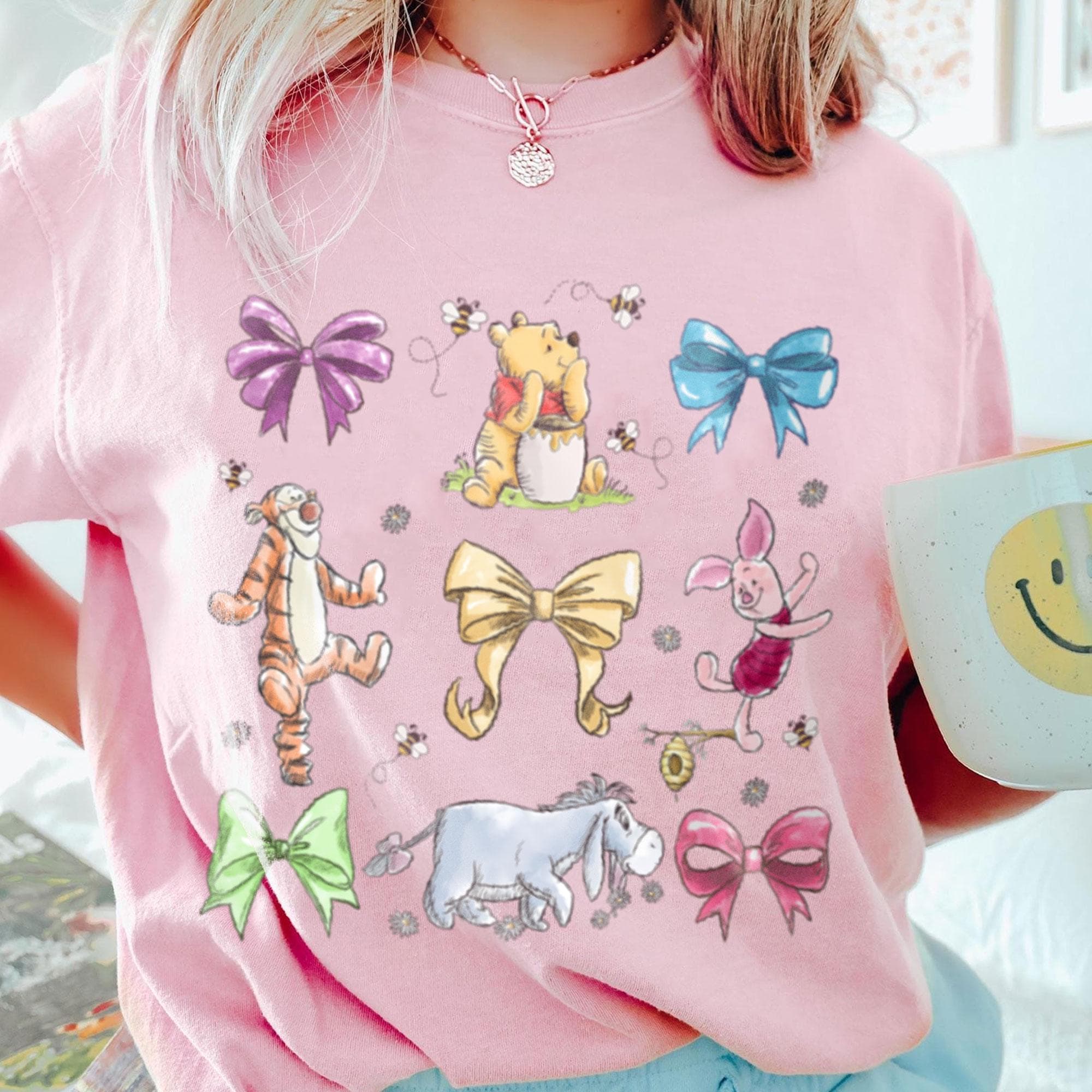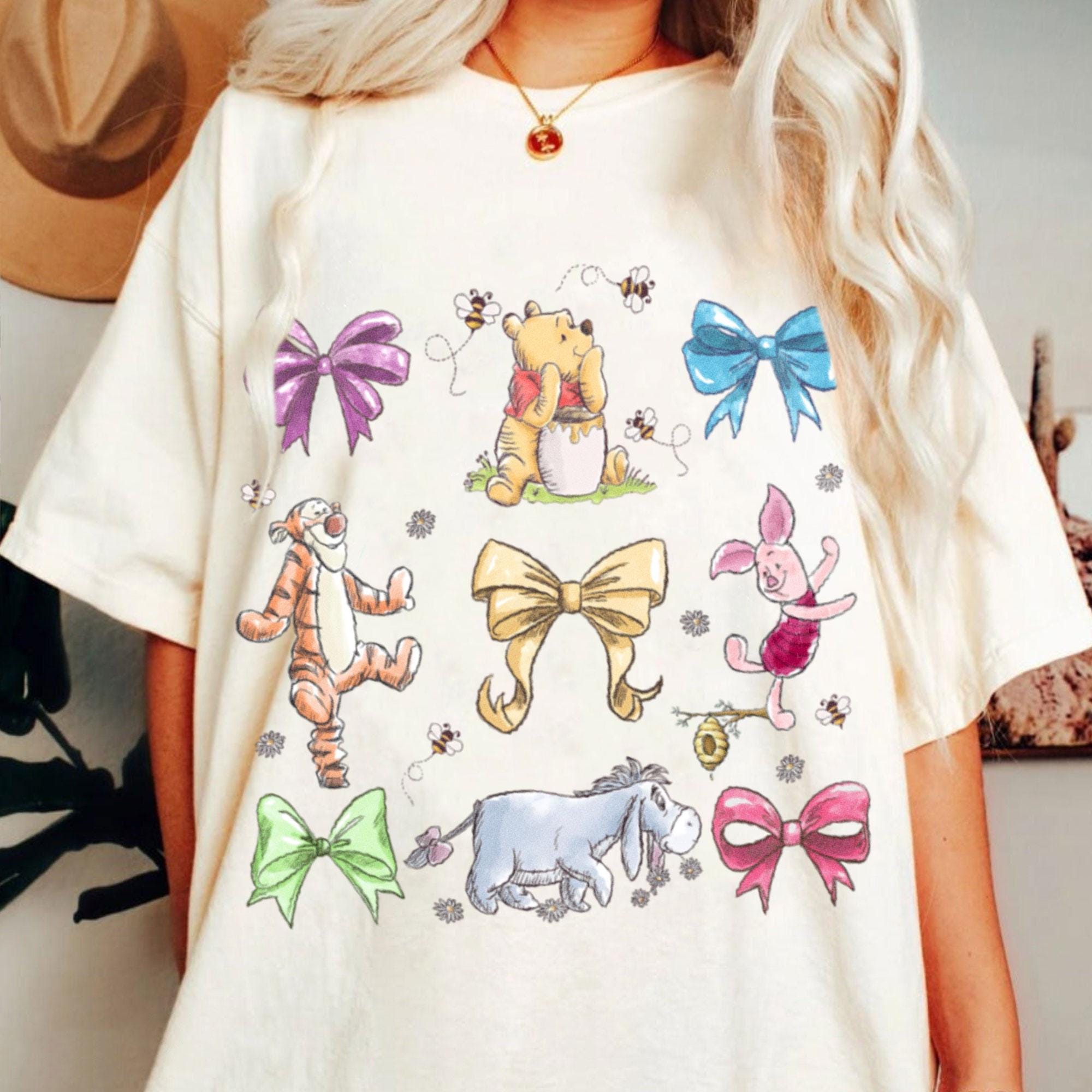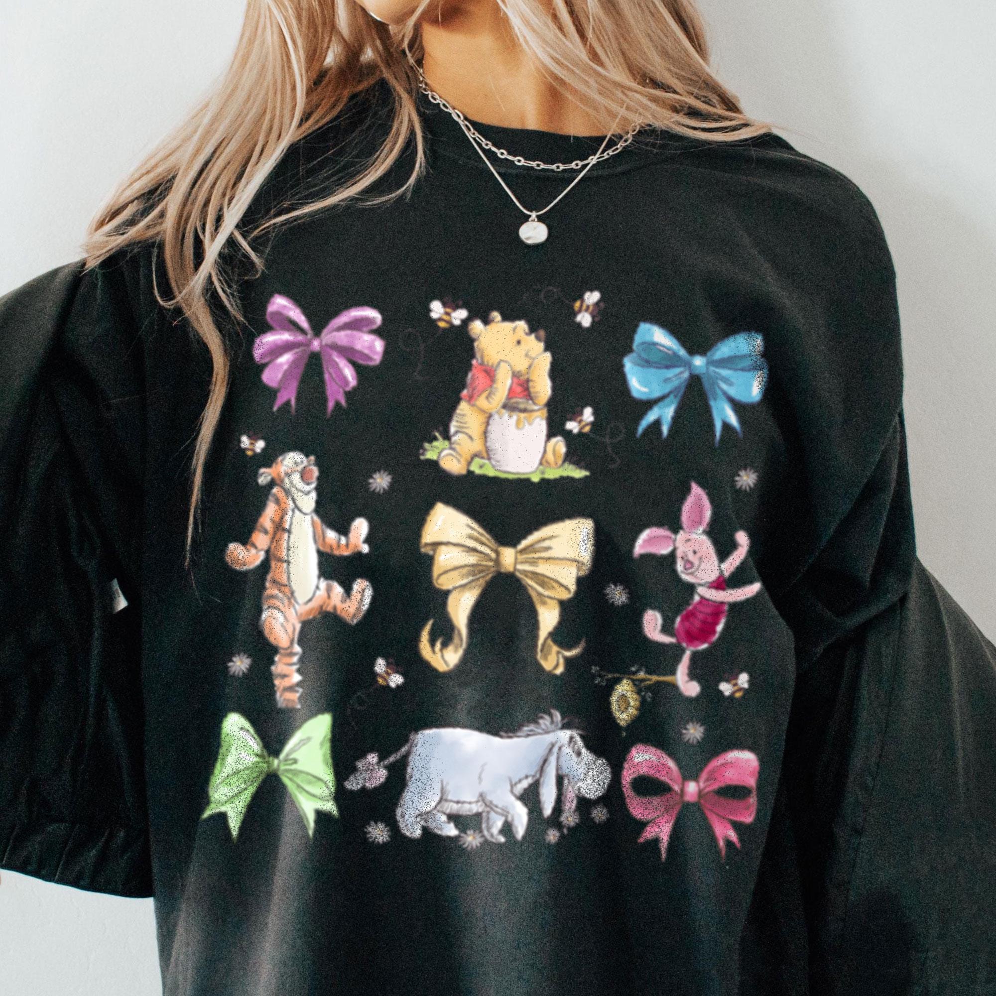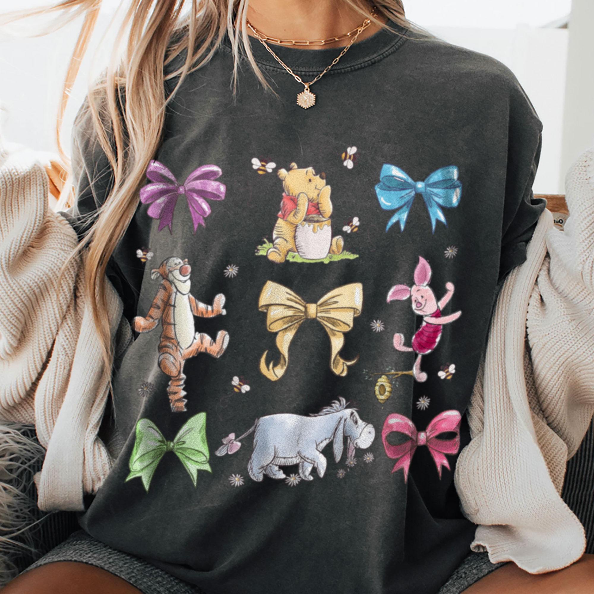 Pooh Tigger Coquette Bow Daisy Floral Comfort Color T-Shirt, Valentine Gift, Trending Unisex Tee, Disneyland Vacation Trip Gift 2025