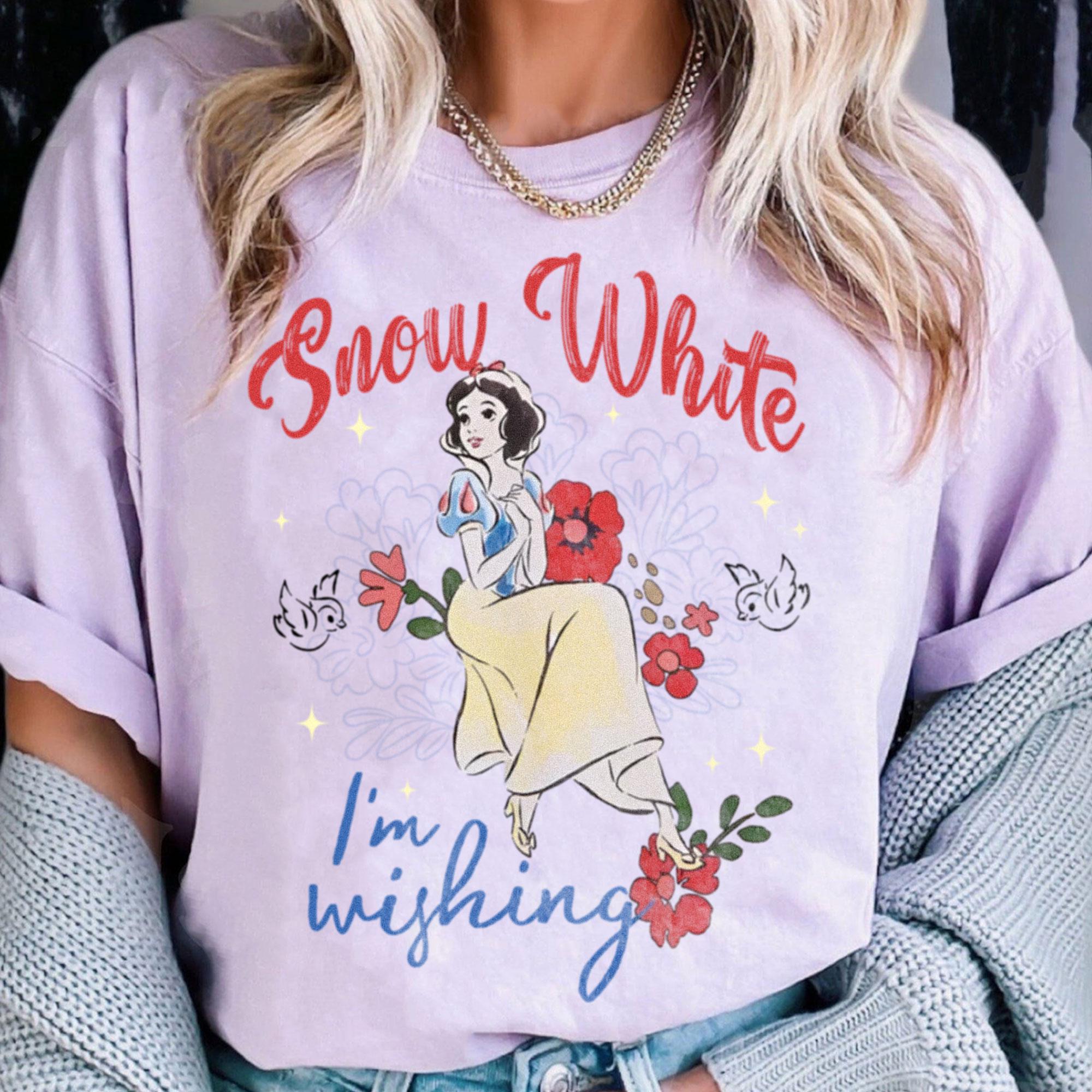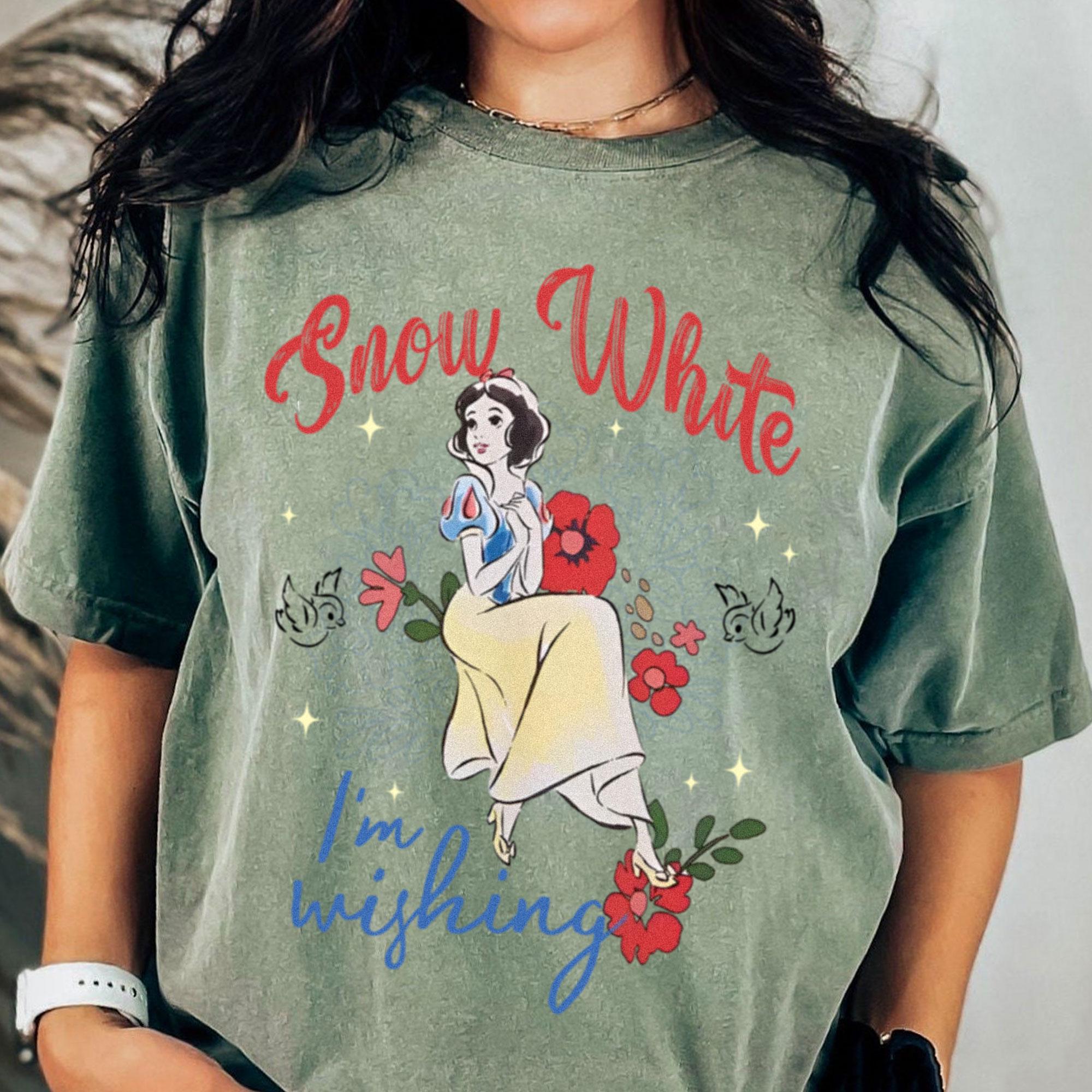 Snow White and Bird Spring Flower Comfort Color T-Shirt, Valentine Gift, Trending Unisex Tee, Disneyland Vacation Trip Gift 2025