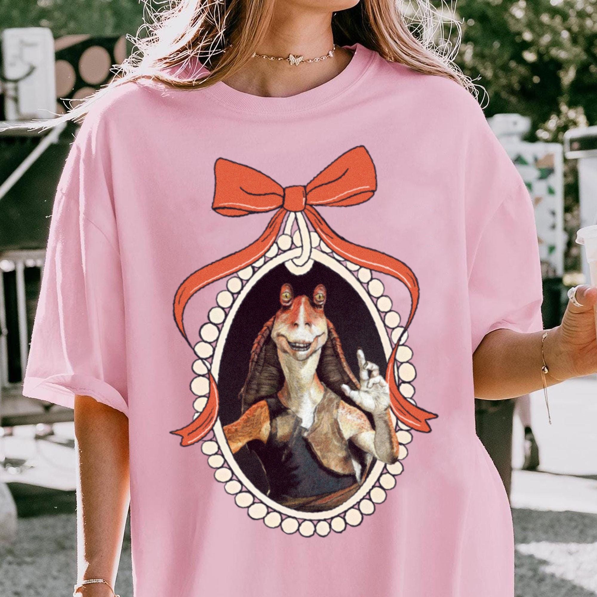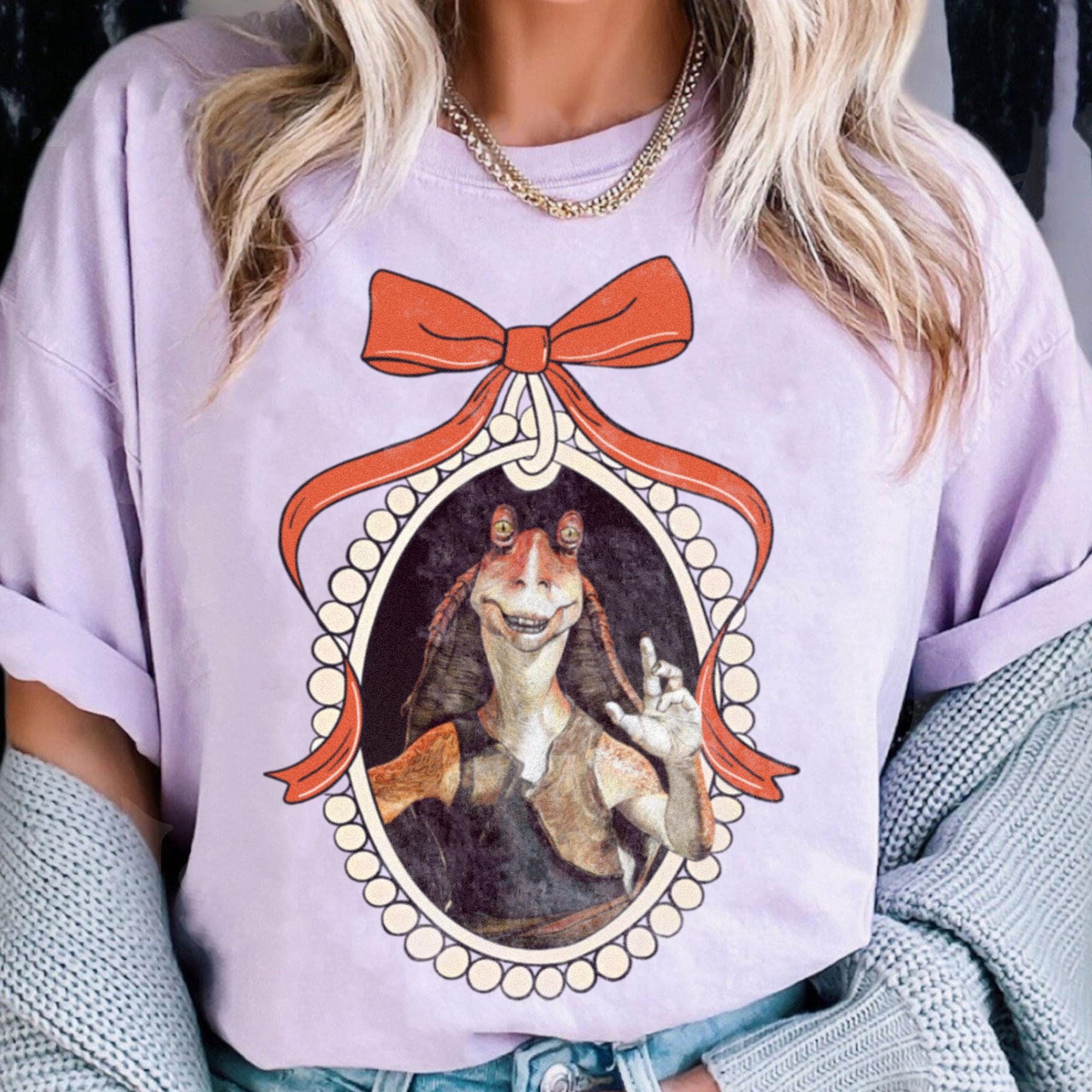 Jar Jar Binks Coquette Bow Comfort Color T-Shirt, Valentine Gift, Trending Unisex Tee, Disneyland Vacation Trip Gift 2025