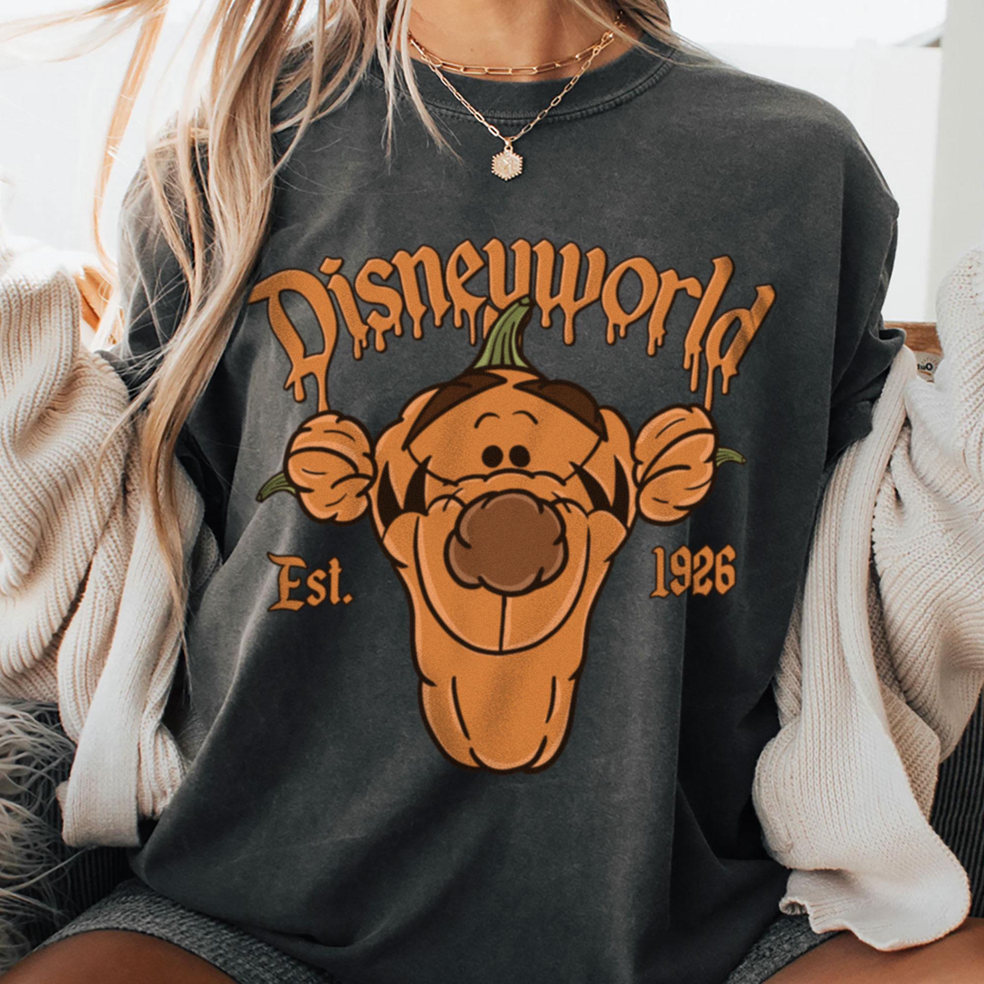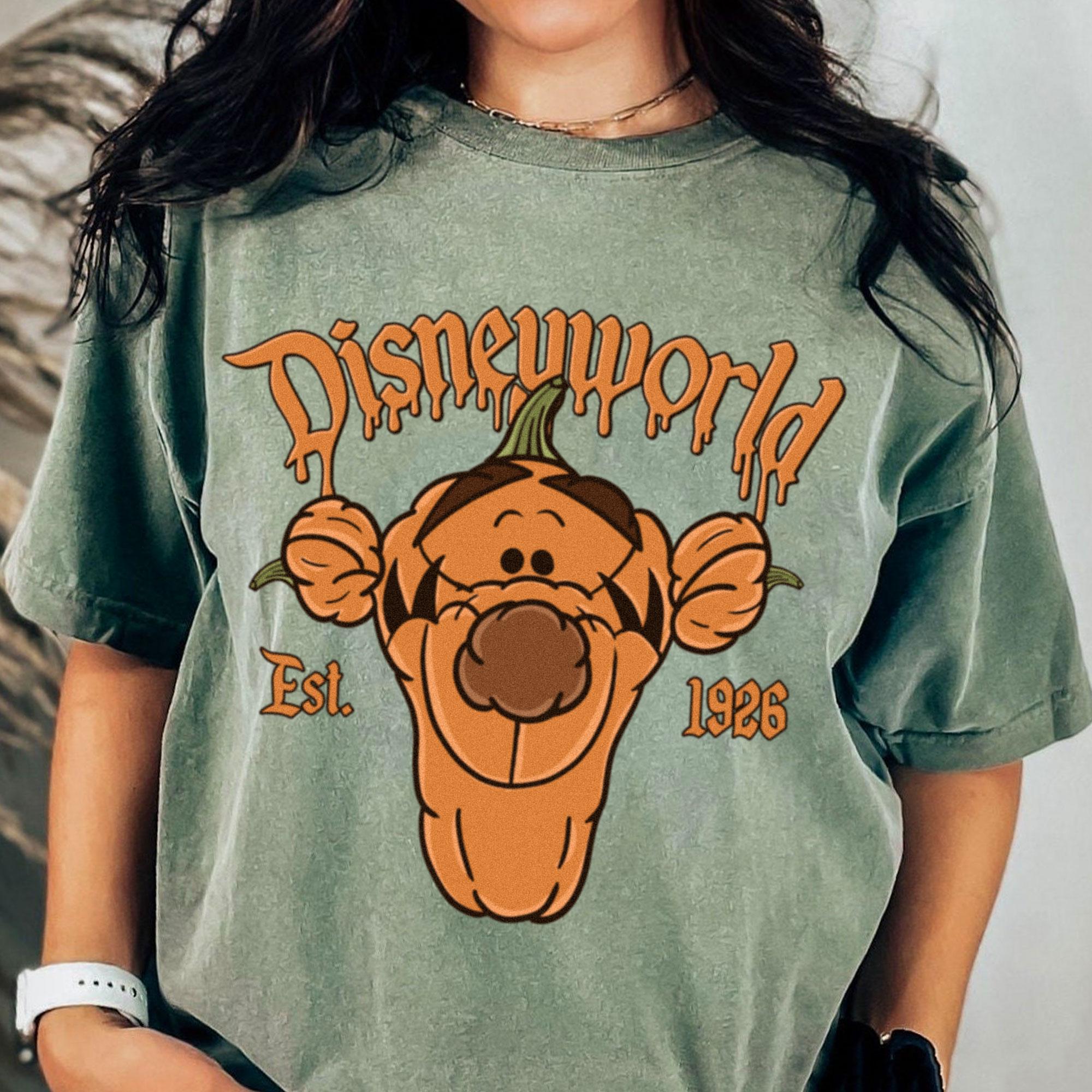 Retro Disneyland Tigger Pumpkin Comfort Color Shirt, Spooky Season Shirt, Fall Season Trip Shirt, Halloween Party Tee