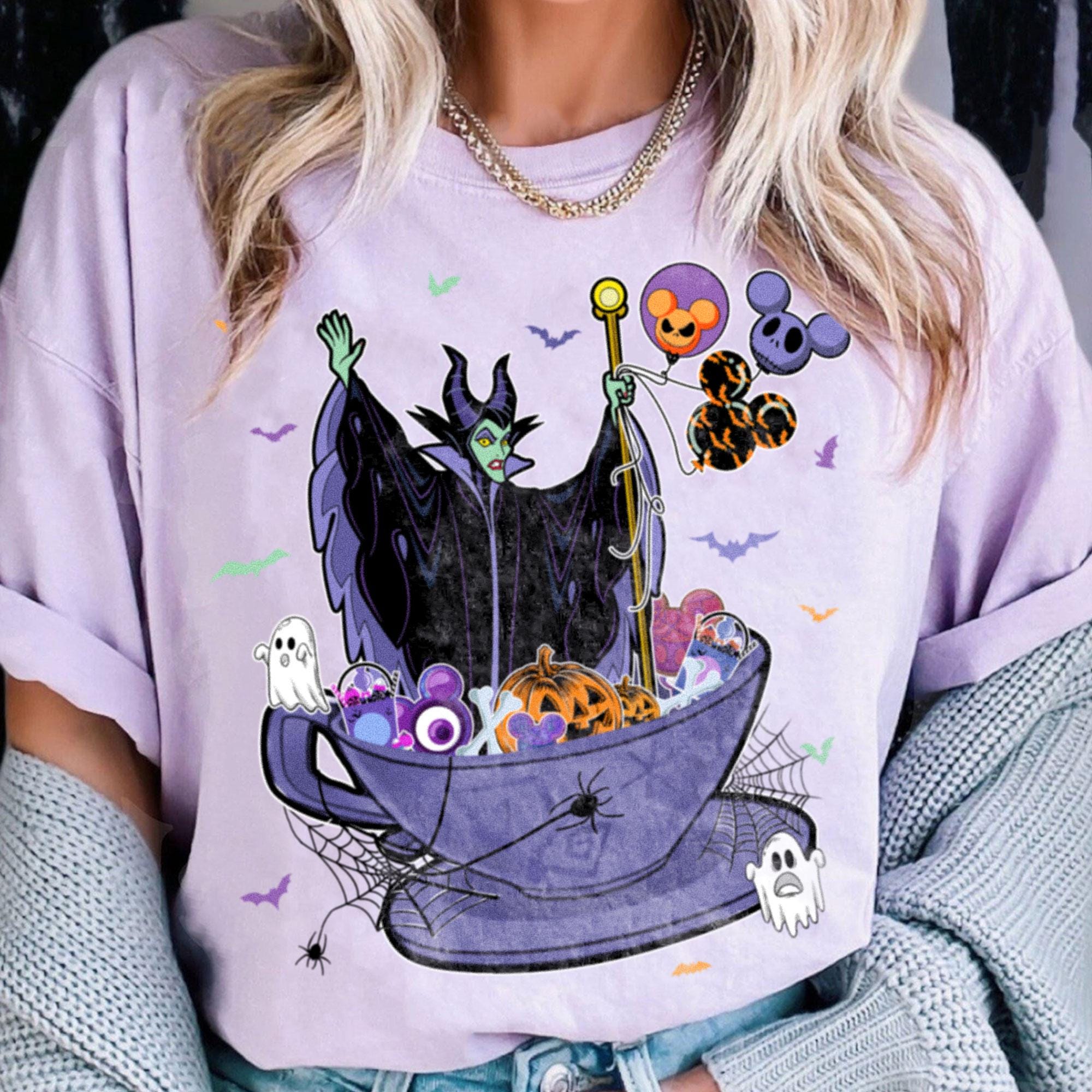 Maleficent Mickey Balloons Teacup Comfort Shirt, Spooky Season Shirt, Disney Villains Shirt, Halloween Party Tee