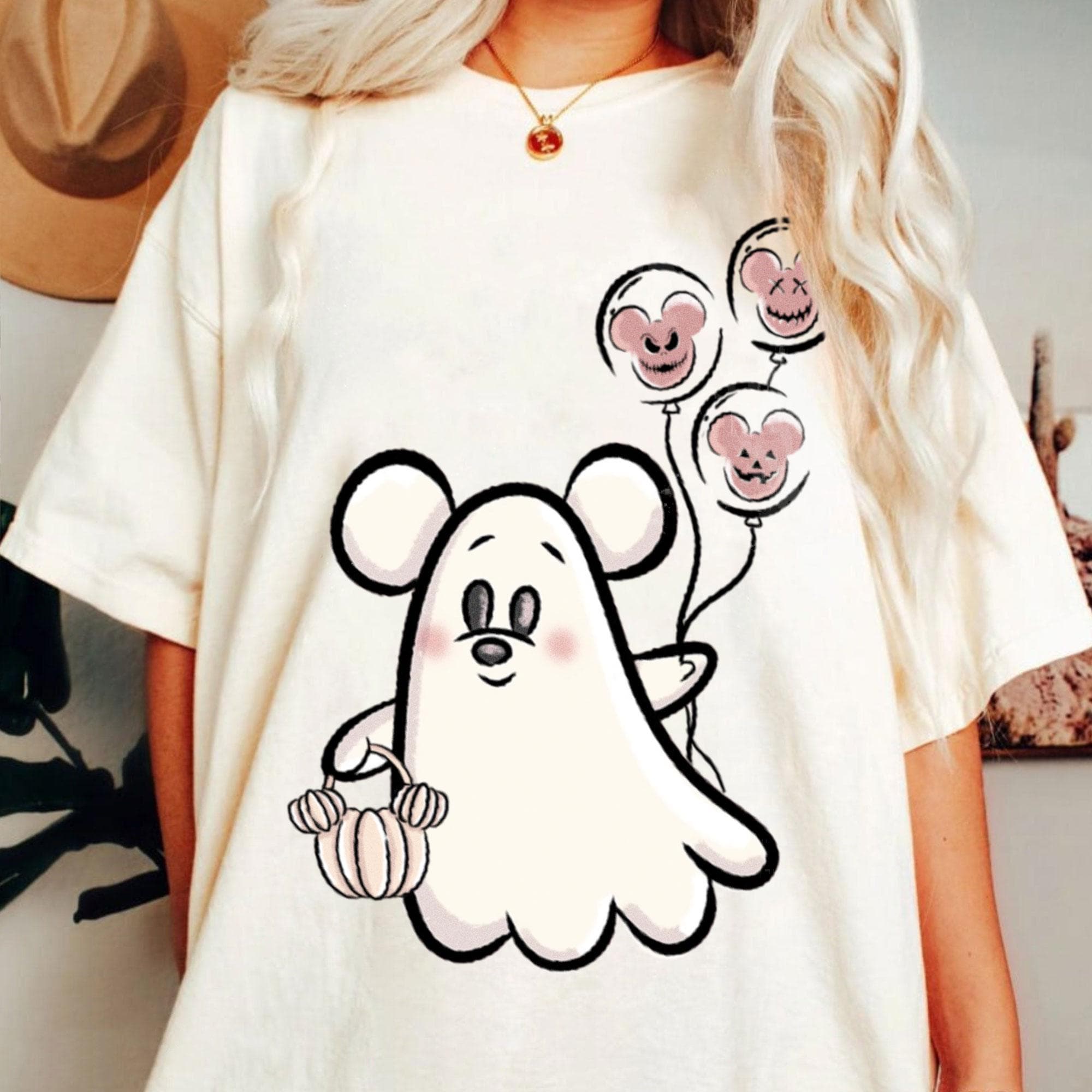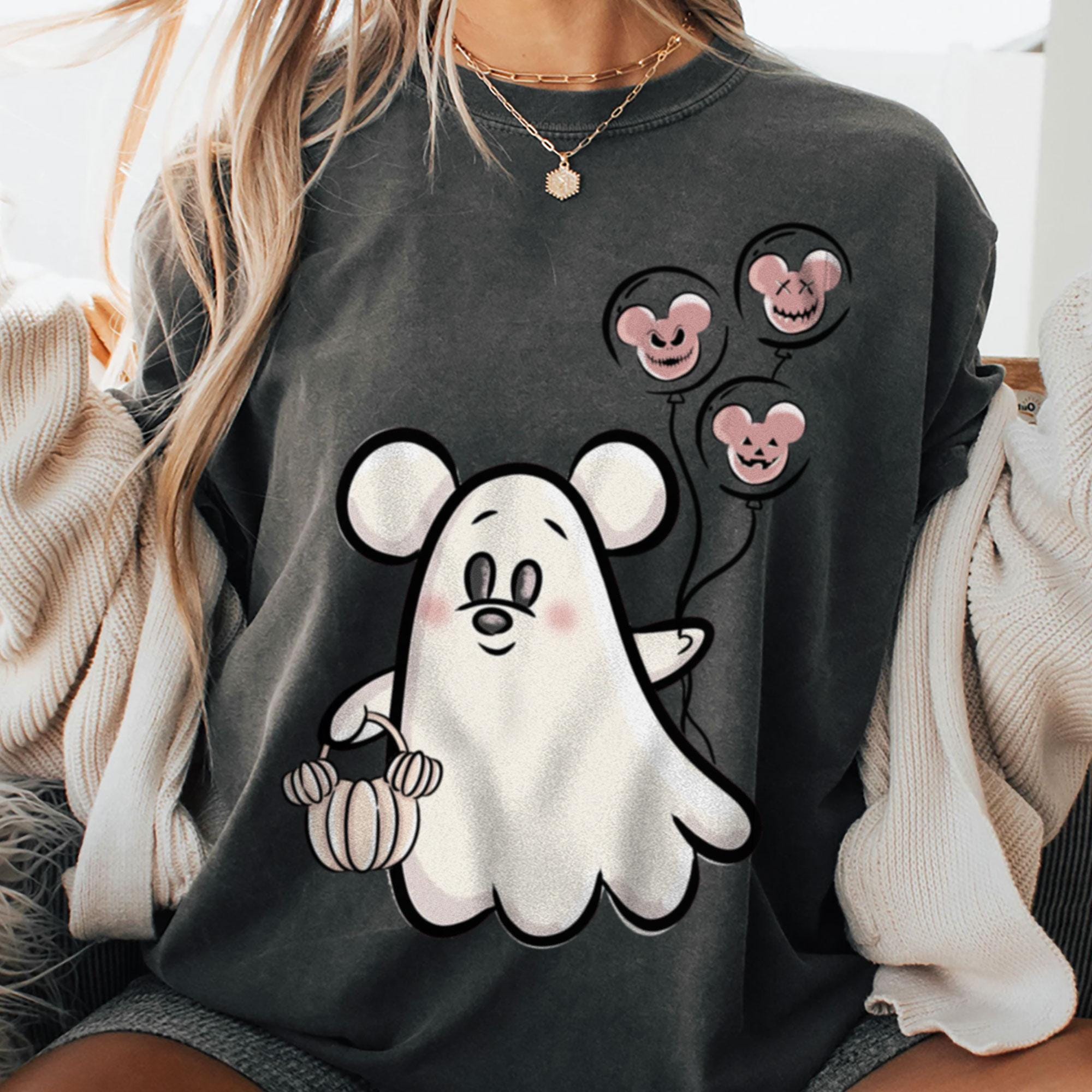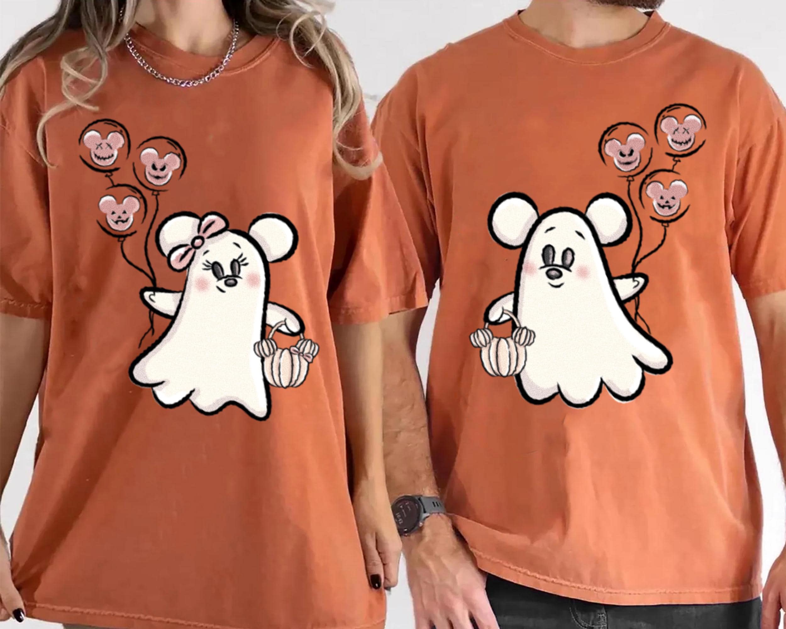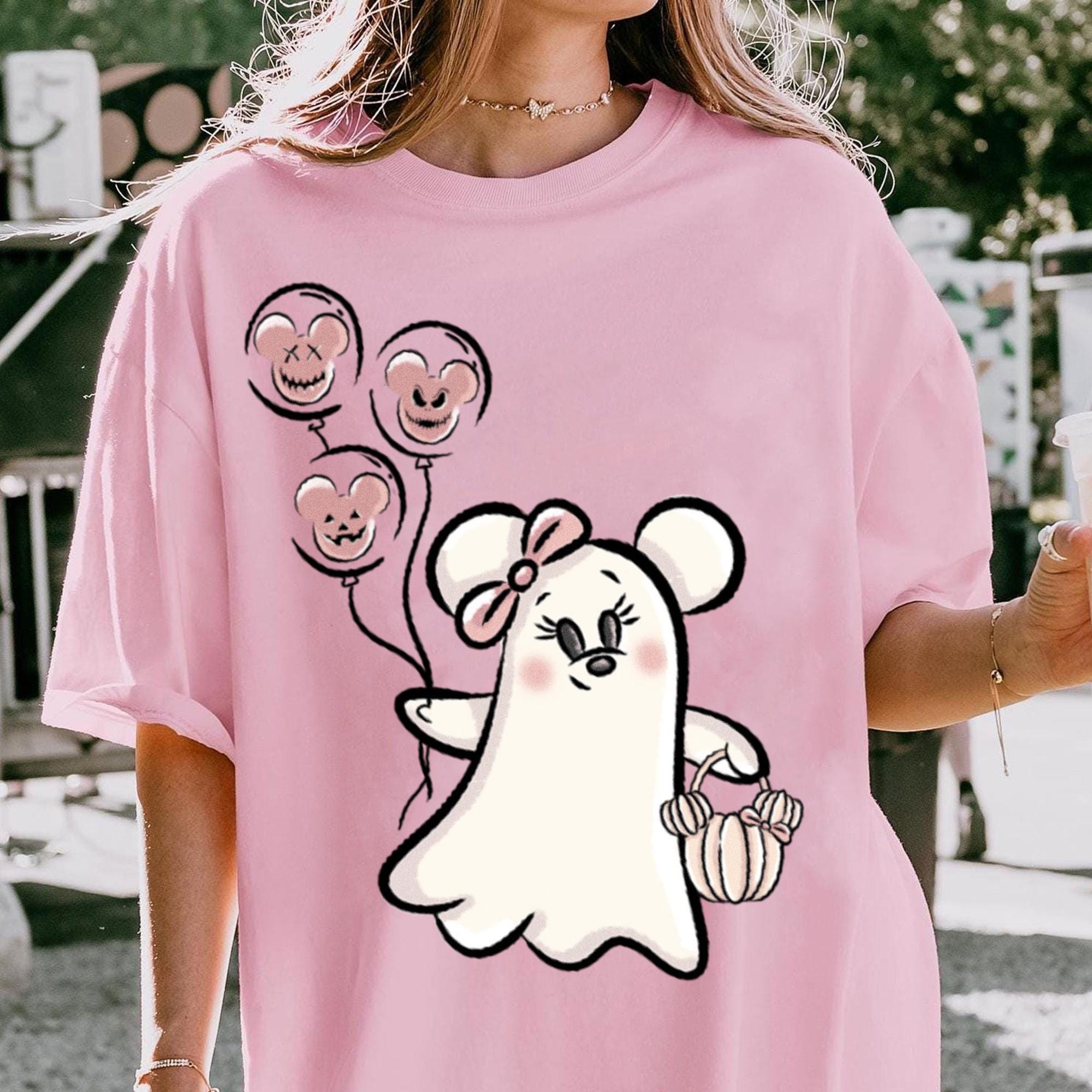 Mickey Minnie Boo Ghost Pumpkin Pink Pastel Comfort Color Shirt, Spooky Season Shirt, Fall Season Shirt, Halloween Party Tee