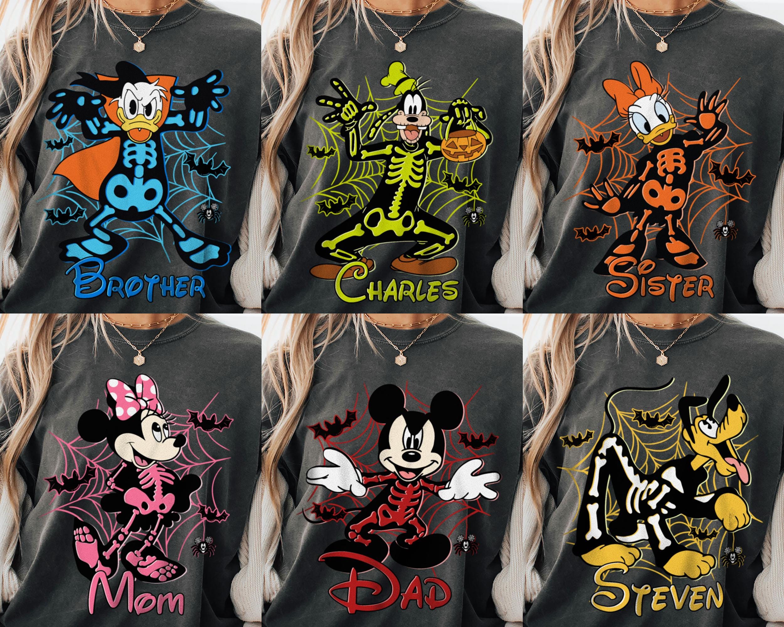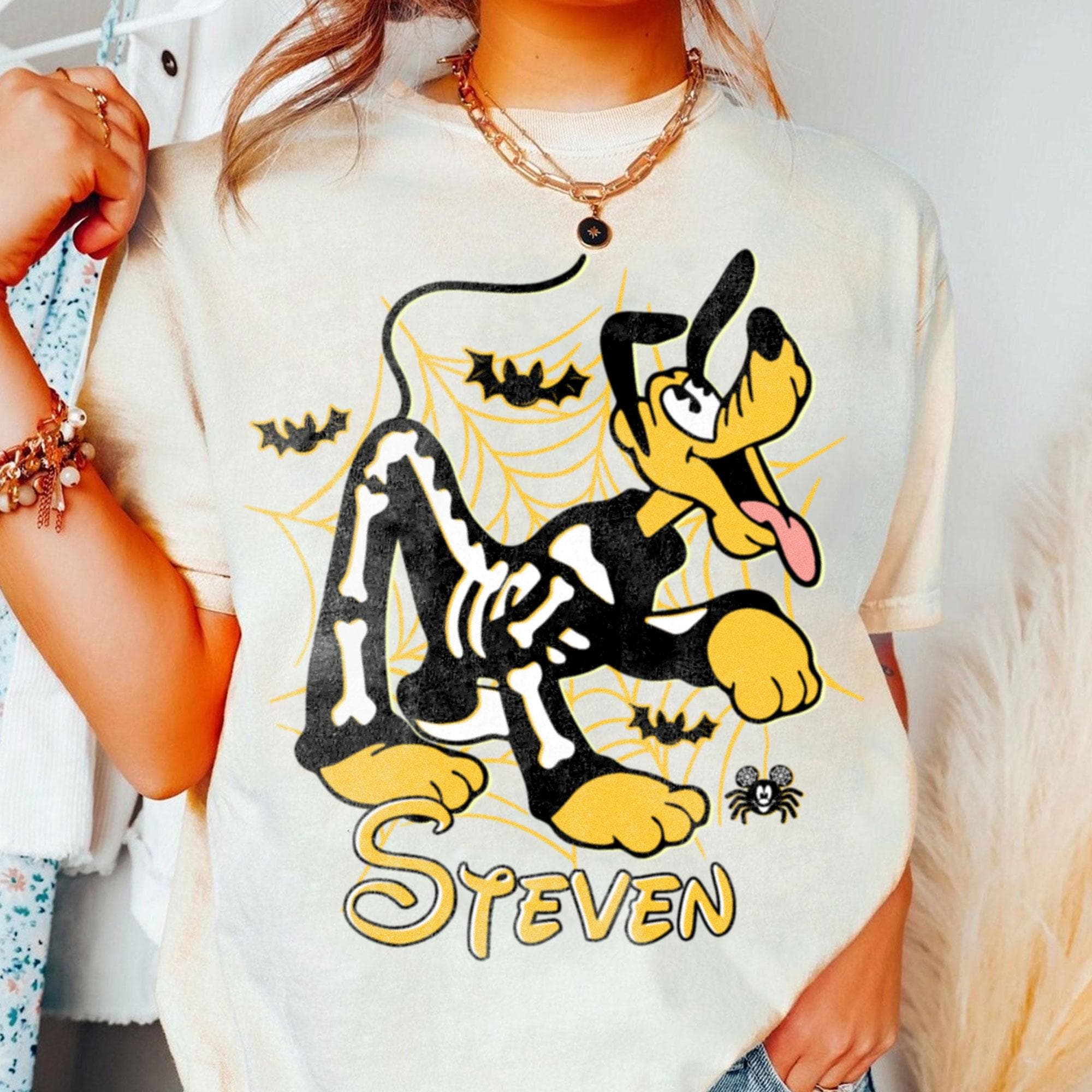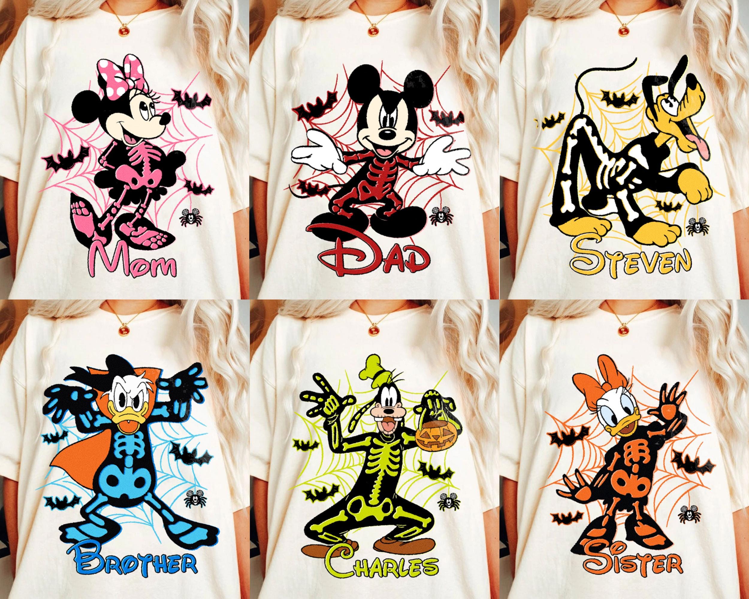 Custom Name & Character Disney Skeleton Comfort Color Shirt, Spooky Season Shirt, Fall Season Trip Shirt, Halloween Party Tee