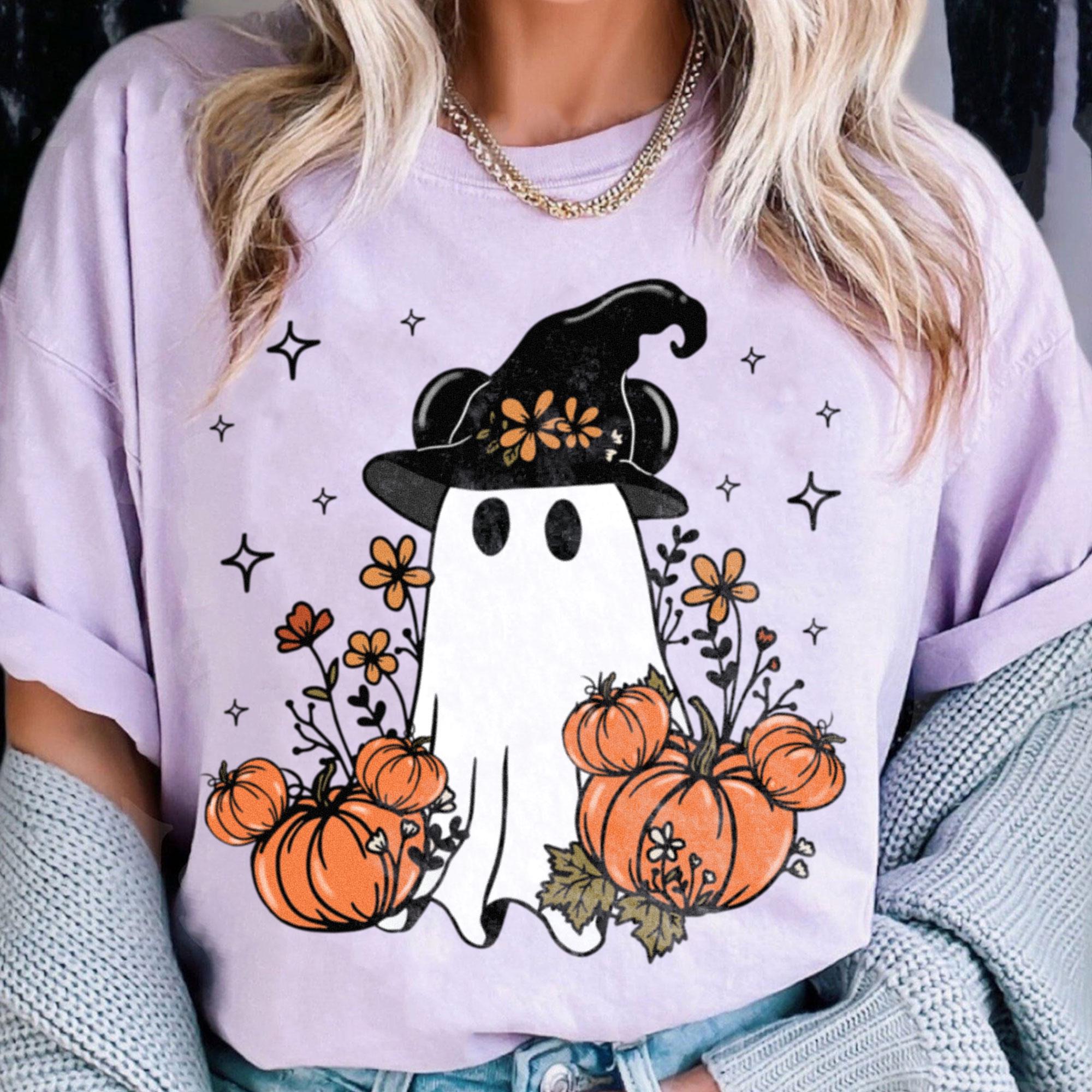 Mickey Ghost Pumpkin Boho Witch Comfort Color Shirt, Spooky Season Shirt, Fall Season Trip Shirt, Halloween Party Tee