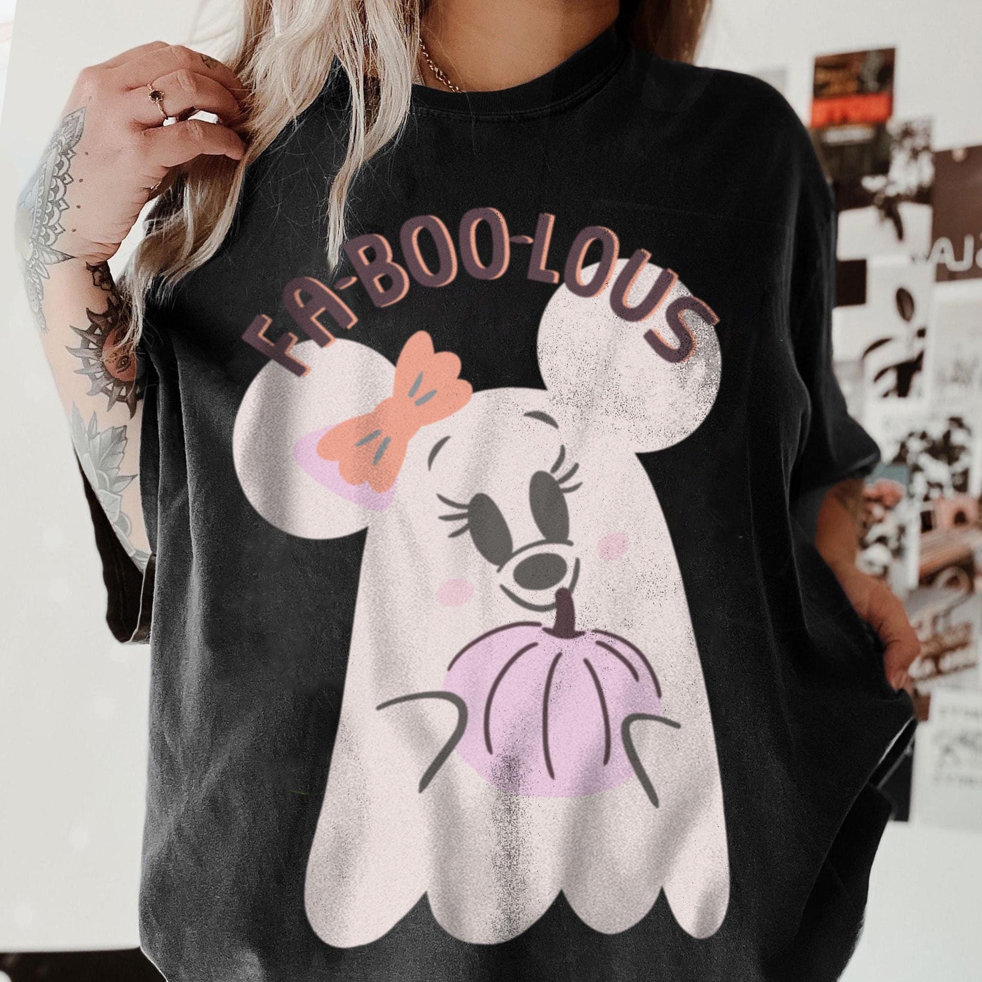 Minnie Boo Ghost Pink Pumpkin Fa Boo Lous Faboulous Comfort Color Shirt, Spooky Season Shirt, Fall Season Trip Shirt, Halloween Party Tee