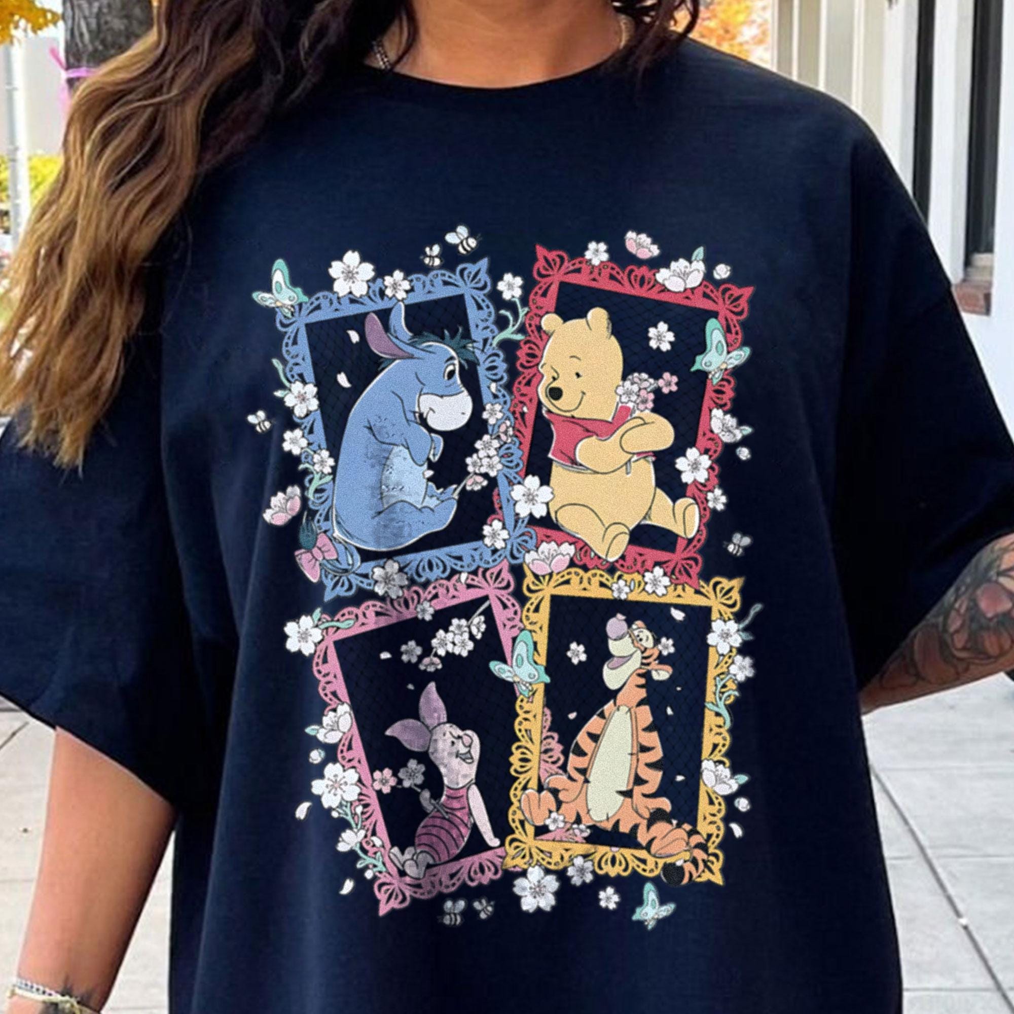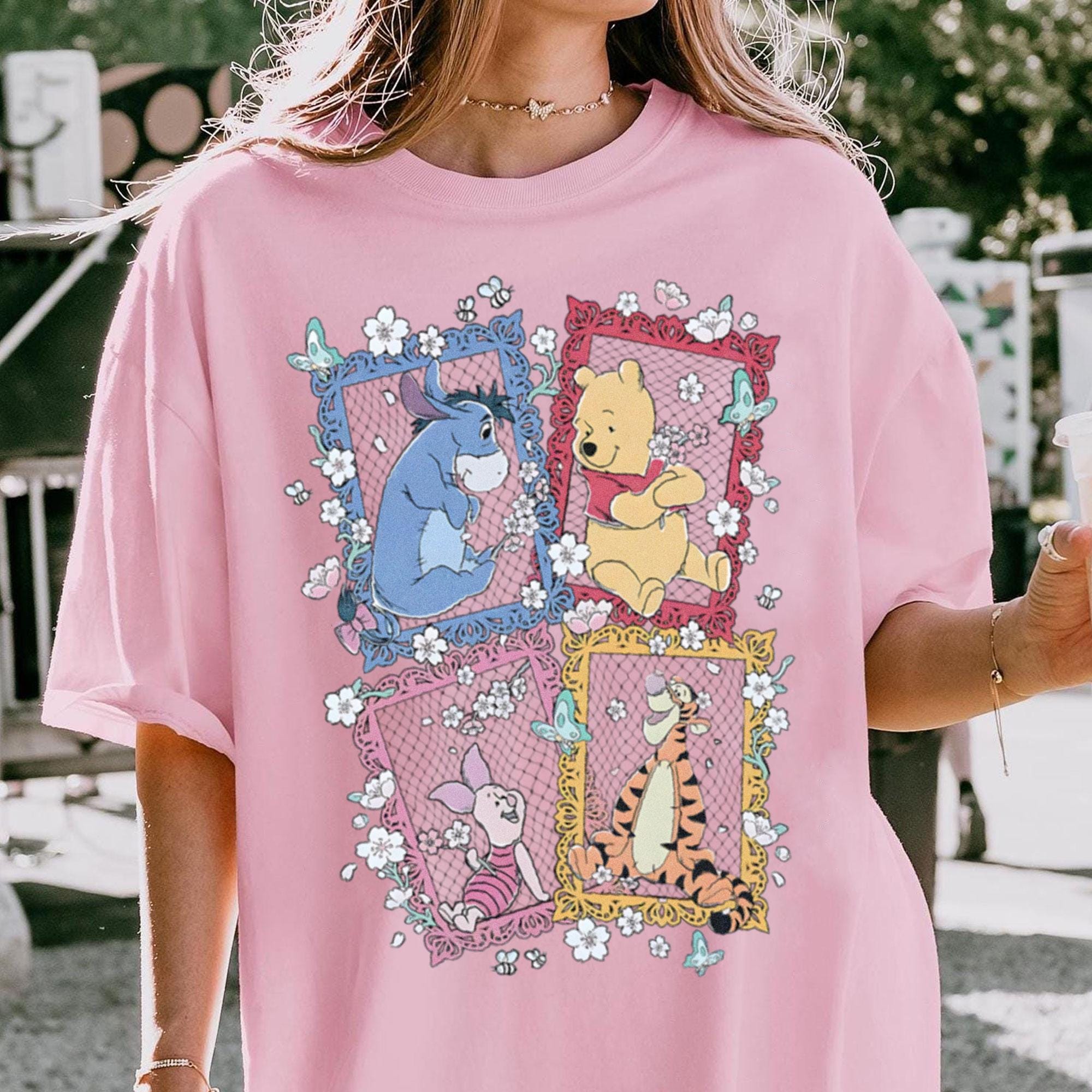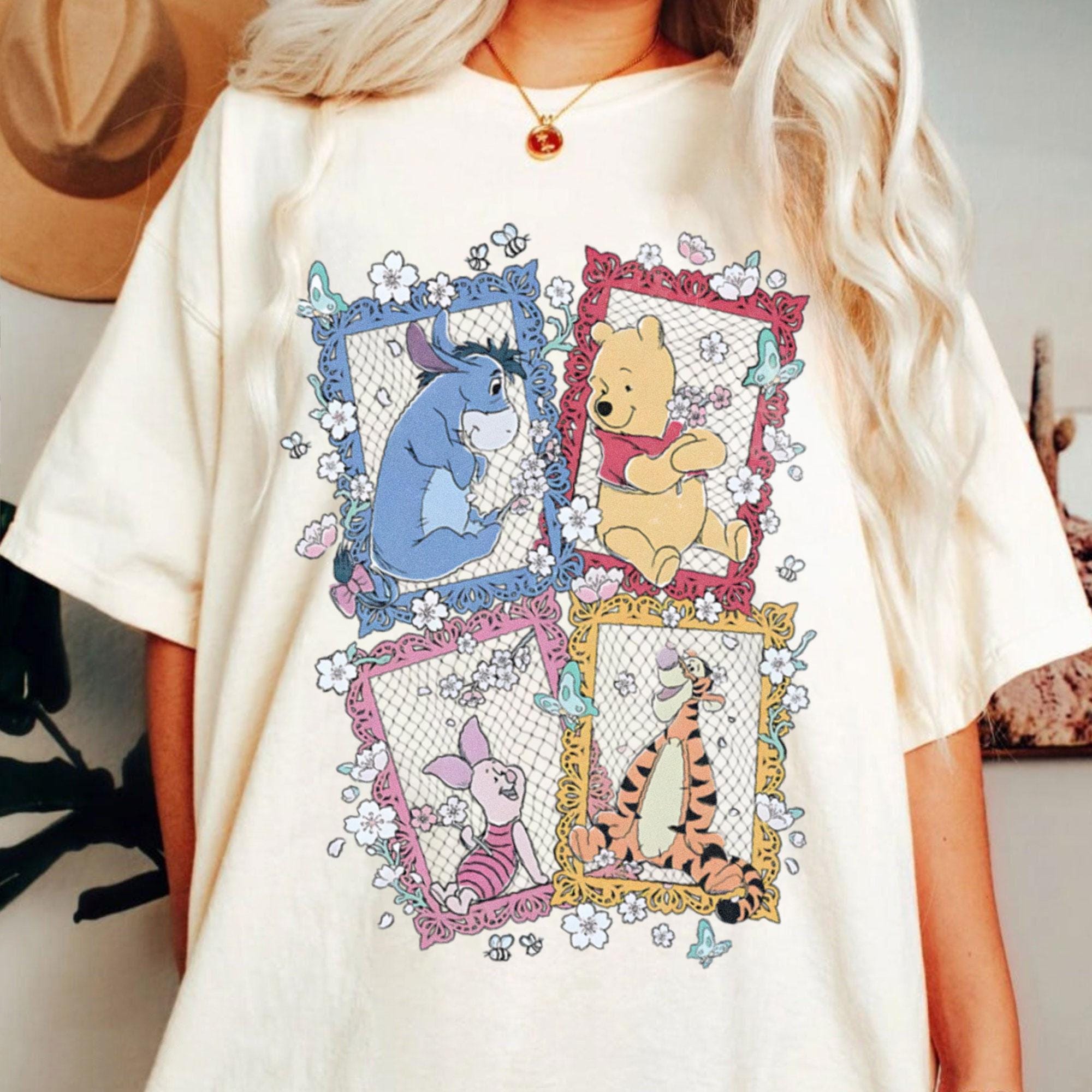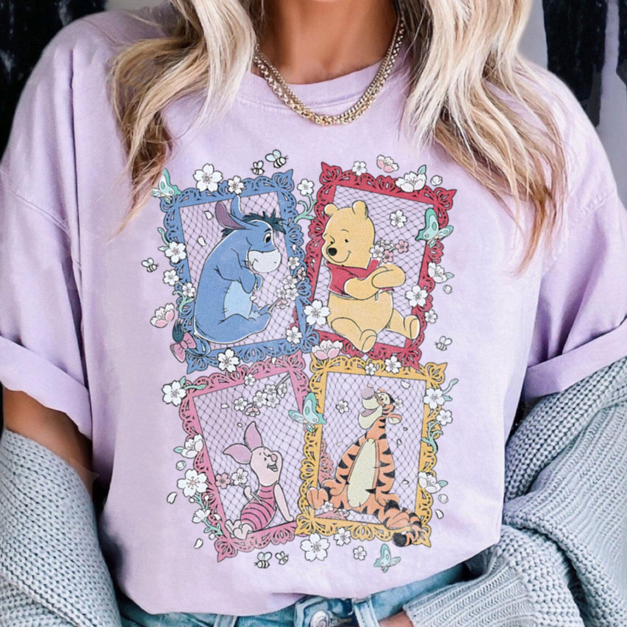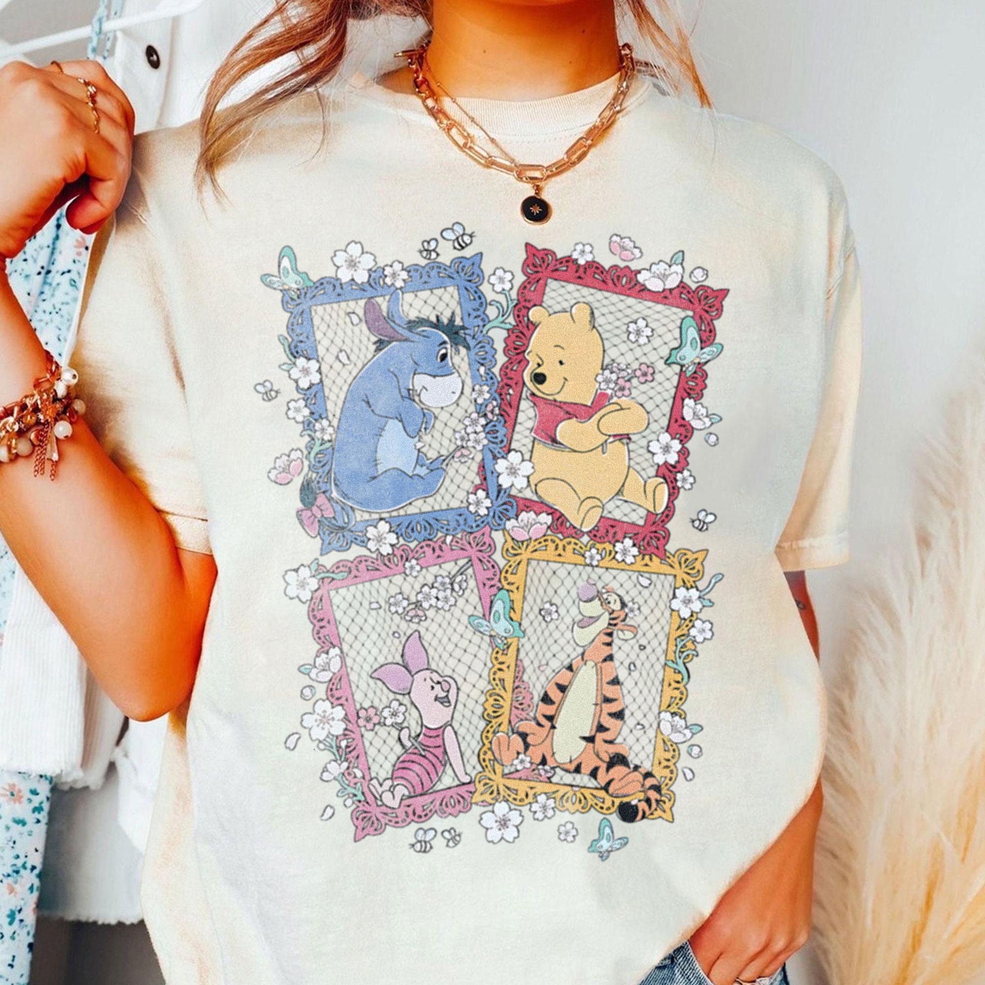 Pooh Piglet Eeyore Tigger Mirror Frame Flower Comfort Color Shirt, Trending Unisex Tee, Disneyland Vacation Trip Gift 2025