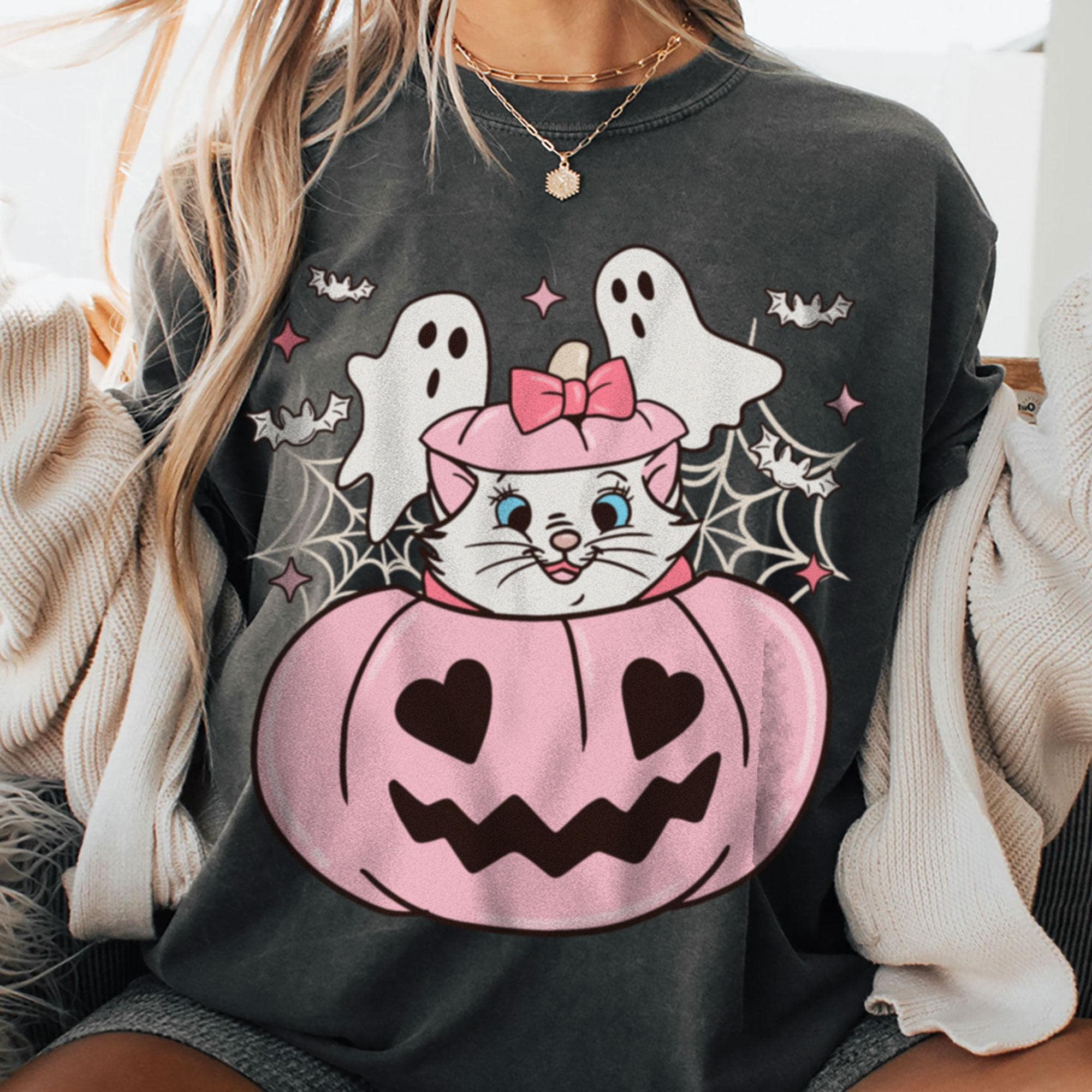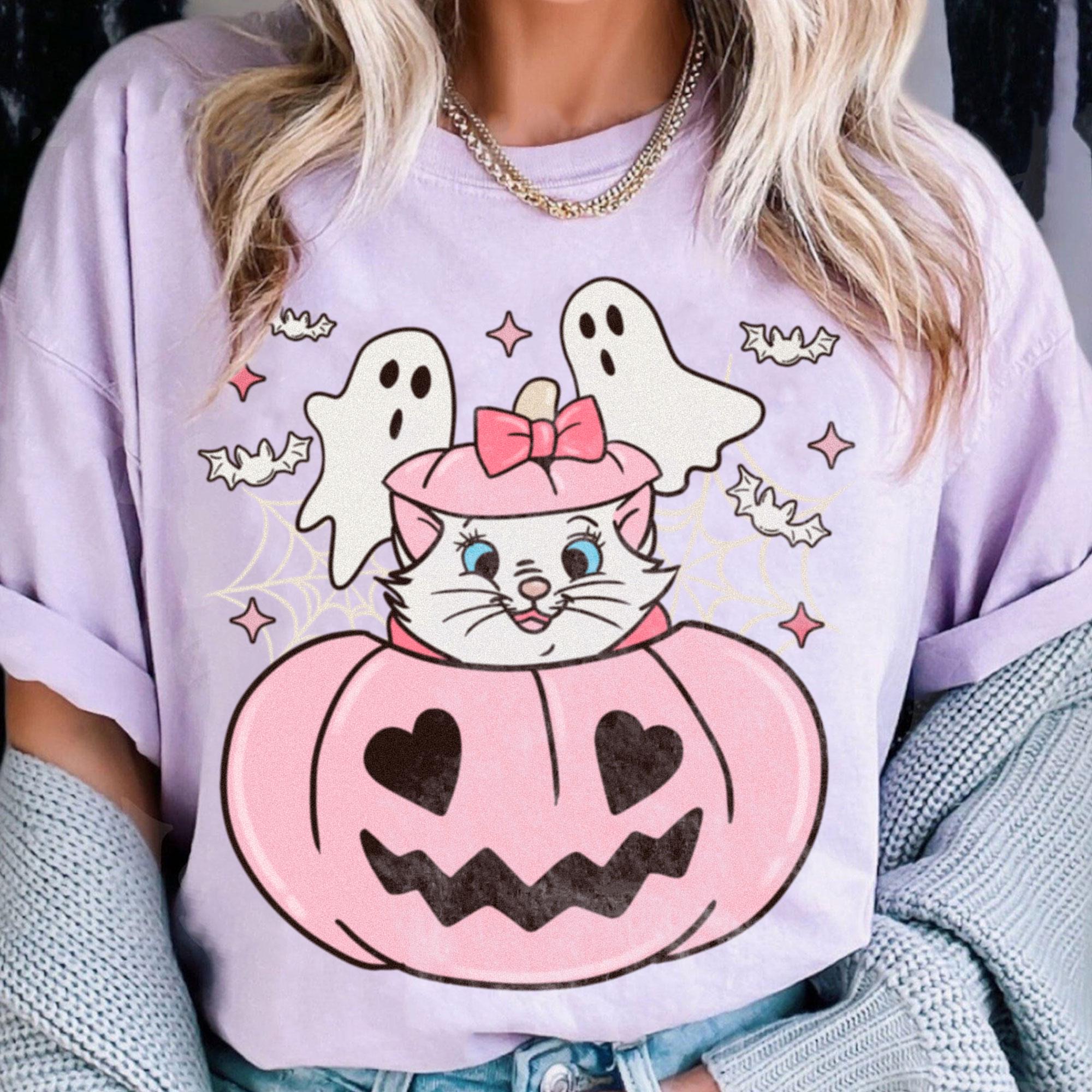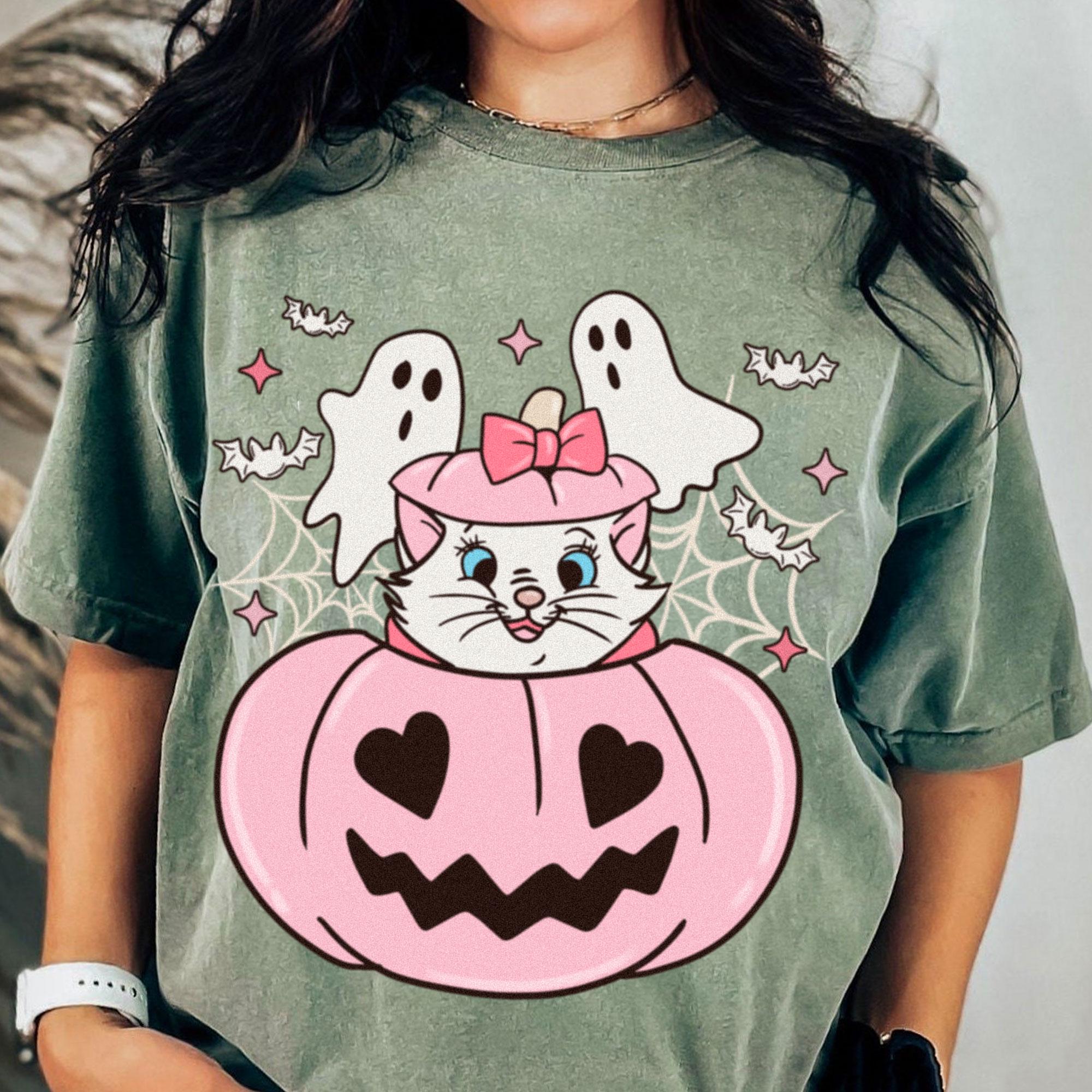 Marie Pink Heart Pumpkin Boo Ghost Comfort Color Shirt, Spooky Season Shirt, Fall Season Shirt, Halloween Party Tee